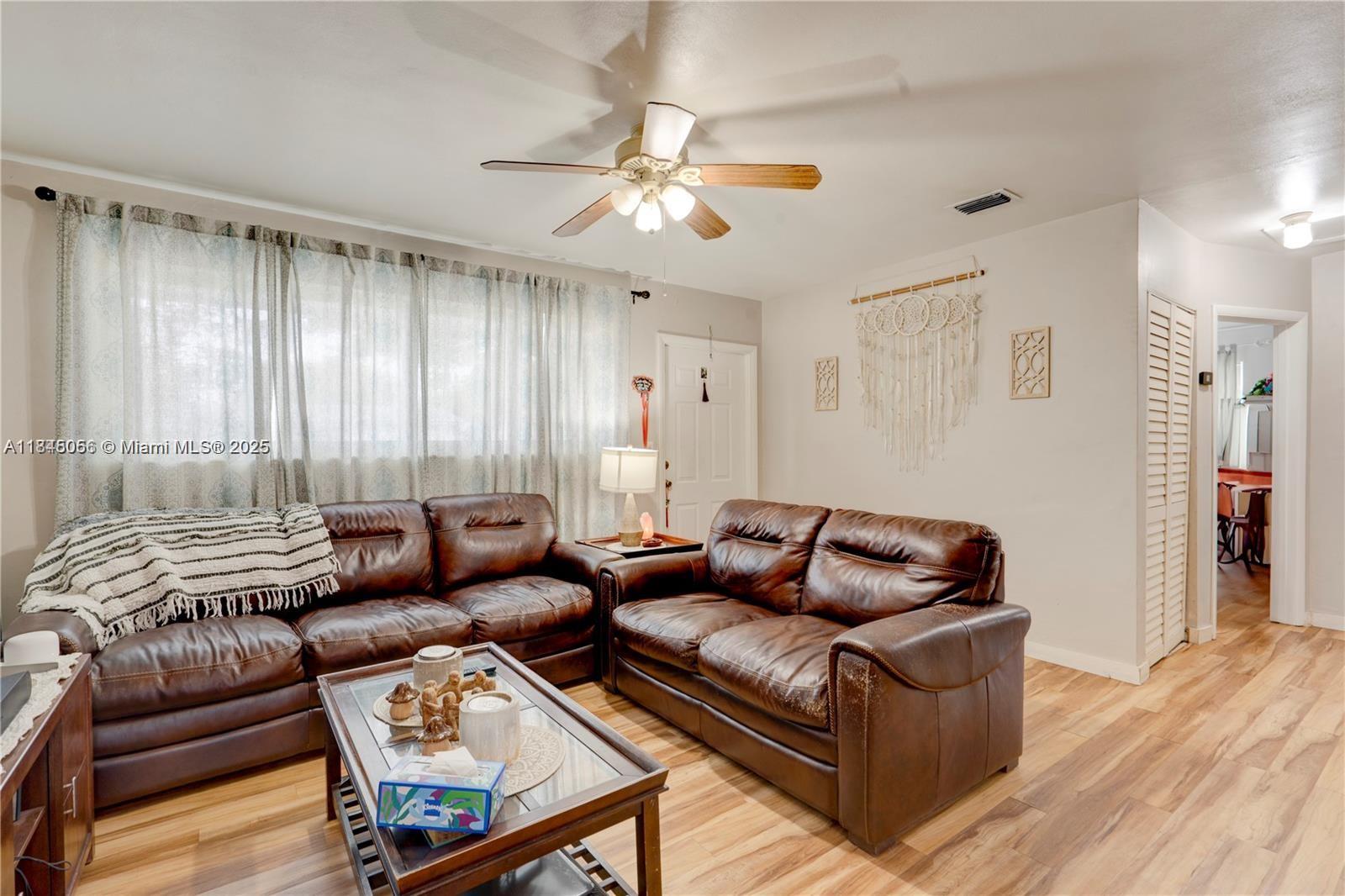 This delightful home offers a perfect blend of comfort and convenience. Situated in the highly desirable Palm Springs North community, this property is ideal for families and those seeking a peaceful yet accessible location. The home features 4 spacious bedrooms and 2 full bathrooms, living space of 1703 sq ft. The property sits on a generous 7,500 sq ft lot, providing ample outdoor space. New Roof (2021) and impact-resistant windows (2020), as well as a brand-new air conditioning system added in April 2024. Just blocks from top-rated schools and conveniently located near I-75 and the Palmetto Expressway, this home offers easy access to shopping, dining, and major highways, making it perfect for commuters and families.