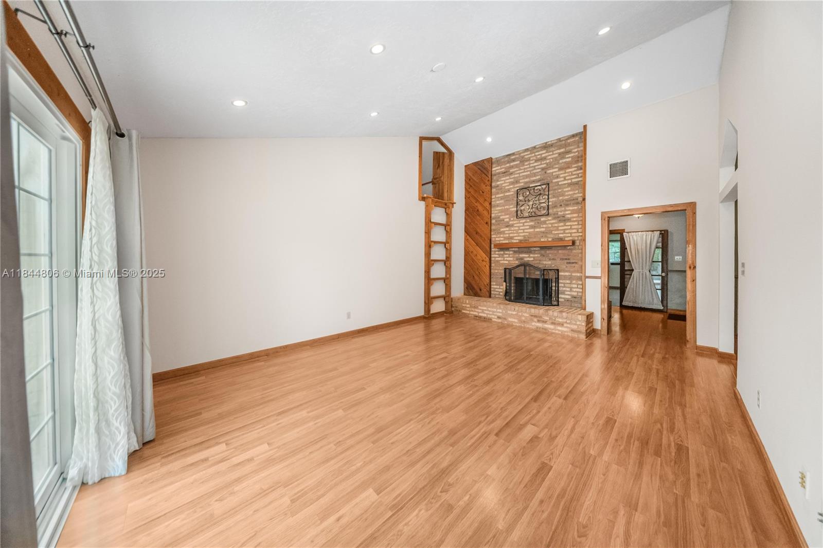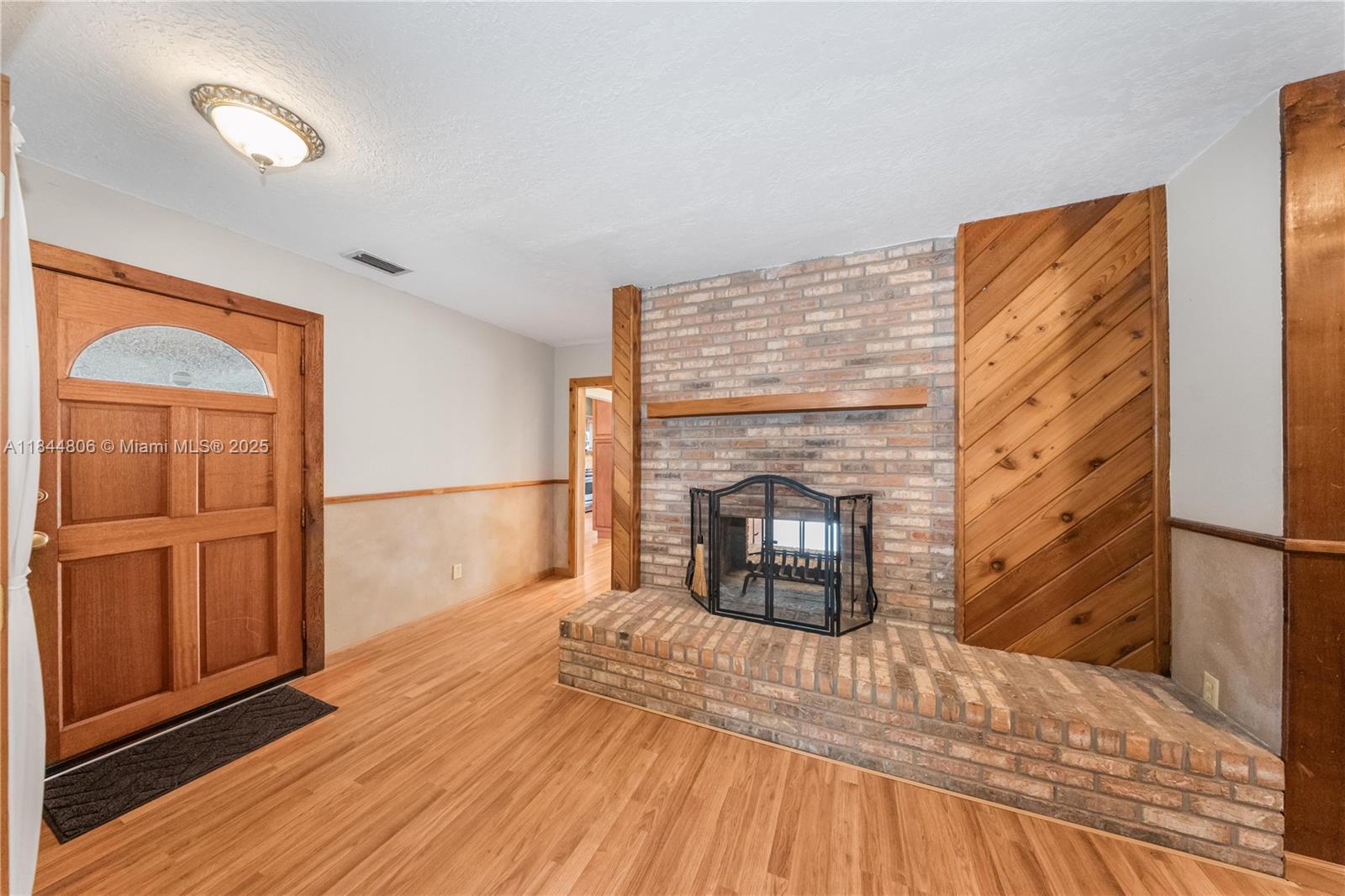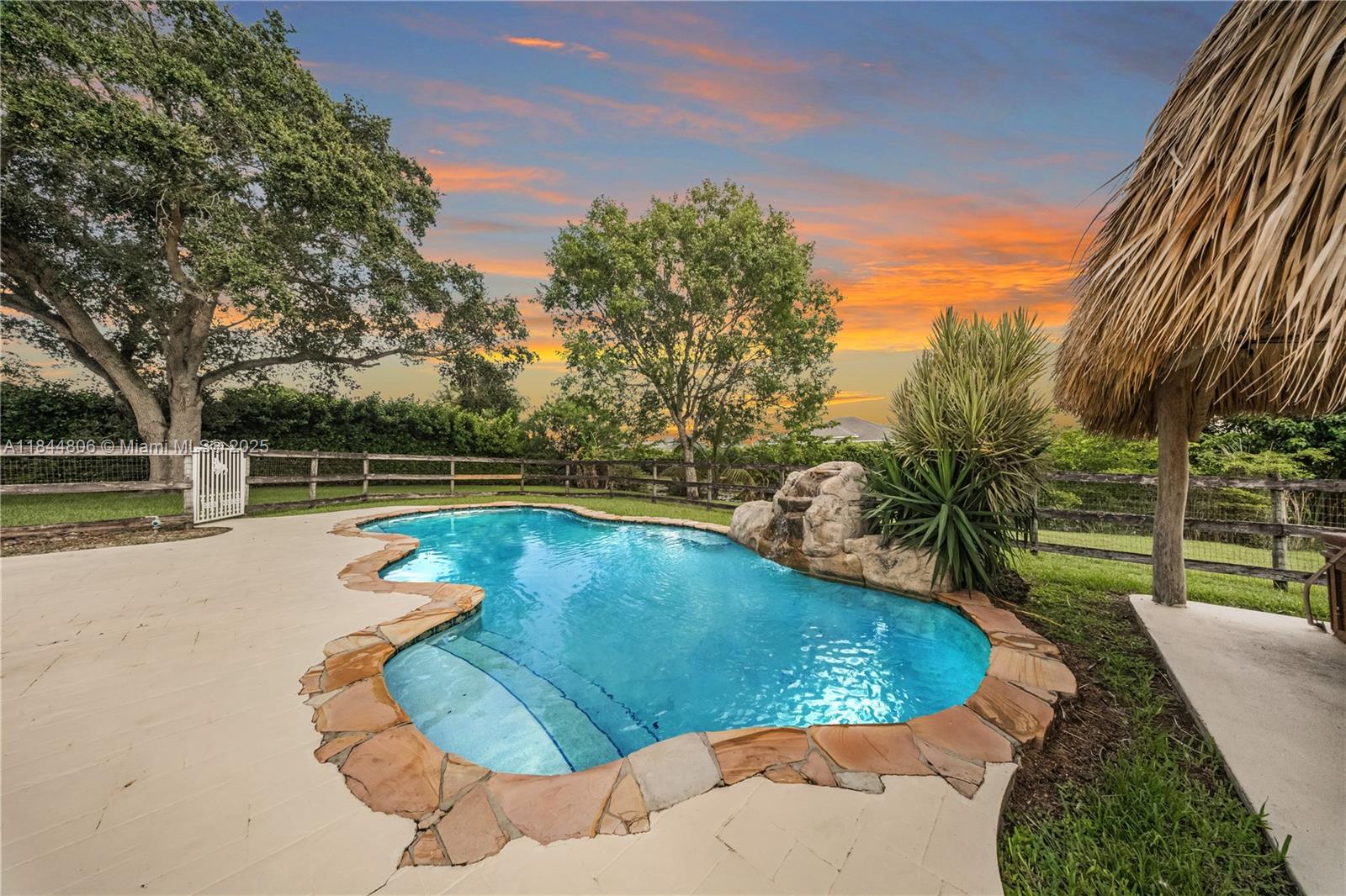 Nestled on an oversized canal-front corner acre lot in the heart of Davie, this unique property blends rustic charm with modern upgrades and NO HOA. Bring your horses and enjoy wood floors, a double-sided wood-burning fireplace, a new A/C (2023), and a new roof (2022). The primary bathroom was completely renovated in 2024. Impact sliding doors in the living room and primary suite lead to a tropical oasis with mature fruit trees, a chickee hut with a new roof, a pool with a waterfall, a Jacuzzi, and a 50-amp RV hookup. The septic tank was just recently pumped out and is in great condition.