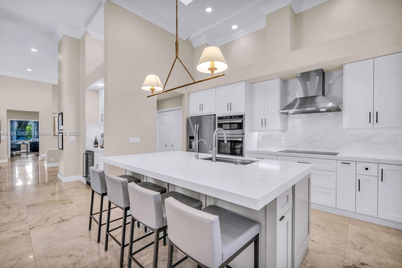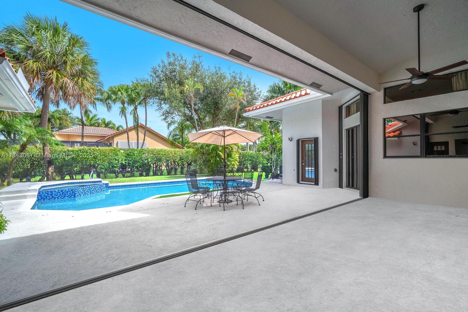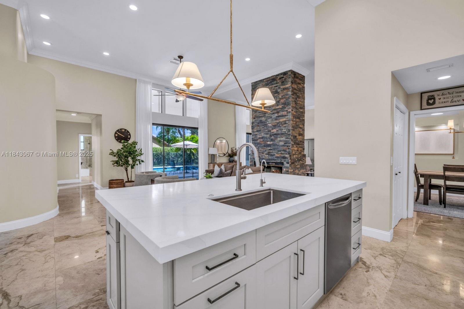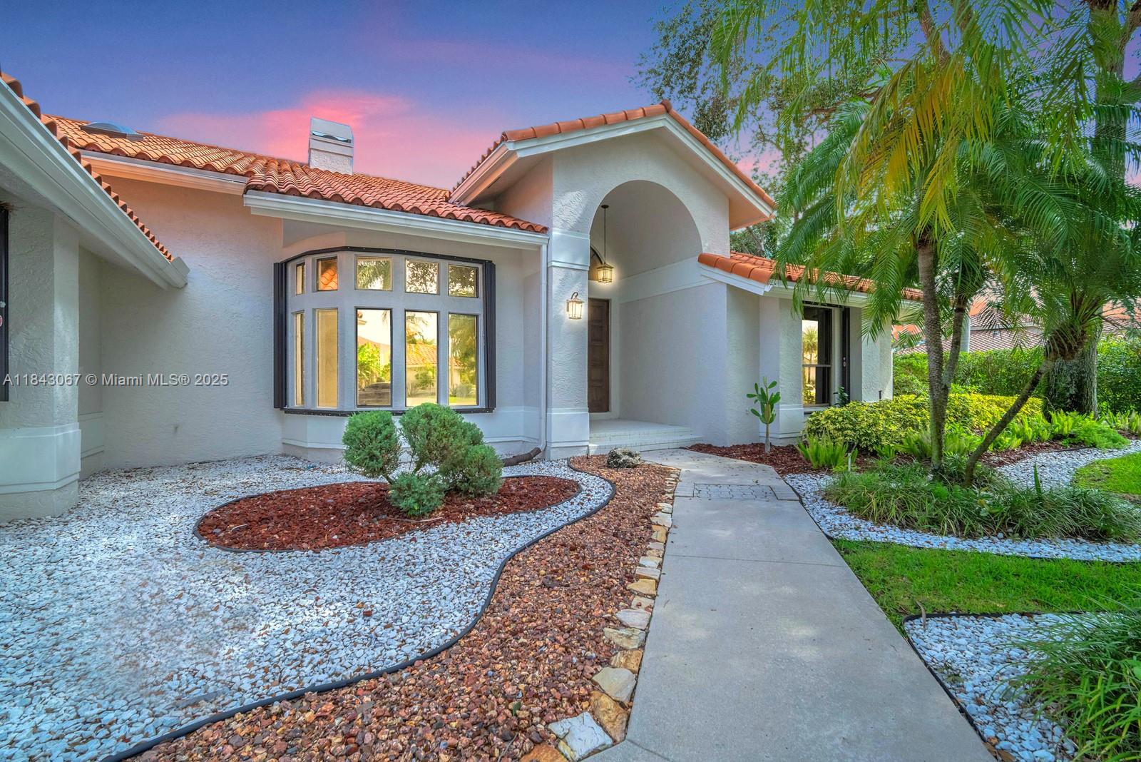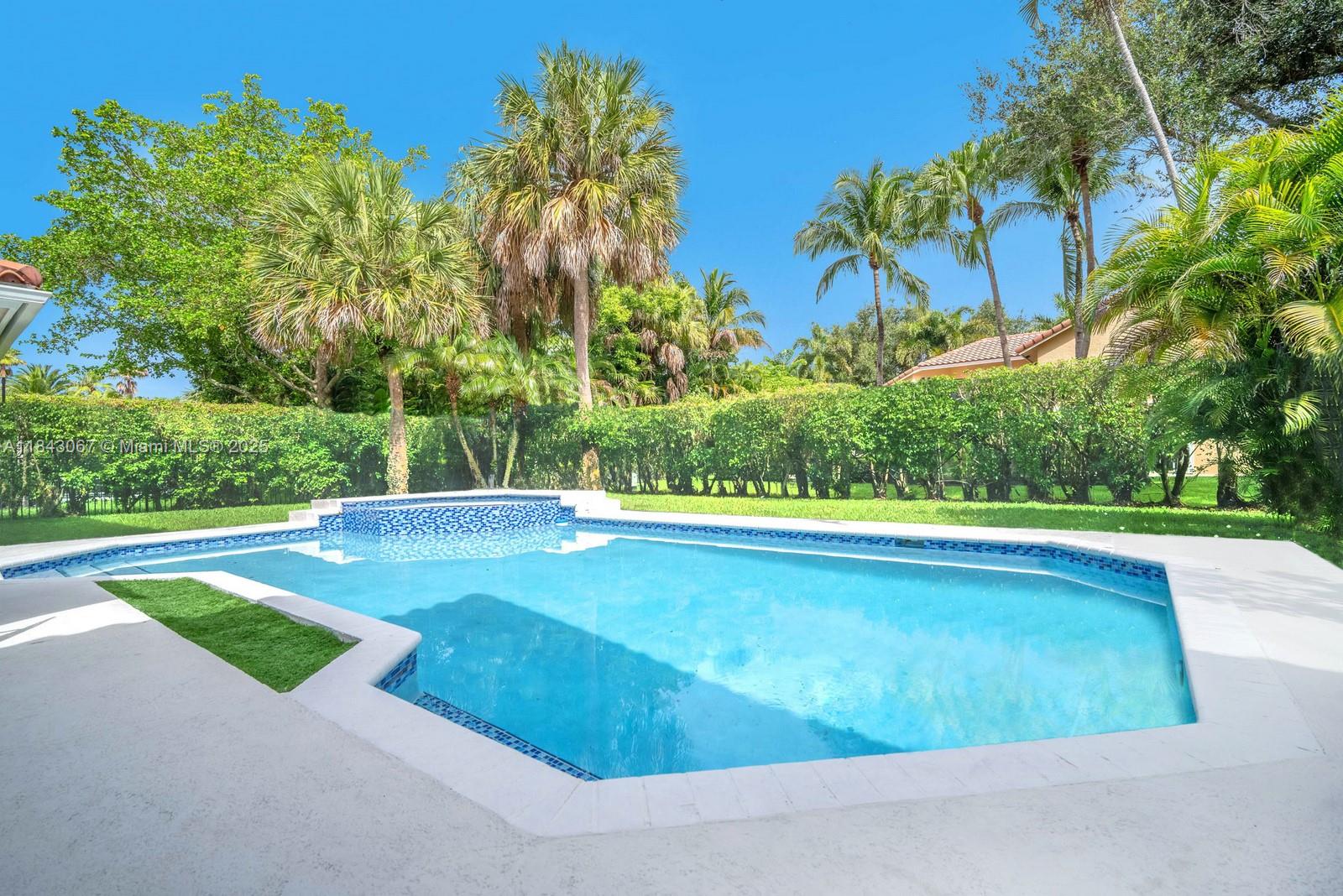 Exquisite 5 bed, 3.5 bath remodeled pool home on premium 15,818 sq ft corner lot in the prestigious gated community of Palm Island, Weston. Enjoy luxury & comfort in elegant, open floor plan w natural light cascading through large windows w custom curtains & electric binds & spectacular 2 sided stone fireplace at the heart of the home. Chef's kitchen features new stainless appliances, large island, custom cabinetry & wet bar w wine fridge. Split floor plan with spacious primary suite w luxurious spa-like en-suite bath & designer closet. Freshly painted inside & out, crown molding, new electrical panels, lighting, new AC units, dreamy laundry room & gorgeous flooring throughout. Outdoor private patio oasis w sparkling, refinished refreshing pool & heated spa w a picturesque backdrop.