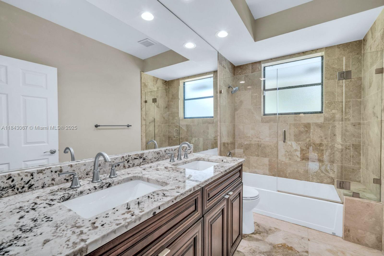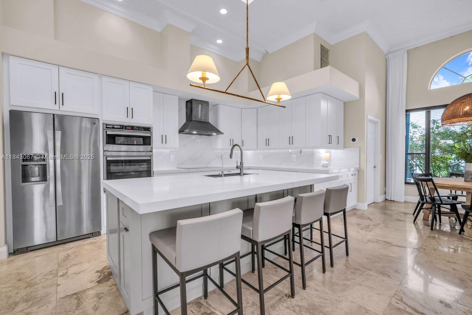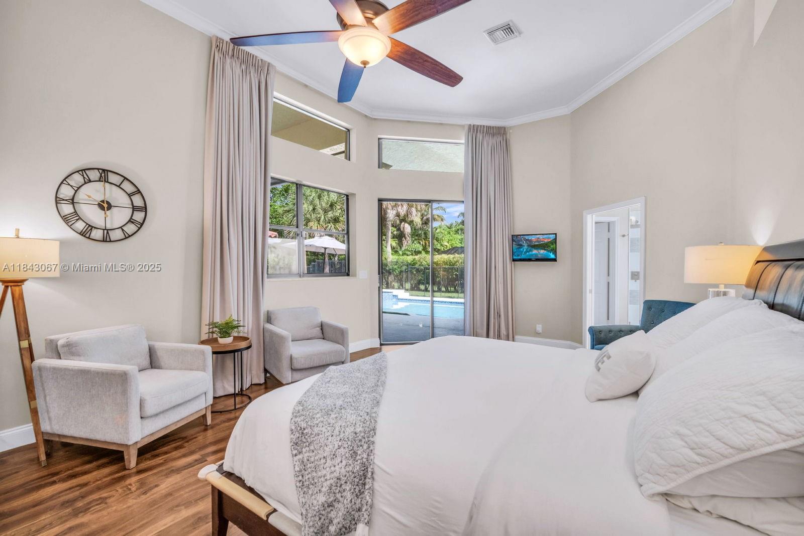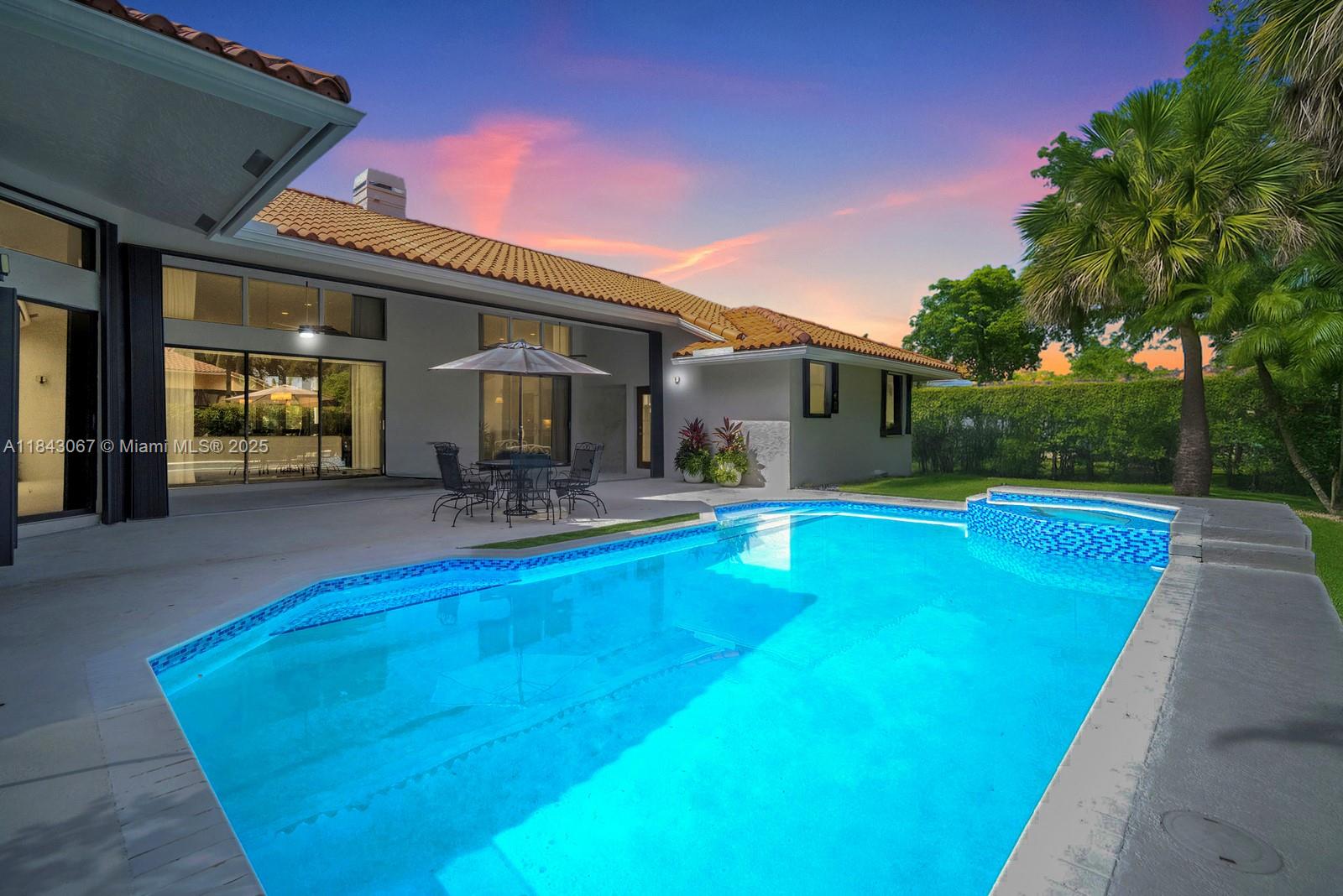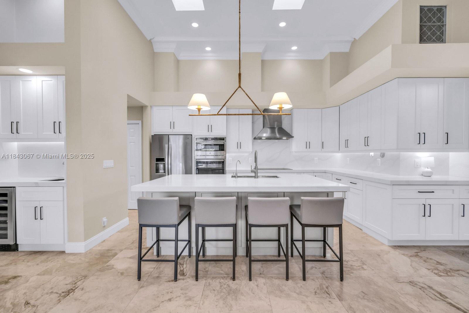 Exquisite 5 bed, 3.5 bath remodeled pool home on premium 15,818 sq ft corner lot in the prestigious gated community of Palm Island, Weston. Enjoy luxury & comfort in elegant, open floor plan w natural light cascading through large windows w custom curtains & electric binds & spectacular 2 sided stone fireplace at the heart of the home. Chef's kitchen features new stainless appliances, large island, custom cabinetry & wet bar w wine fridge. Split floor plan with spacious primary suite w luxurious spa-like en-suite bath & designer closet. Freshly painted inside & out, crown molding, new electrical panels, lighting, new AC units, dreamy laundry room & gorgeous flooring throughout. Outdoor private patio oasis w sparkling, refinished refreshing pool & heated spa w a picturesque backdrop.