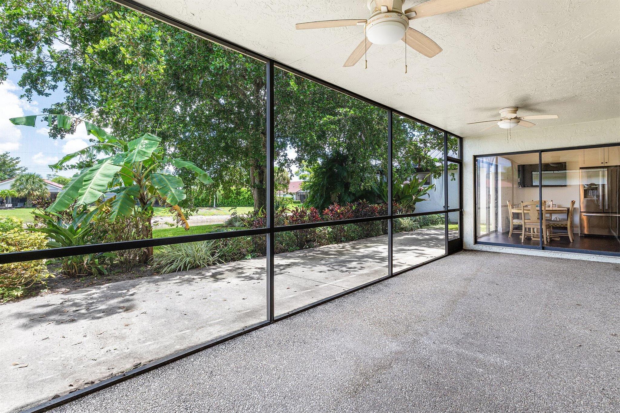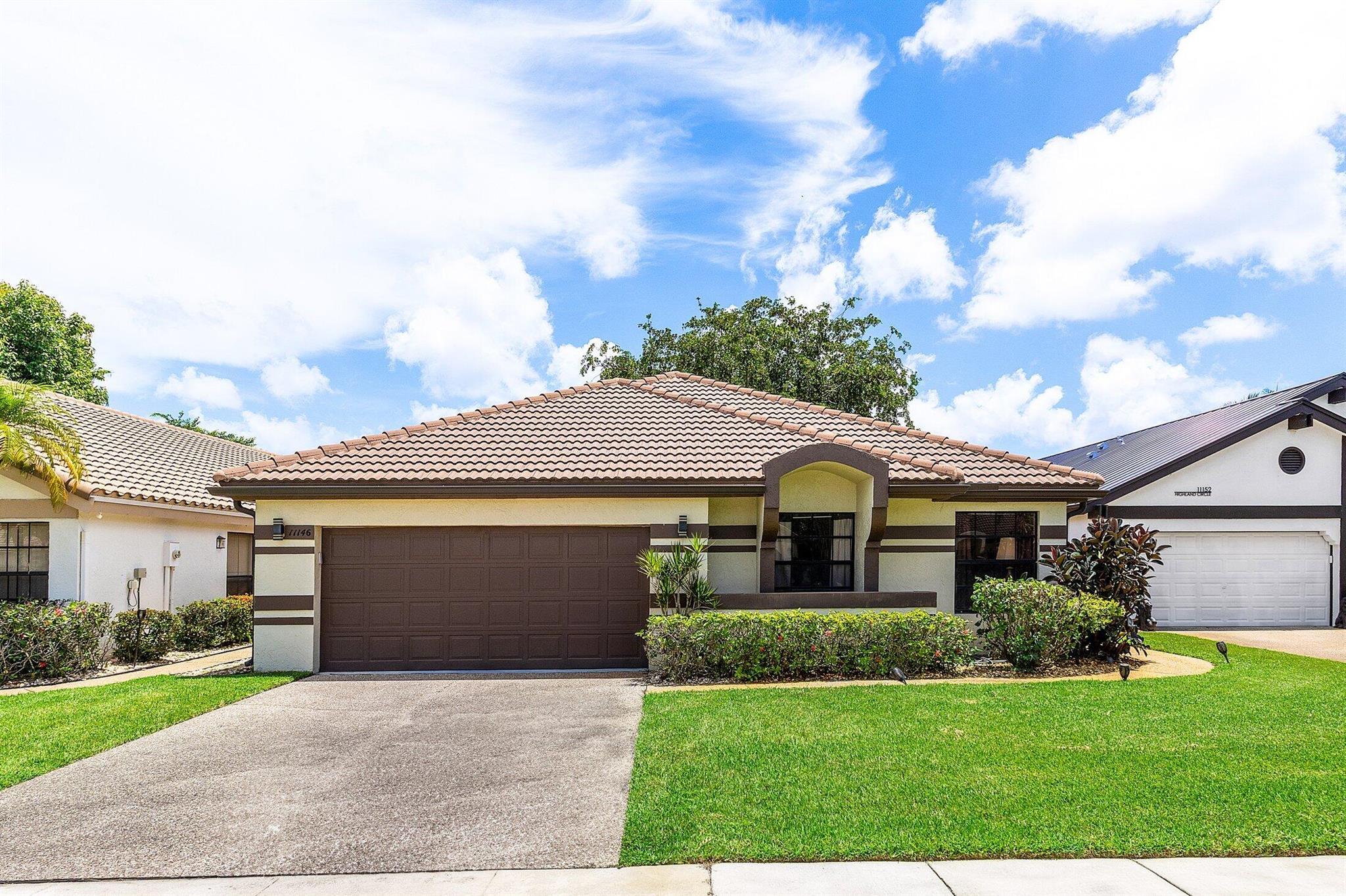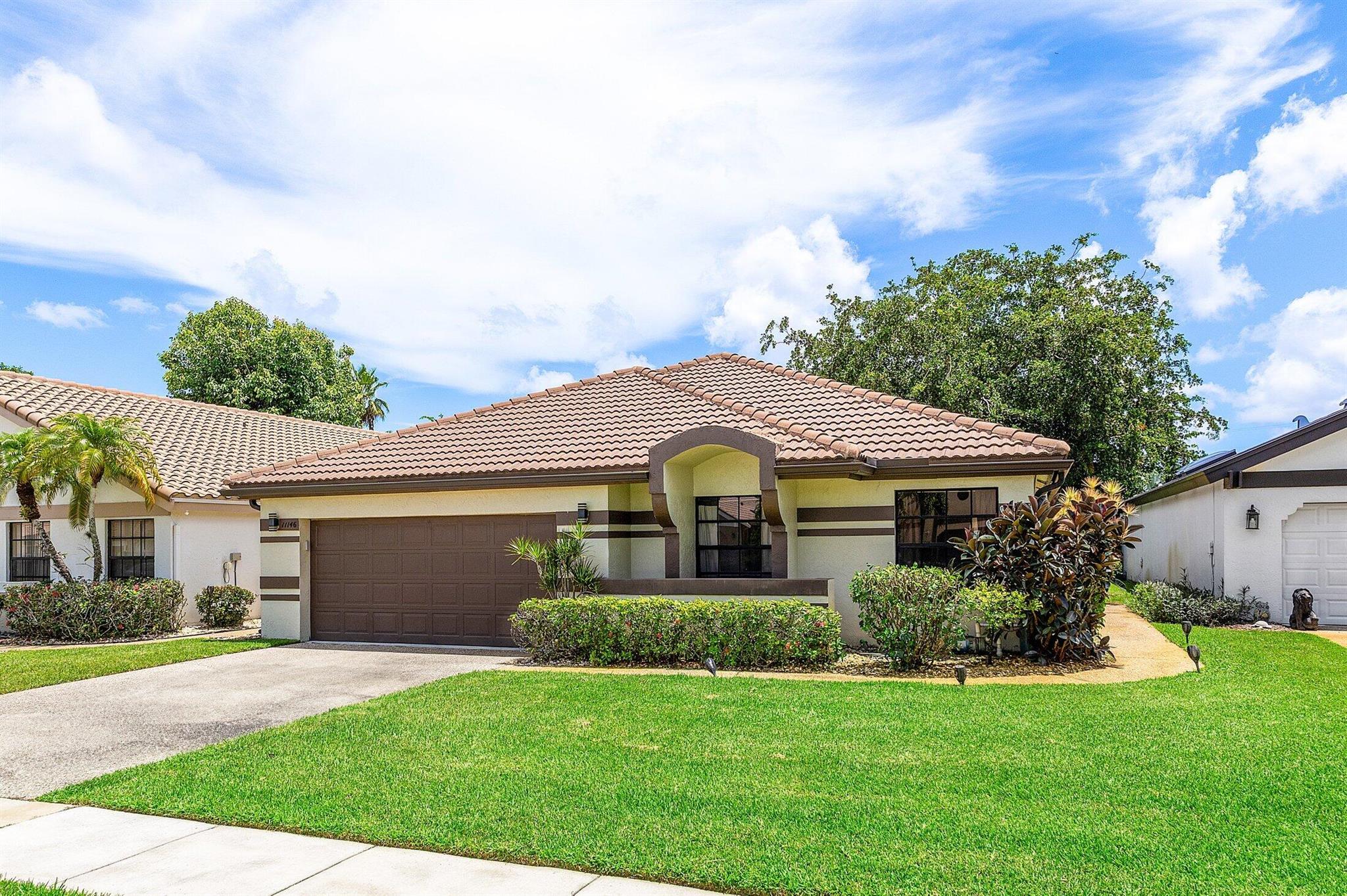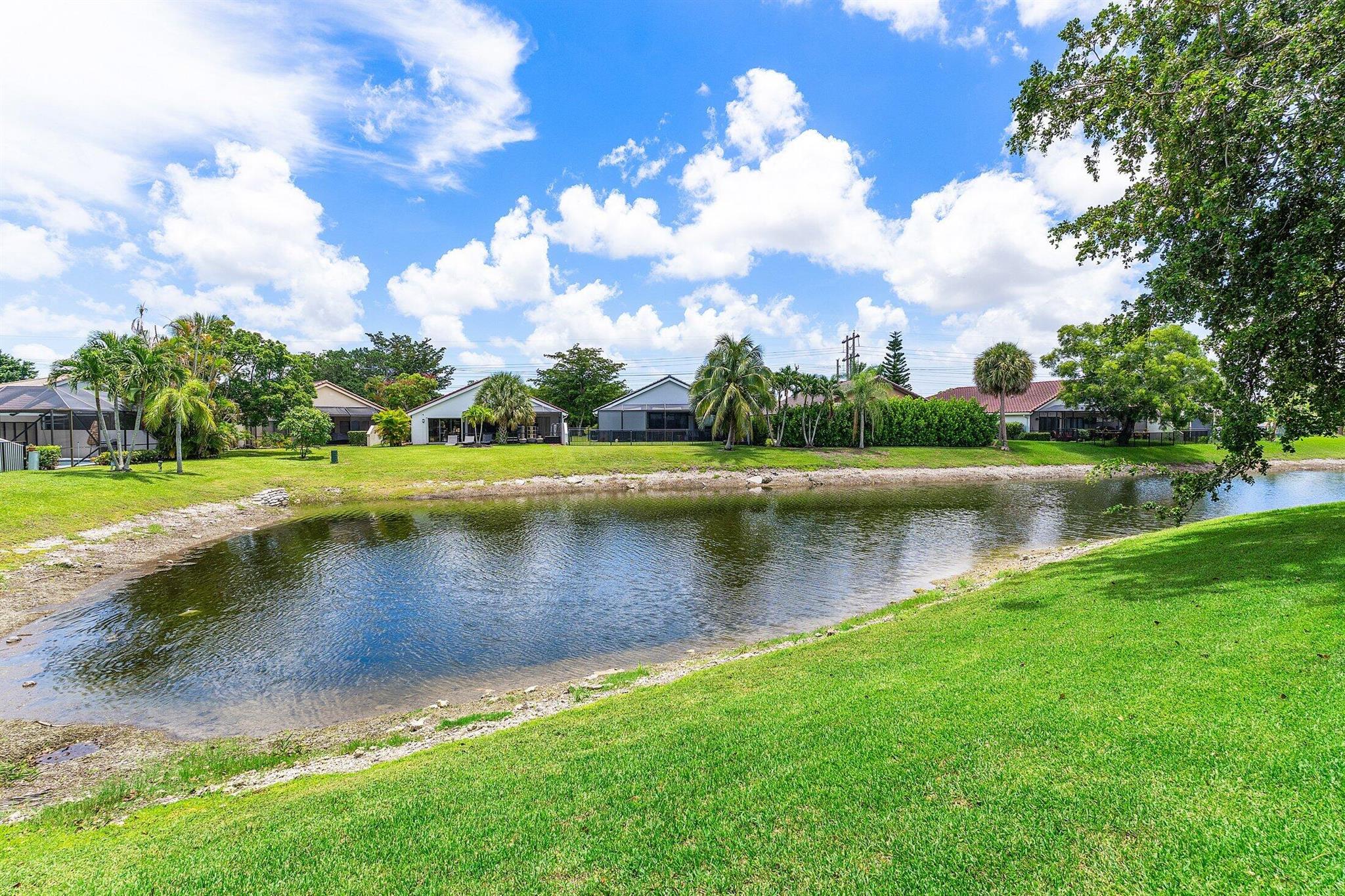 Located in the prestigious Boca Woods Country Club, this updated 3-bedroom, 2-bath home features an open, split floor plan and is perfectly situated on a quiet cul-de-sac. Enjoy exceptional water views from the comfort of your screened-in patio--ideal for relaxing or entertaining.Boca Woods is an all age Country Club Community which offers resort style amenities, including two championship golf courses, Har Tru tennis courts, pickleball courts, state of the art fitness center, spa, game room, fully renovated clubhouse with fine dining and much more! Mandatory Country Club membership required $120,000.