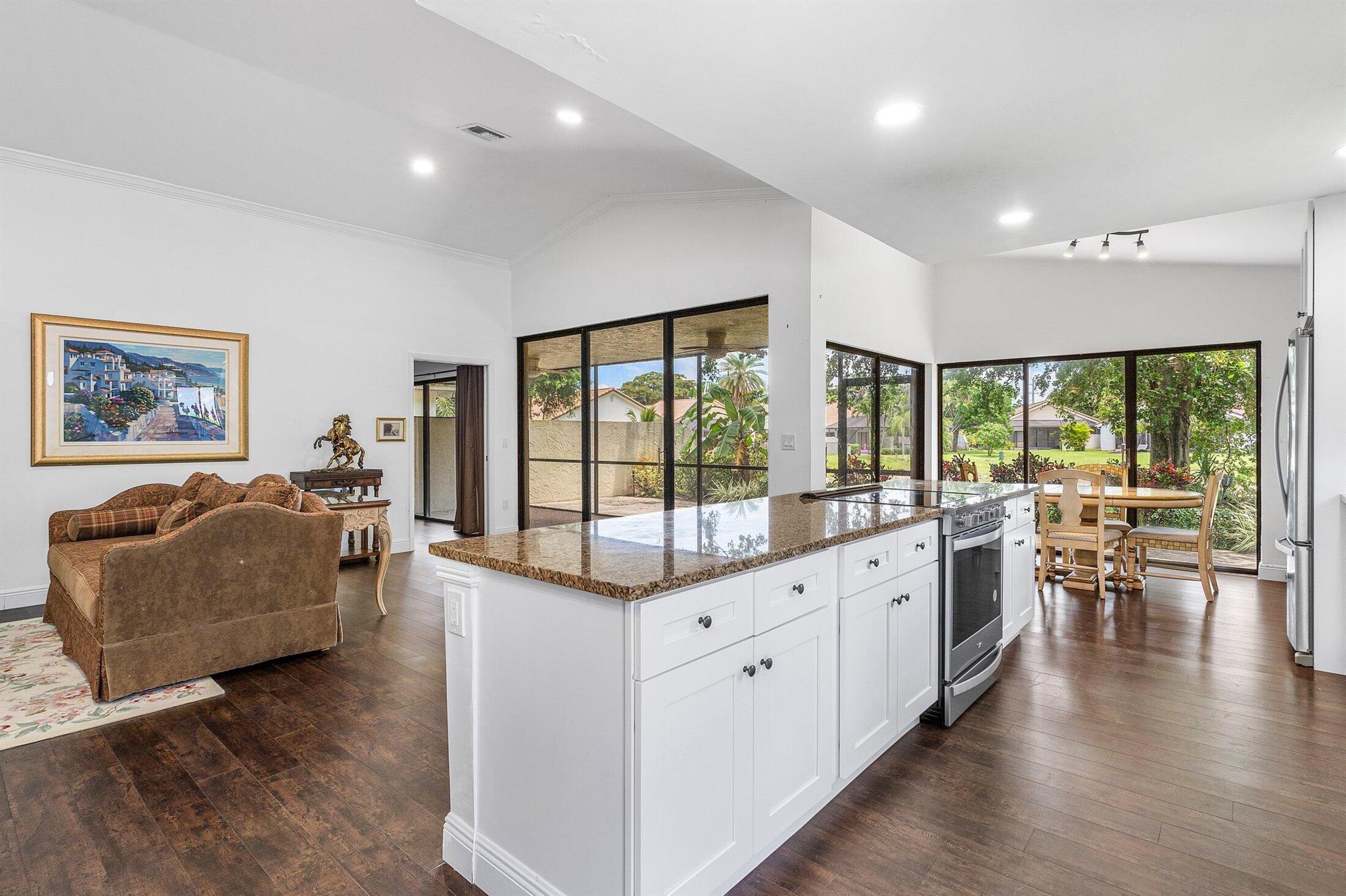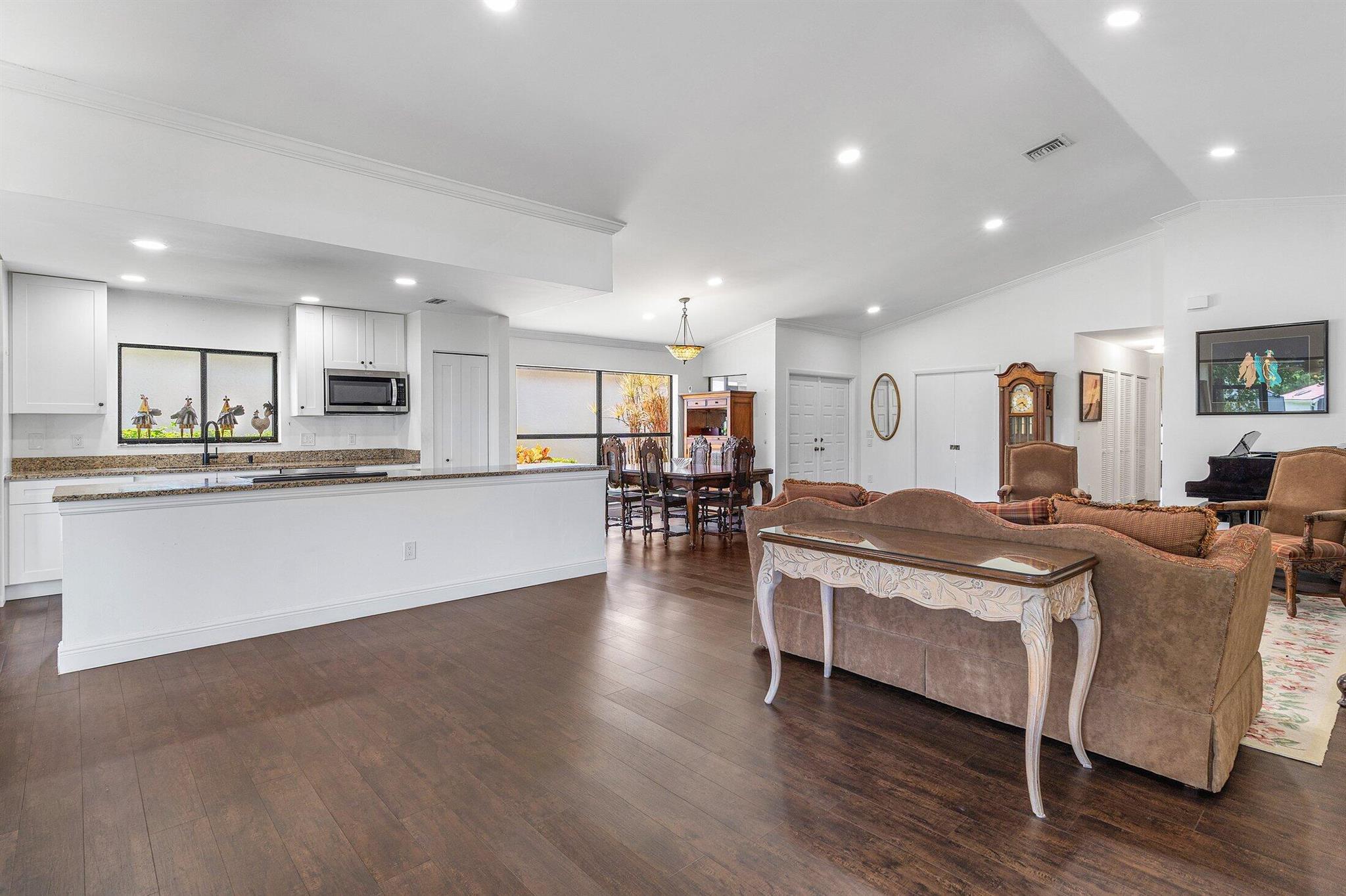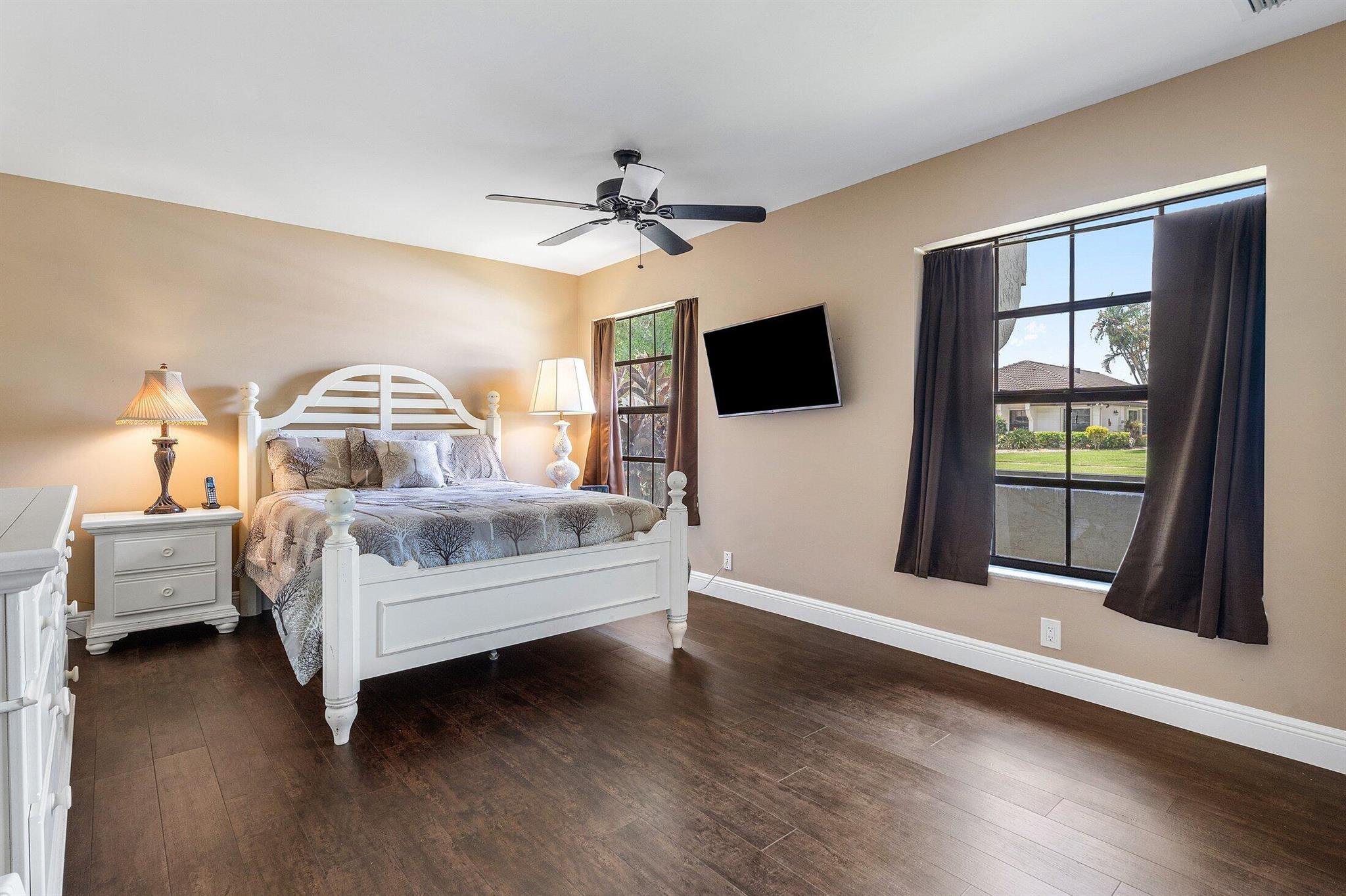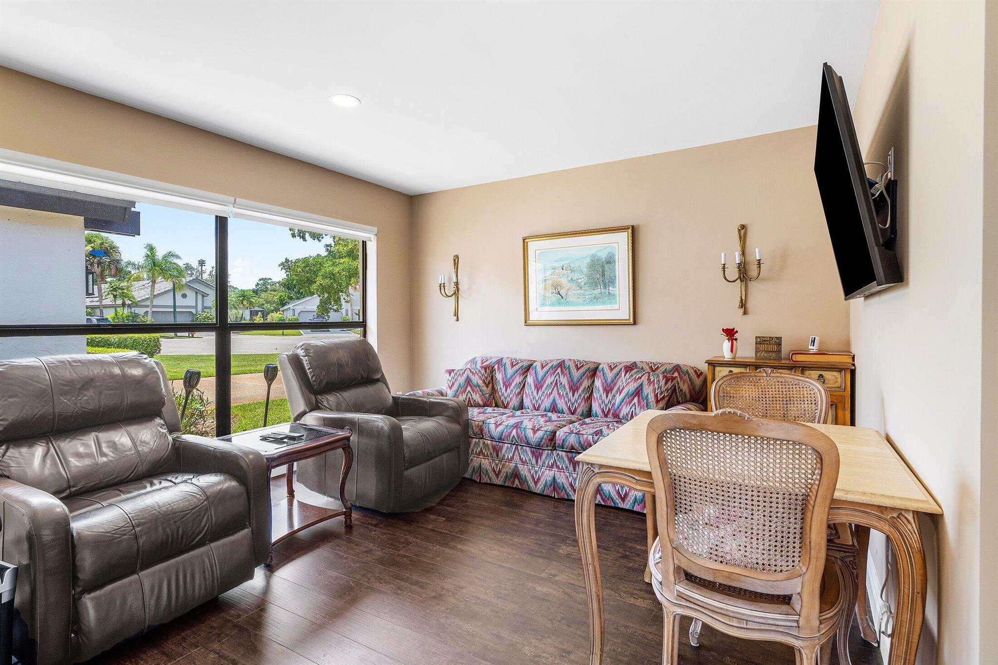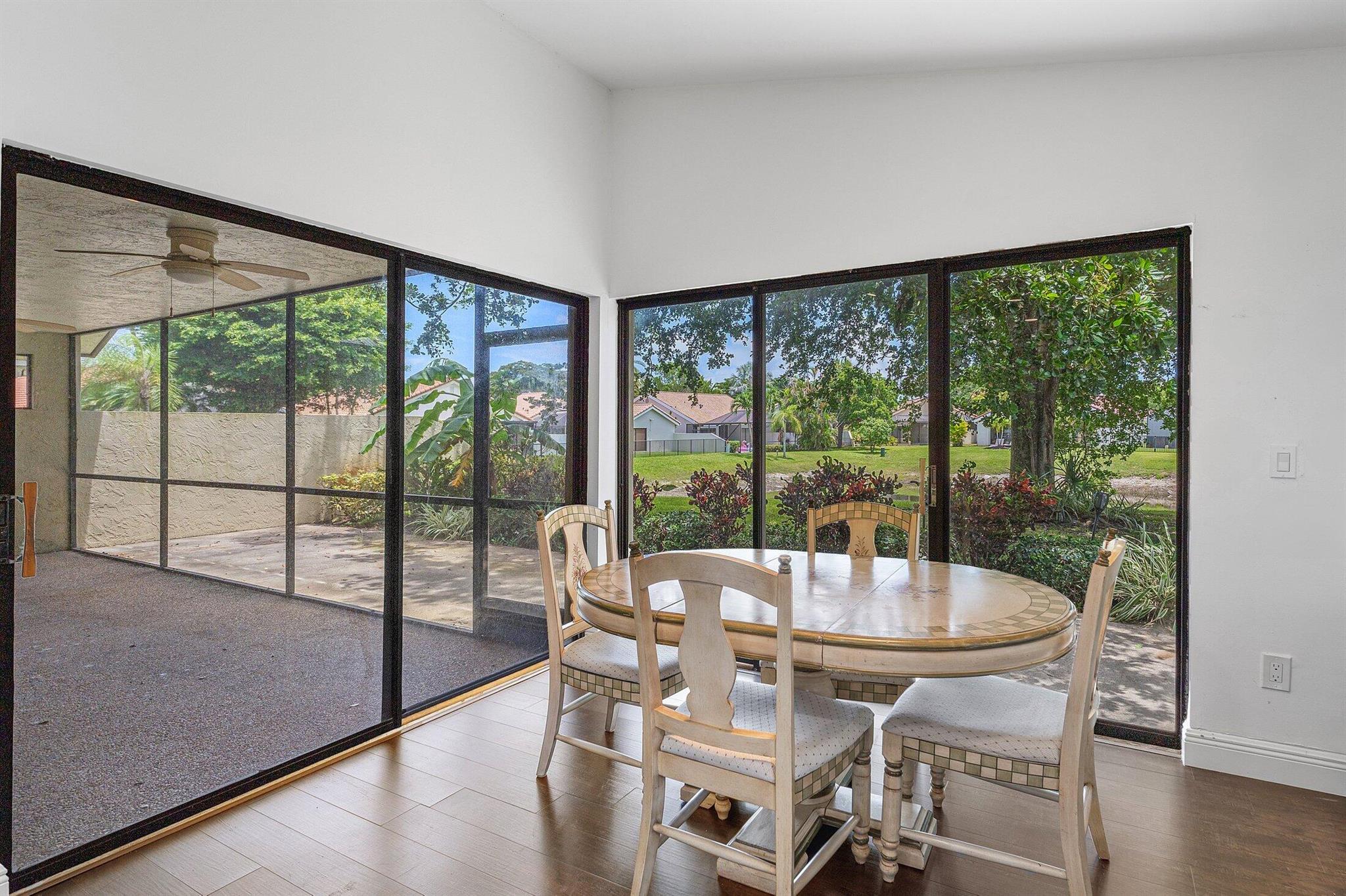 Located in the prestigious Boca Woods Country Club, this updated 3-bedroom, 2-bath home features an open, split floor plan and is perfectly situated on a quiet cul-de-sac. Enjoy exceptional water views from the comfort of your screened-in patio--ideal for relaxing or entertaining.Boca Woods is an all age Country Club Community which offers resort style amenities, including two championship golf courses, Har Tru tennis courts, pickleball courts, state of the art fitness center, spa, game room, fully renovated clubhouse with fine dining and much more! Mandatory Country Club membership required $120,000.