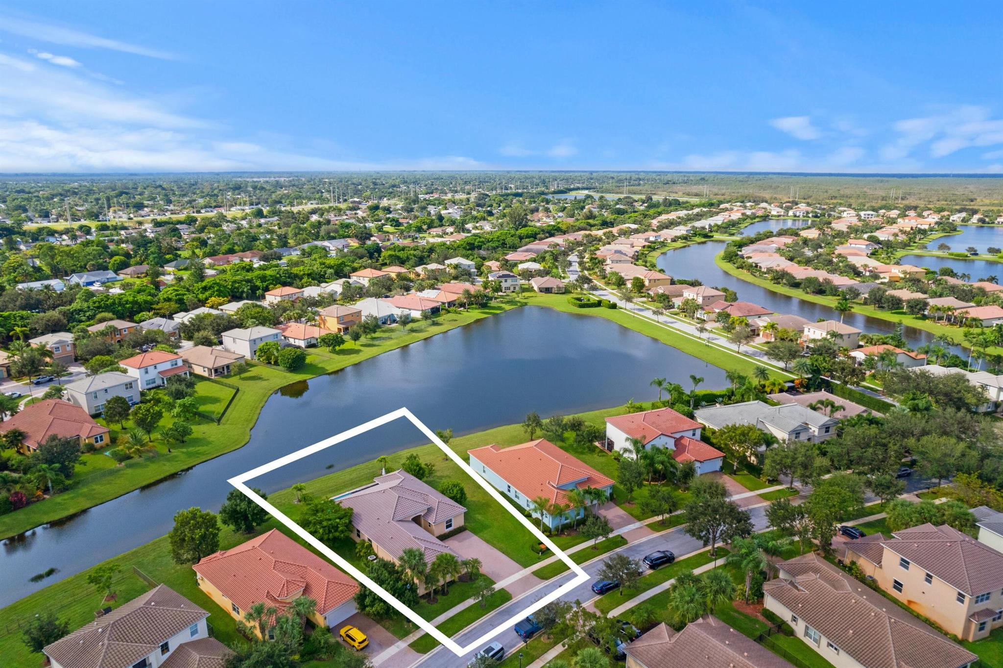 Stunning lake view home in the highly sought-after PortoSol gated community. This turnkey residence offers unparalleled luxury and comfort. Key features include impact windows and doors, custom wood cabinetry, beautiful crafted coffered ceilings, custom trim accents and an air-conditioned 3-car garage. The open floor plan extends to a stunning outdoor area featuring a beautiful pool surrounded by lush landscaping, along with a built-in grill ideal for outdoor gatherings. PortoSol offers an array of amenities o enhance your lifestyle including beach volleyball, basketball, pickleball, playground and 24-hour access to the great gym.