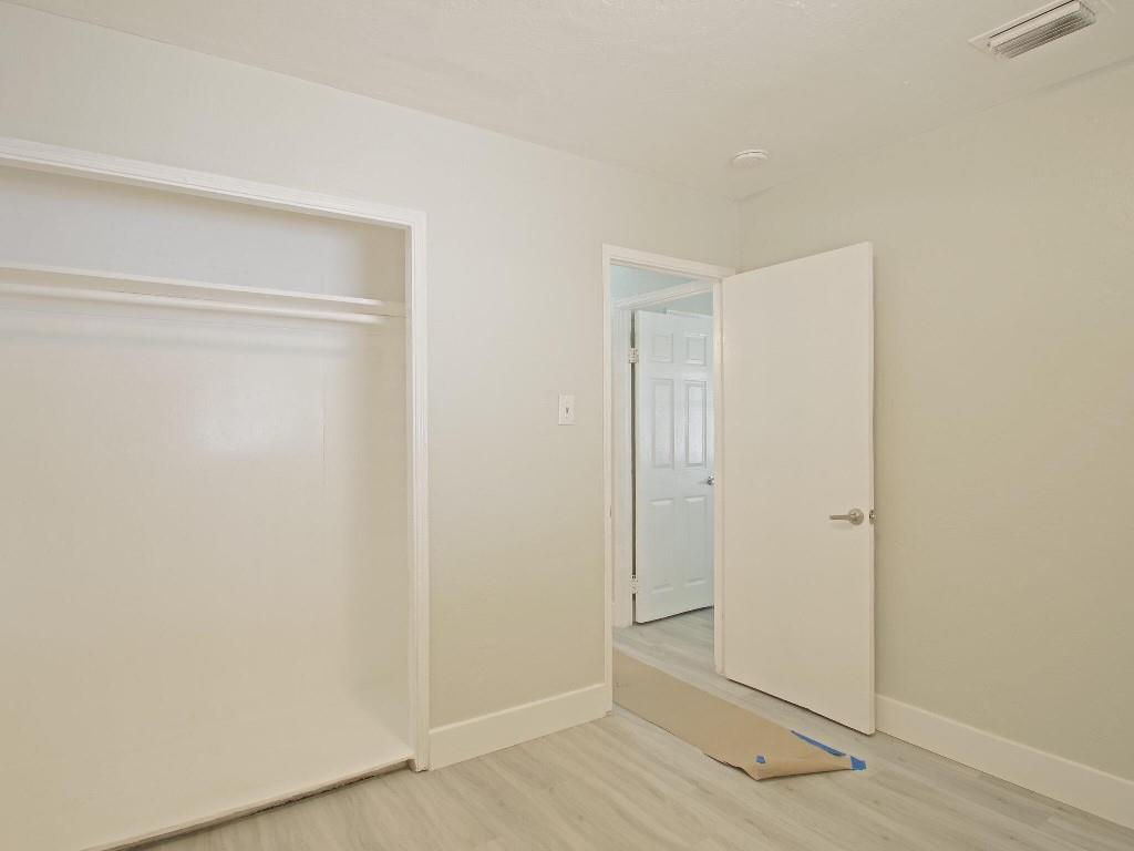 Totally update interior with new 3 month roof! Updates include new paint throughout, new vinyl flooring, new kitchen cabinets, new dishwasher, refrigerator, stove and microwave. Please update full baths with shower and tub. new blinds and lighting. Bedrooms are good size, master is large and separated from other bedrooms.