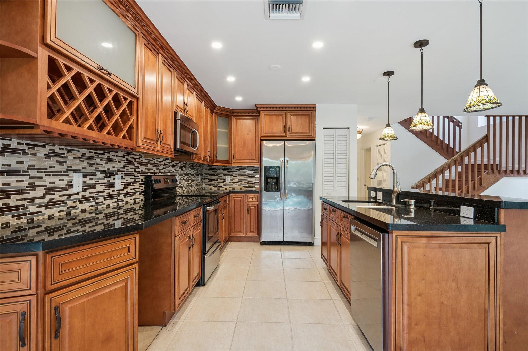 Welcome to your dream home in a family-friendly neighborhood! Fully updated 5/2.5 beauty offers 2749 total sqft of luxurious living space. Perfect for growing families or anyone who values comfort & style. Expansive new kitchen featuring high-end wood cabinets, sleek granite countertops and brand-new stainless-steel appliances. Ideal chef's kitchen for preparing meals & entertaining guests. The vaulted ceilings & large windows create an airy, light ambiance. All baths are tastefully renovated. 5 generously sized bedrooms, including a master suite w/ ample closet space. Private outdoor oasis w/ screened-in pool. Enjoy peace of mind w/ full house storm protection. Tile downstairs & new wood flooring upstairs. Extended large driveway. Low maintenance fees, top rated schools. Roof Sept 2010