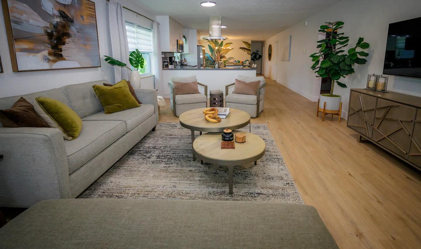 Beautifully renovated 4-bed, 3-bath home with bright open layout, luxury vinyl floors, and a sleek modern kitchen featuring quartz countertops and stainless steel appliances. Enjoy a stylish living space, spacious bedrooms, and updated baths. Includes a fully equipped 1-bed/1-bath guest suite with its own private entrance and living area—ideal fo guests, or rental income. The fenced backyard is a tropical retreat with lush greenery, a hanging chair swing, BBQ area, and outdoor dining space. Prime location near Wilton Manors, the beach, shops, and more! ?? Minutes to the beach, Wilton Manors, Funky Buddha, shopping, dining, and more. Move-in ready—just bring your suitcase!