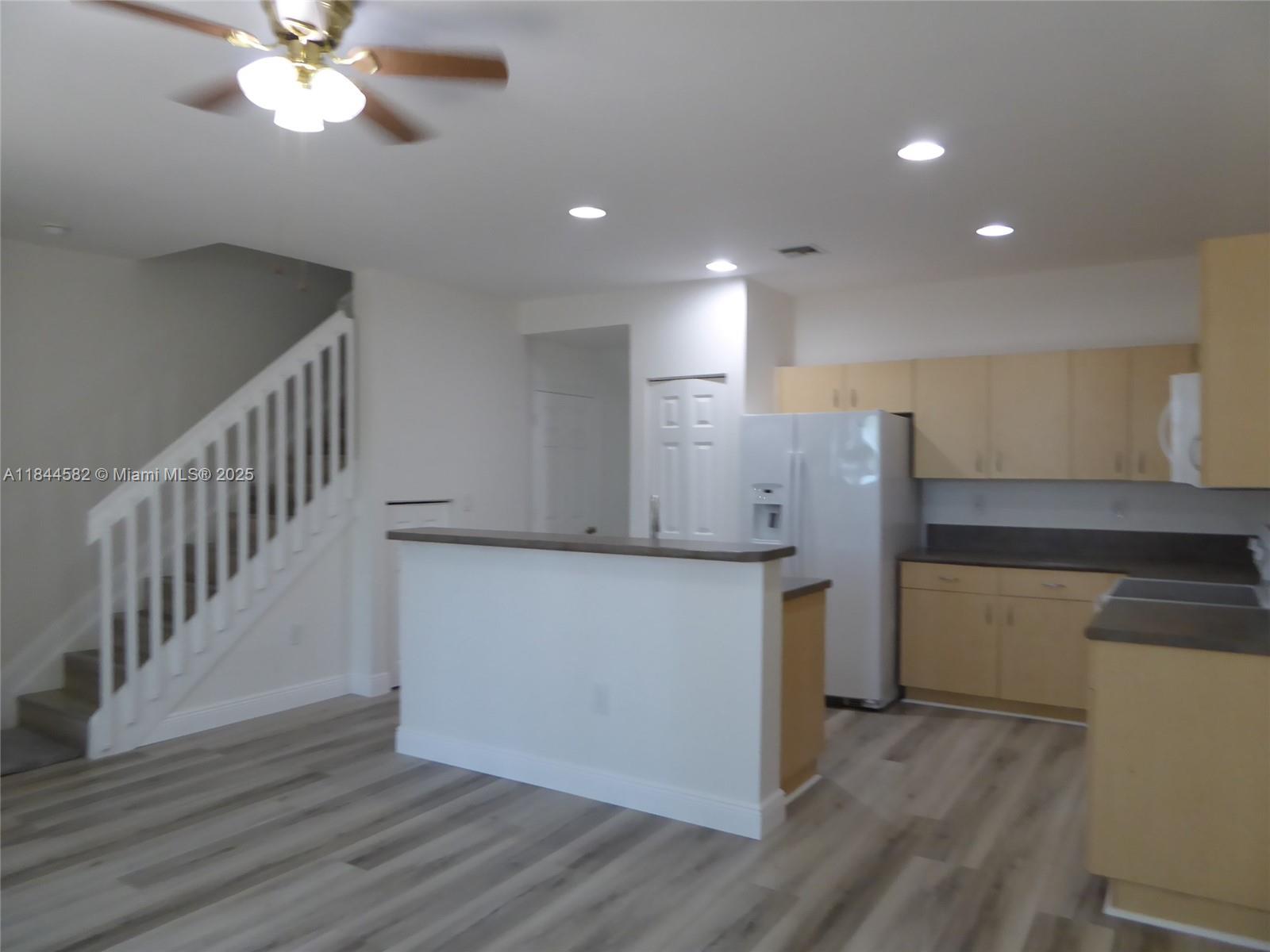 Spacious 2 story townhome newly renovated with all new vinyl wood flooring throughout. The whole house is freshly painted with a perfect color that matches the new variegated light grey and beige floors with all new white base boards. Nice floor plan with a formal area for the dining room and large living and family rooms. Open kitchen with island sink, storage and electric outlets for plug in kitchen items. Wide snack counter will allow for many stools. Fenced backyard with storge room and hurricane shutters and tall ladder. Complex has security gate entry with a call box for visitors. Marbella Bay has play area on site and a community pool and gym with clubhouse in driving distance. 2 parking spaces in front of the unit makes it easy to get those grocery's inside. Close to turnpike