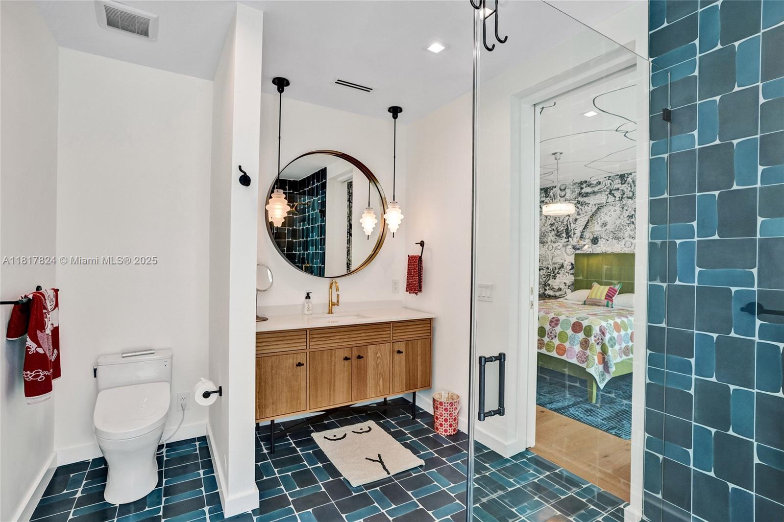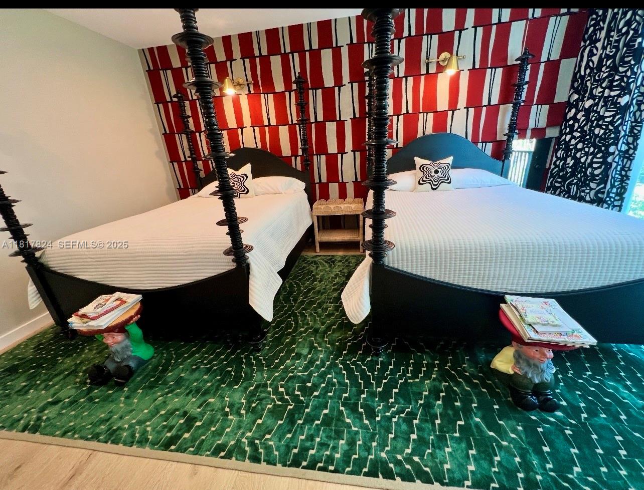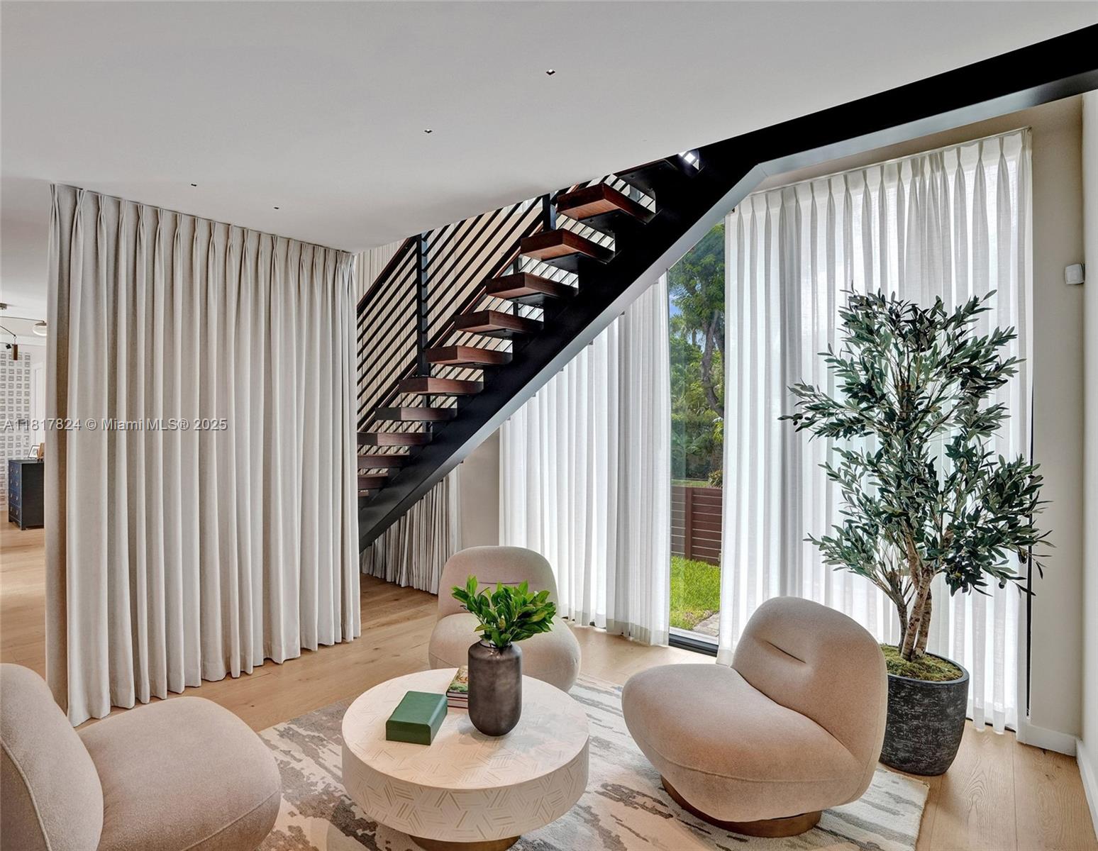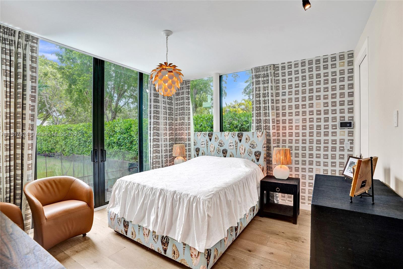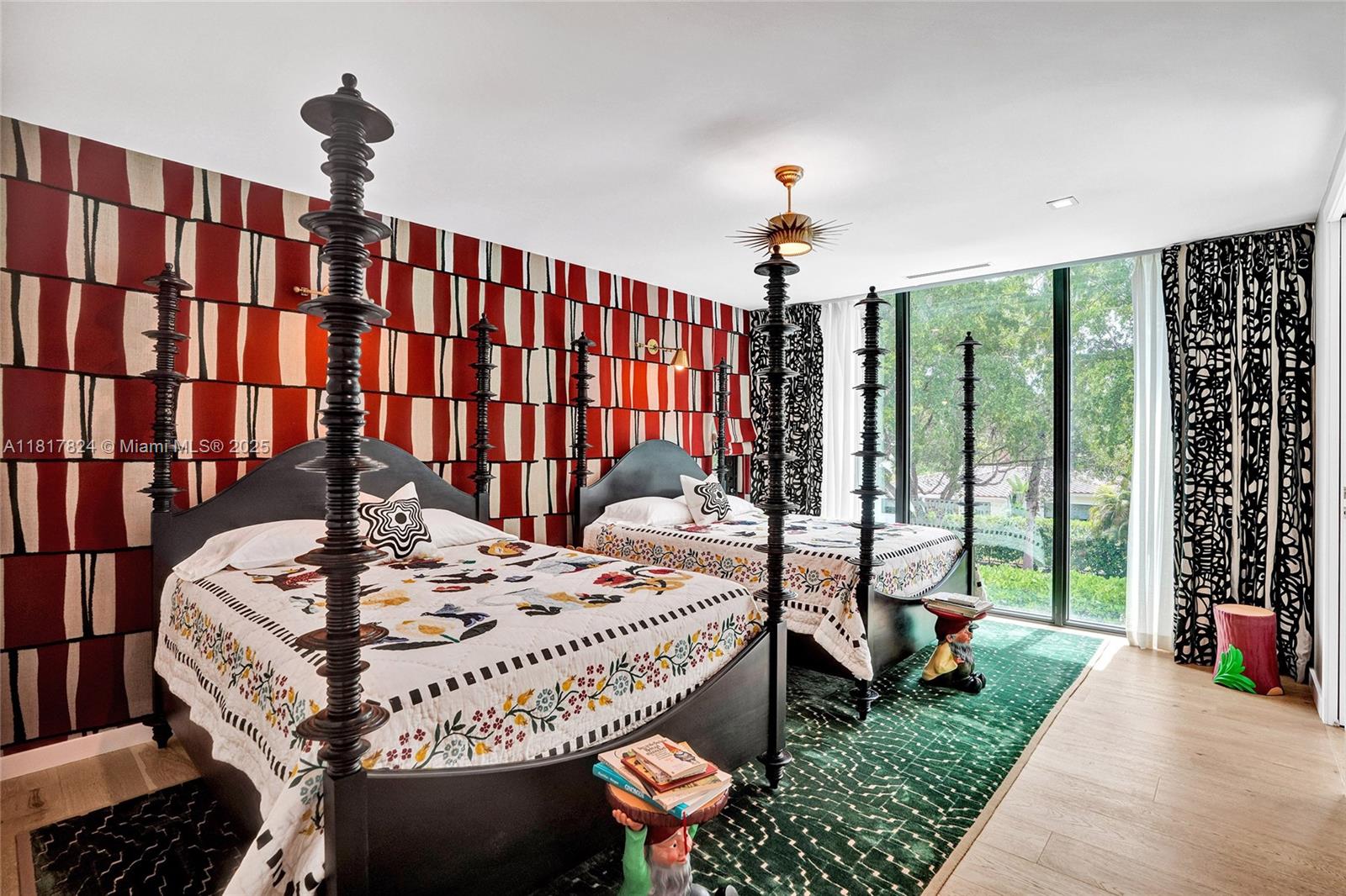 Walls of glass bathe this striking residence in natural light blending indoors & out with views of lush grounds, covered patio & pool. Conceived by award-winning Brillhart Architecture & featured in Architectural Digest. No expense spared by owner for their vision showcasing bespoke interiors by Mr. Alex Tate Design. Primary suite with private balcony & primary bath with dual head shower & hand carved sinks plus 2 additional ensuite bedrooms are upstairs. 4th independent ensuite bedroom is downstairs. Highlights include chef’s kitchen with Wolf, Sub-Zero & Blue Star appliances, standalone coffee station, striking IPE staircase & smart home features. Located on a quiet corner with low traffic enclave just 250 feet from the lush Banyan trees of Merry Christmas Park accessible by private gate