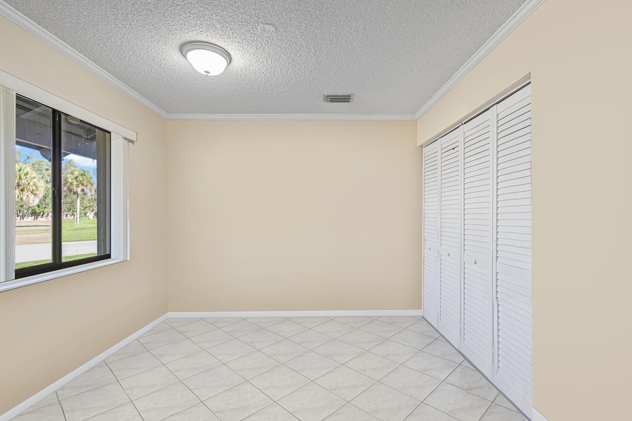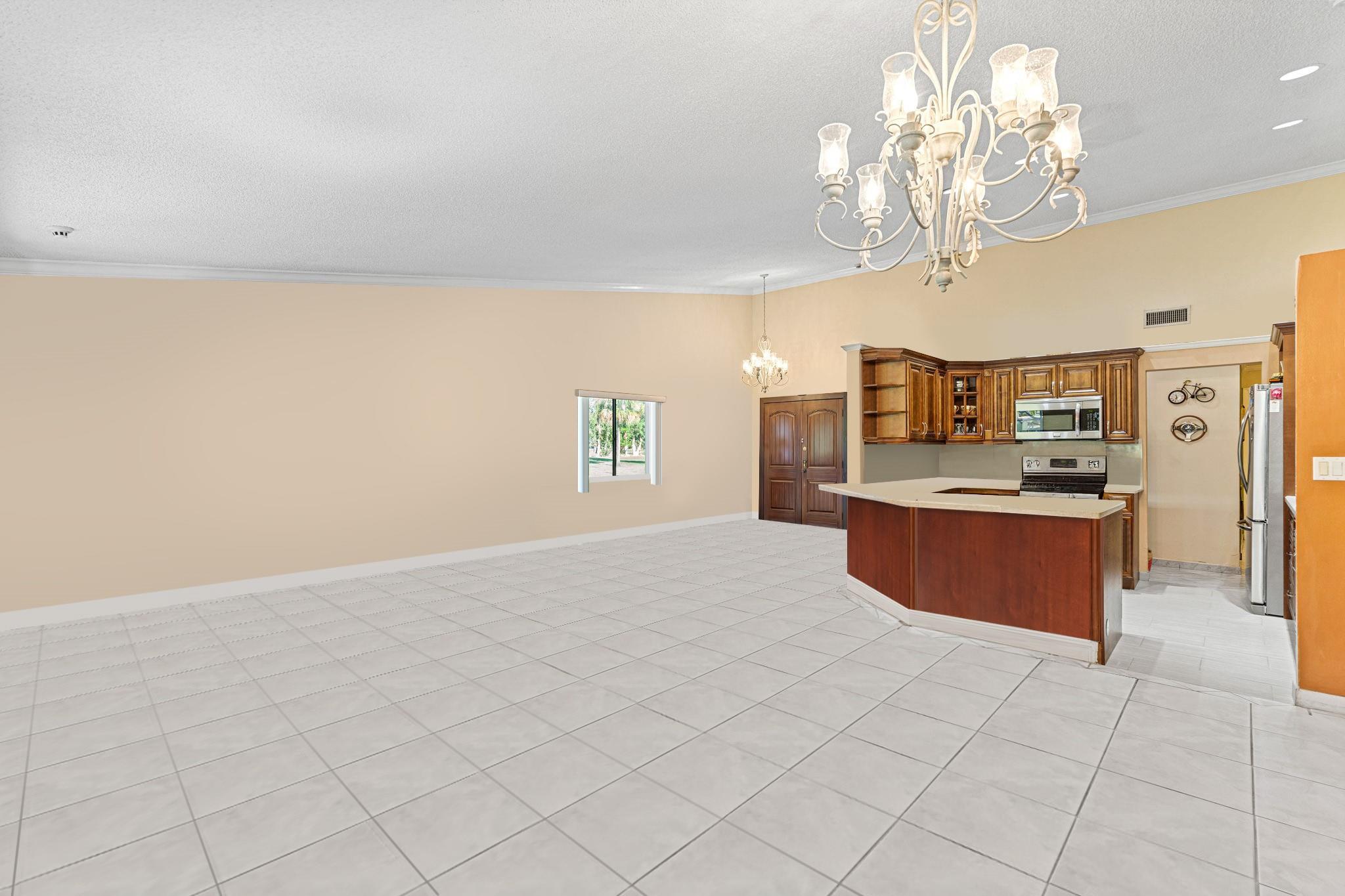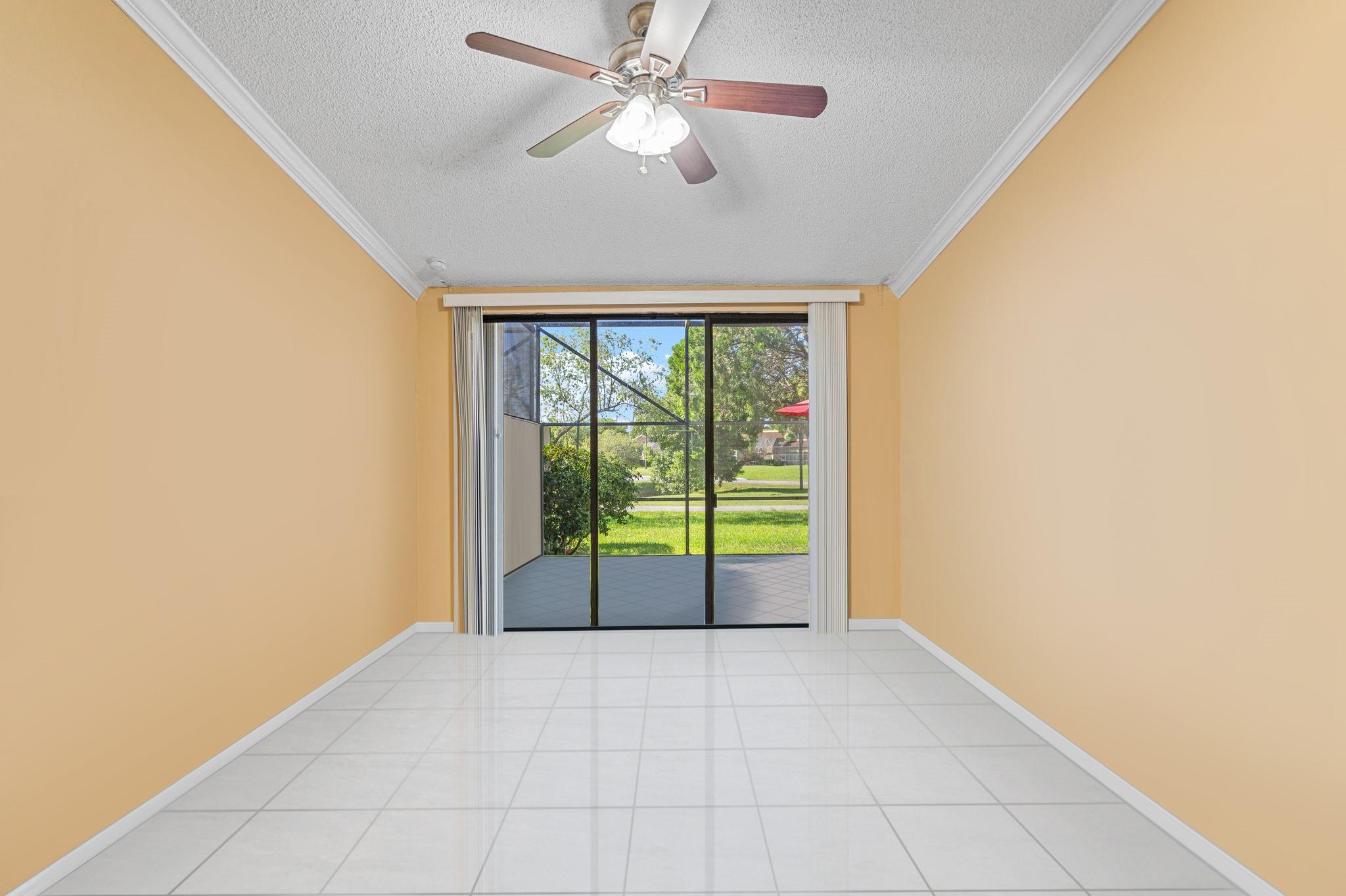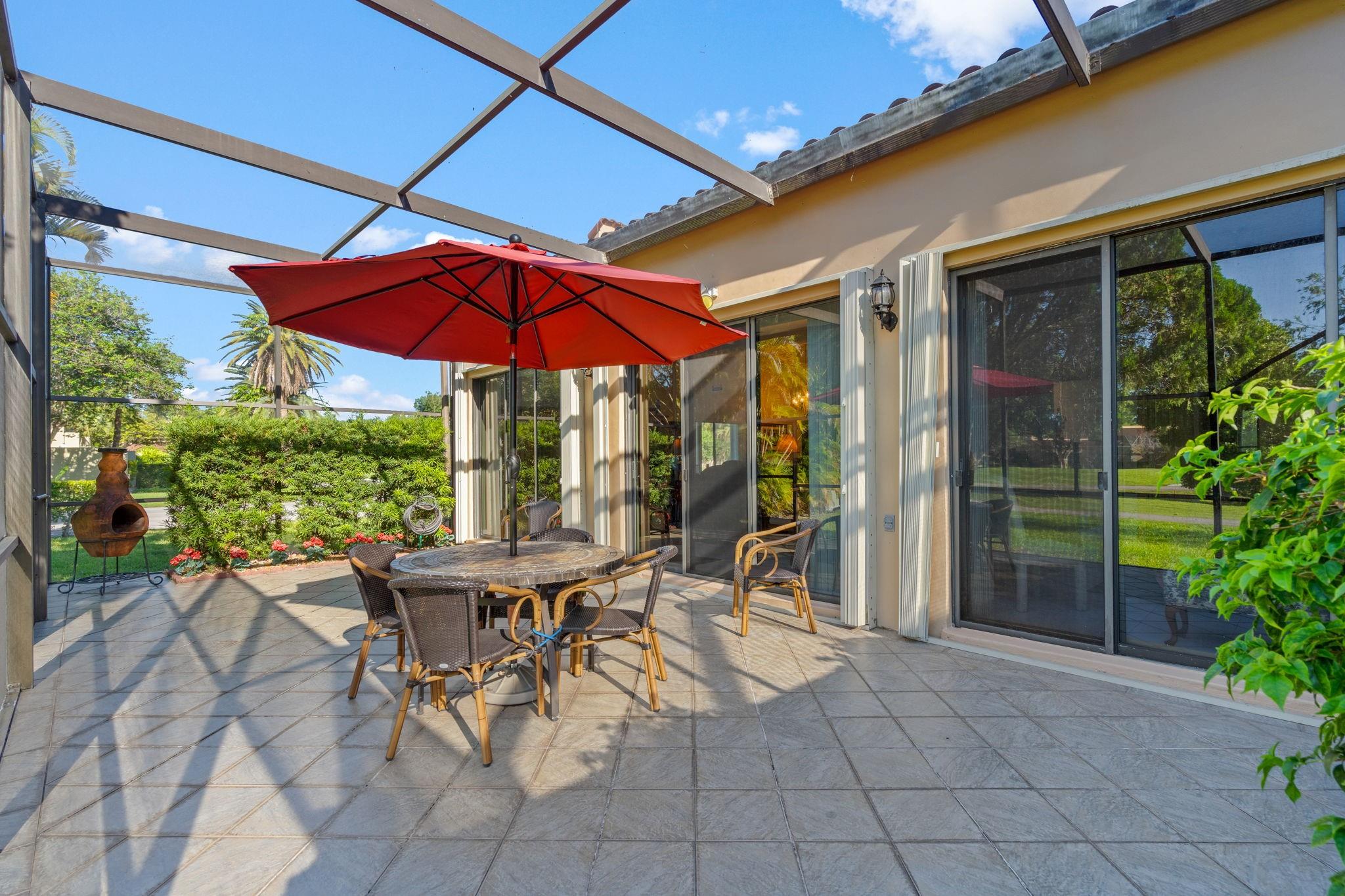 ONE STORY! CORNER! Golf & Water-views! Beautifully maintained 3-bed, 2 Bath LED exterior lighting! No Expense spared! Vaulted ceilings, Updated kitchen, Bath remodel, tiled floors, CCTV Cameras. Breathtaking views every room, large green space in backyard. Spacious living & dining filled w/natural light. Floored & lighted attic w/easy step-up ladder for extra storage, custom garage cabinets & custom garage floor finish. Storm ready, full accordion shutters, Impact Door, Impact Garage Door. AC 2024. Steps to clubhouse, 18-hole golf, restaurant on lake, tennis, basketball, pool, & jogging path. On-site management, 24-hour sec. guard entry. HOA INCLUDES Exterior & Roof Ins. Water, HD Cable, Internet, Driveway, Exterior paint, Trash, Landscaping, & common areas. Some pics photoshopped