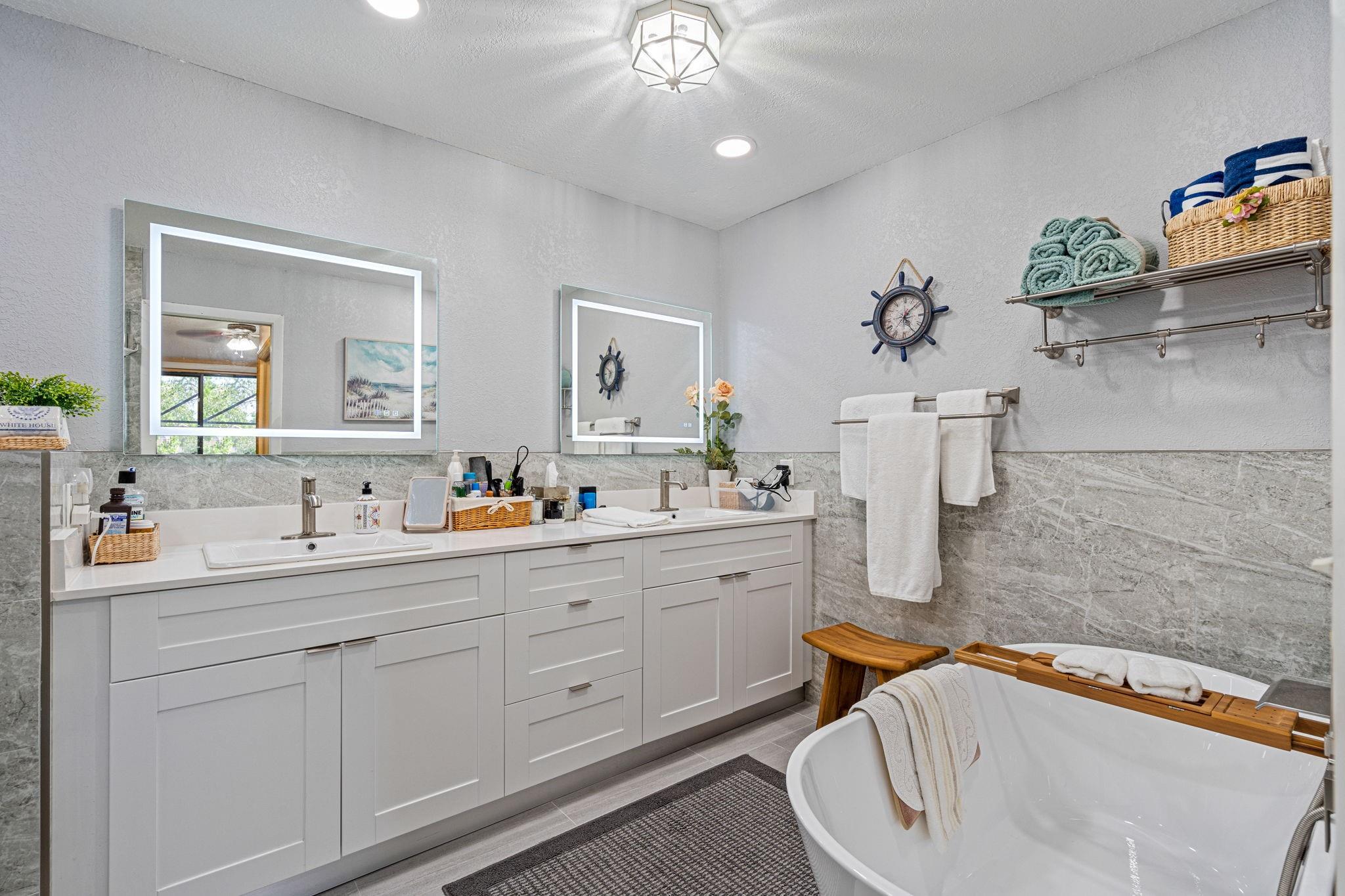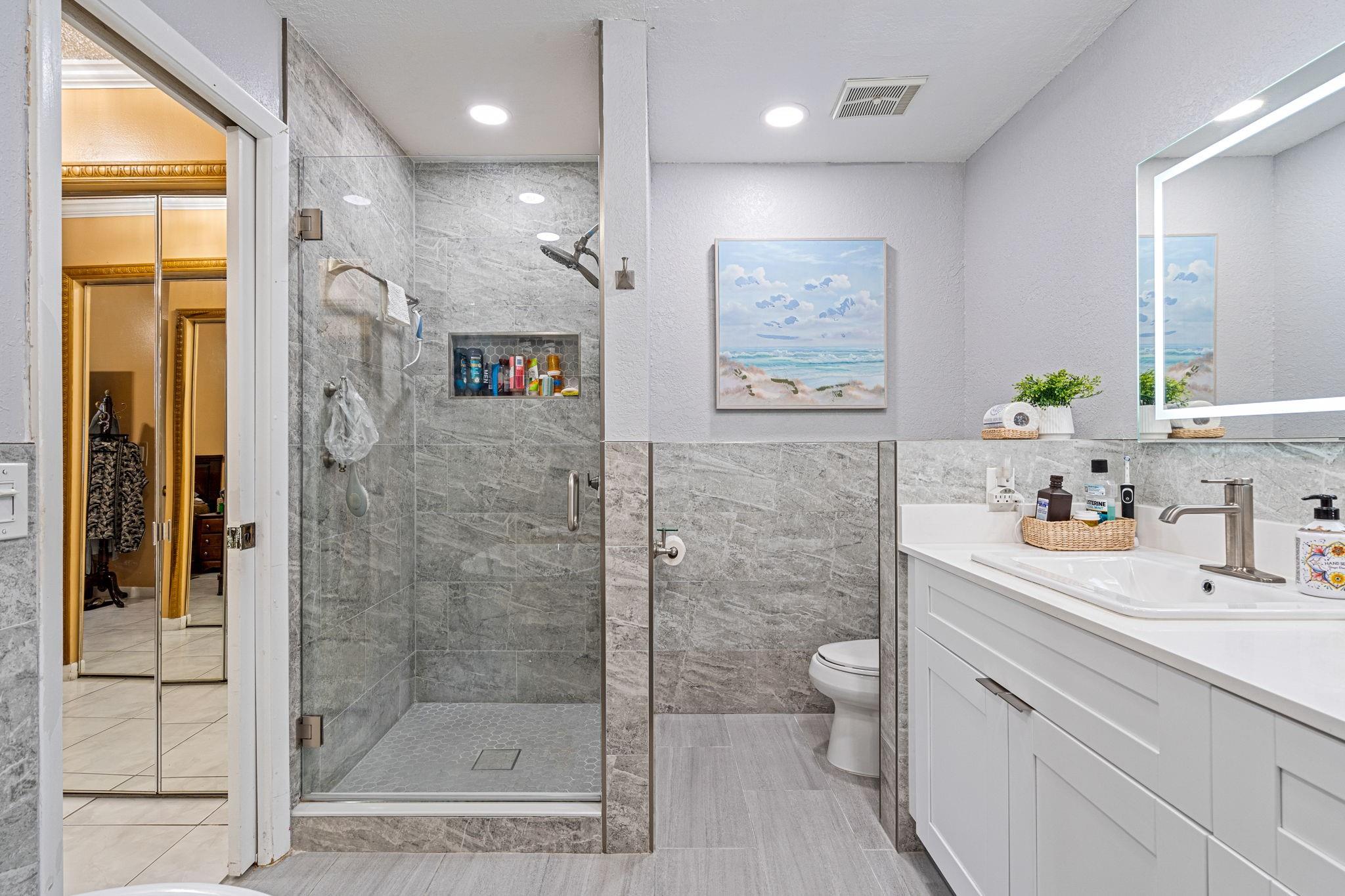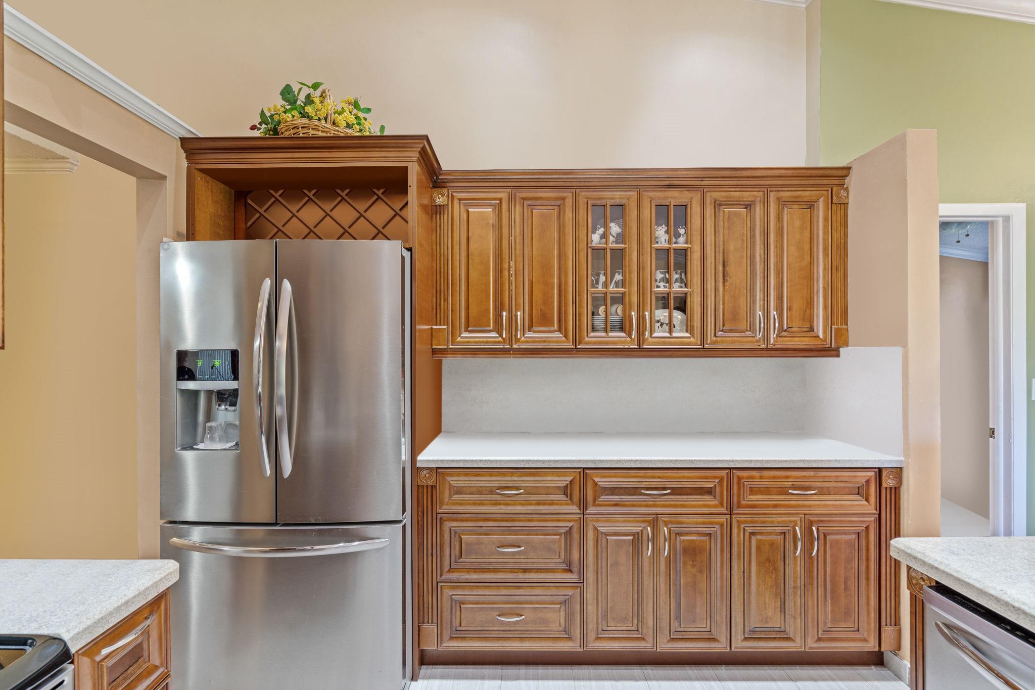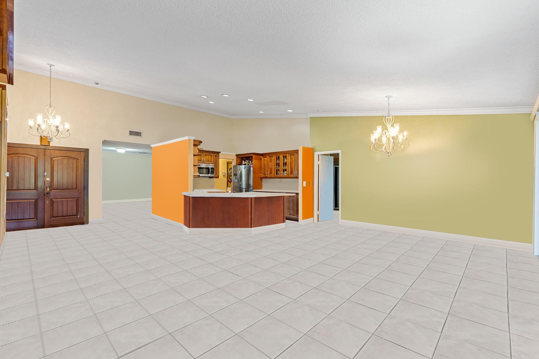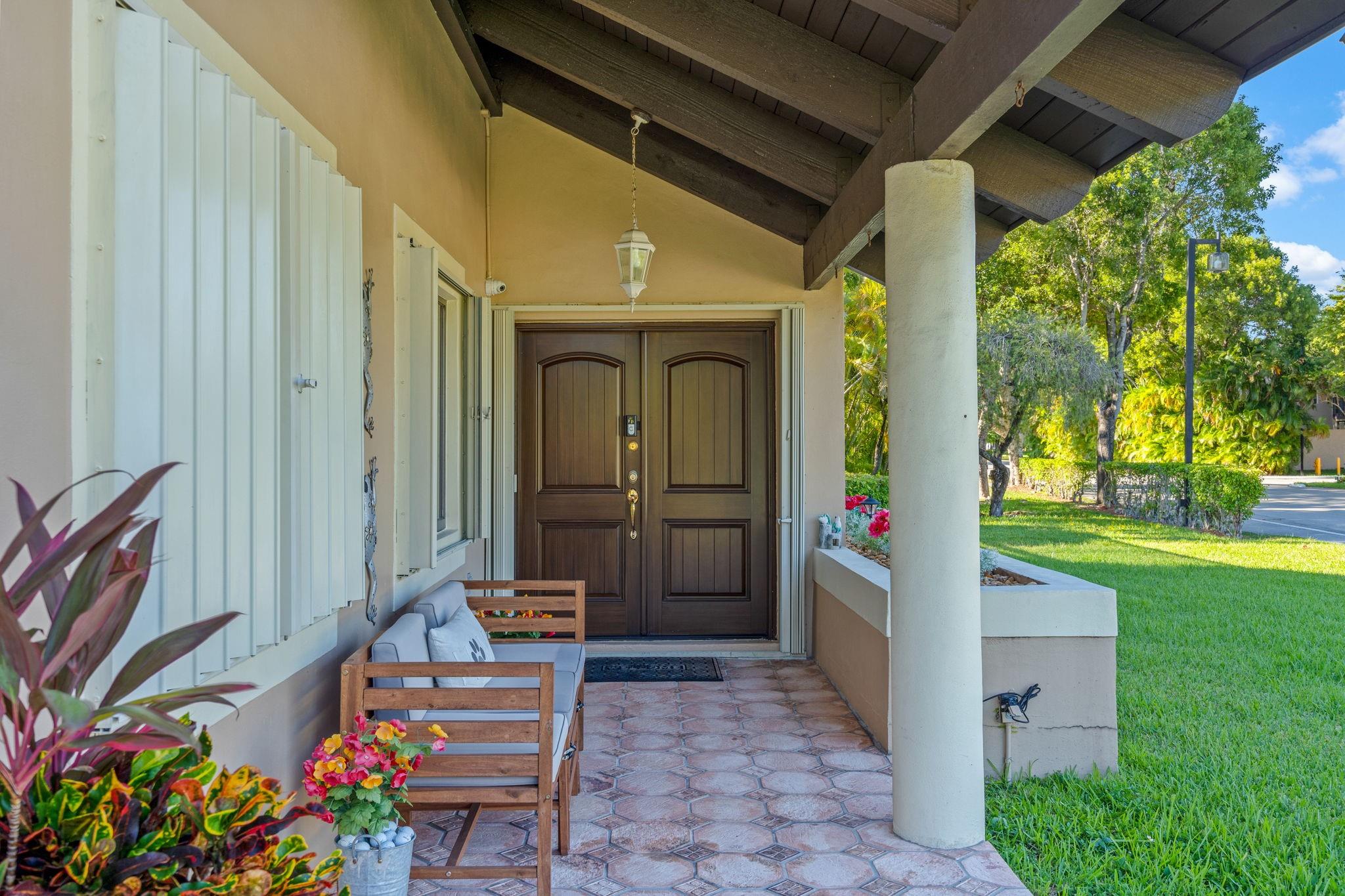 ONE STORY! CORNER! Golf & Water-views! Beautifully maintained 3-bed, 2 Bath LED exterior lighting! No Expense spared! Vaulted ceilings, Updated kitchen, Bath remodel, tiled floors, CCTV Cameras. Breathtaking views every room, large green space in backyard. Spacious living & dining filled w/natural light. Floored & lighted attic w/easy step-up ladder for extra storage, custom garage cabinets & custom garage floor finish. Storm ready, full accordion shutters, Impact Door, Impact Garage Door. AC 2024. Steps to clubhouse, 18-hole golf, restaurant on lake, tennis, basketball, pool, & jogging path. On-site management, 24-hour sec. guard entry. HOA INCLUDES Exterior & Roof Ins. Water, HD Cable, Internet, Driveway, Exterior paint, Trash, Landscaping, & common areas. Some pics photoshopped