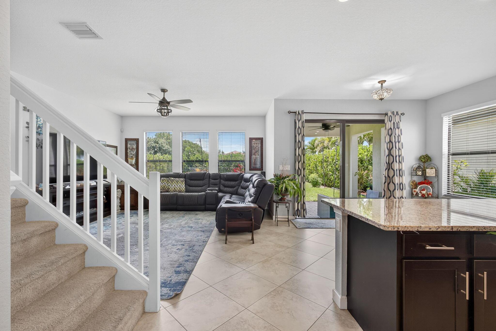 Step into this beautifully designed home featuring an open and light-filled floor plan perfect for modern living. The spacious kitchen with a large island is ideal for entertaining and everyday meals. Flexible living spaces include a versatile main-level room--perfect for a private home office or a comfortable mother-in-law suite--conveniently located next to a full bathroom. Natural light pours through large windows, highlighting the seamless flow between living, dining, and kitchen areas. Large main bedroom and generous walk-in closet This home offers comfort, functionality, and style in every detail. Large private backyard at the end of the lake. Gated community, close to fantastic shopping, restaurants, easy access to Florida Turn Pike.