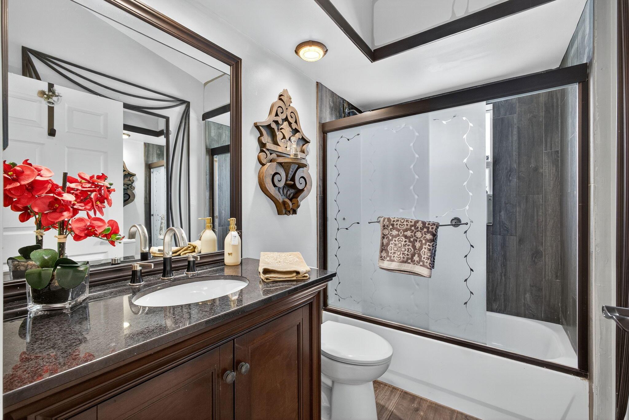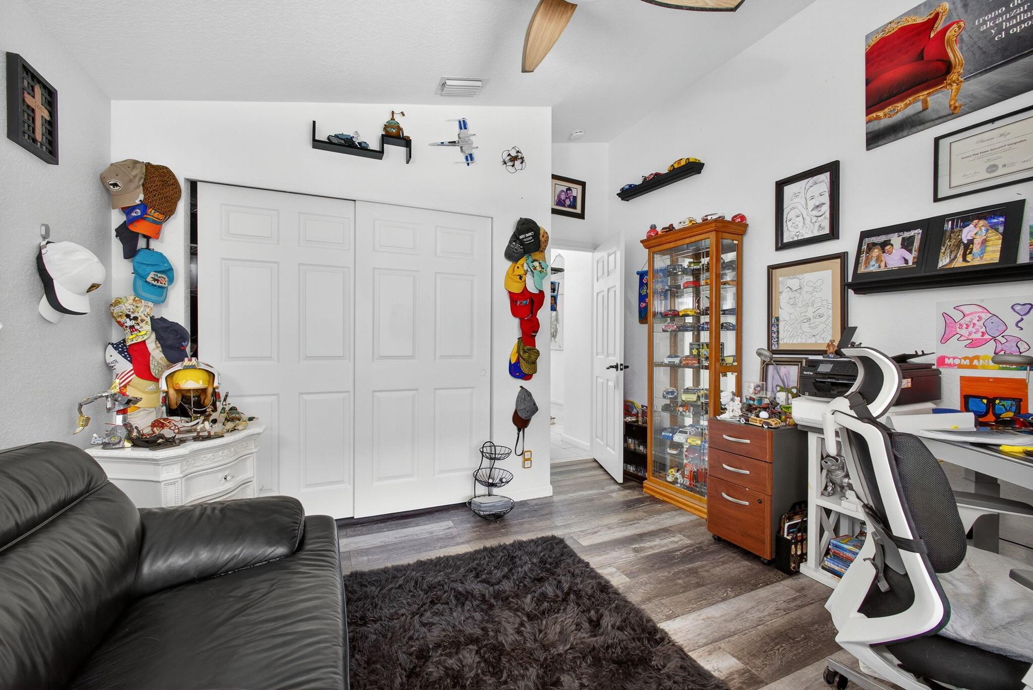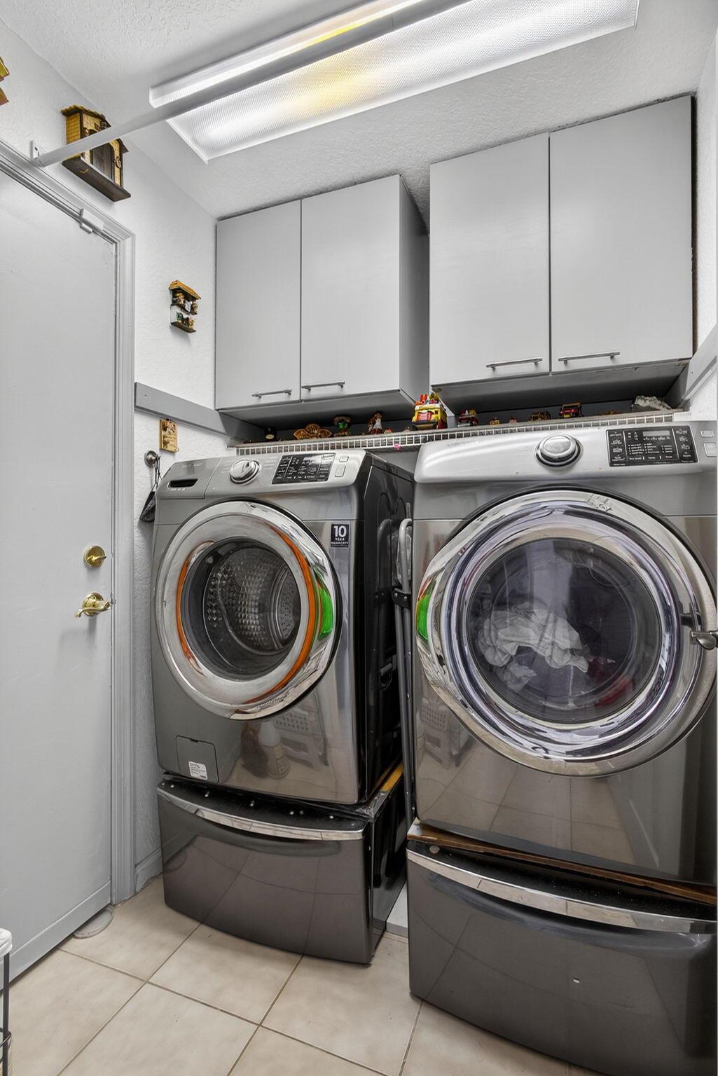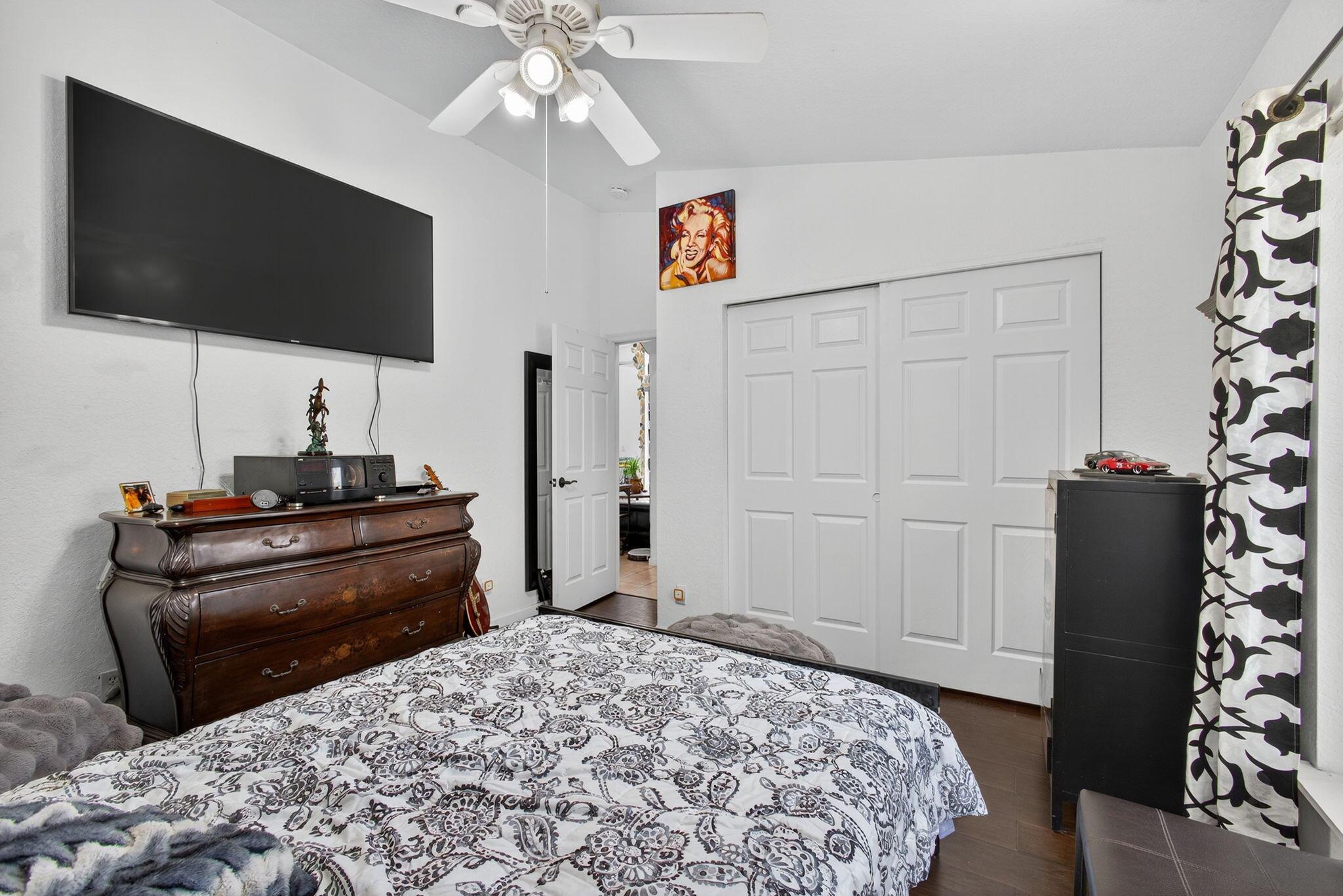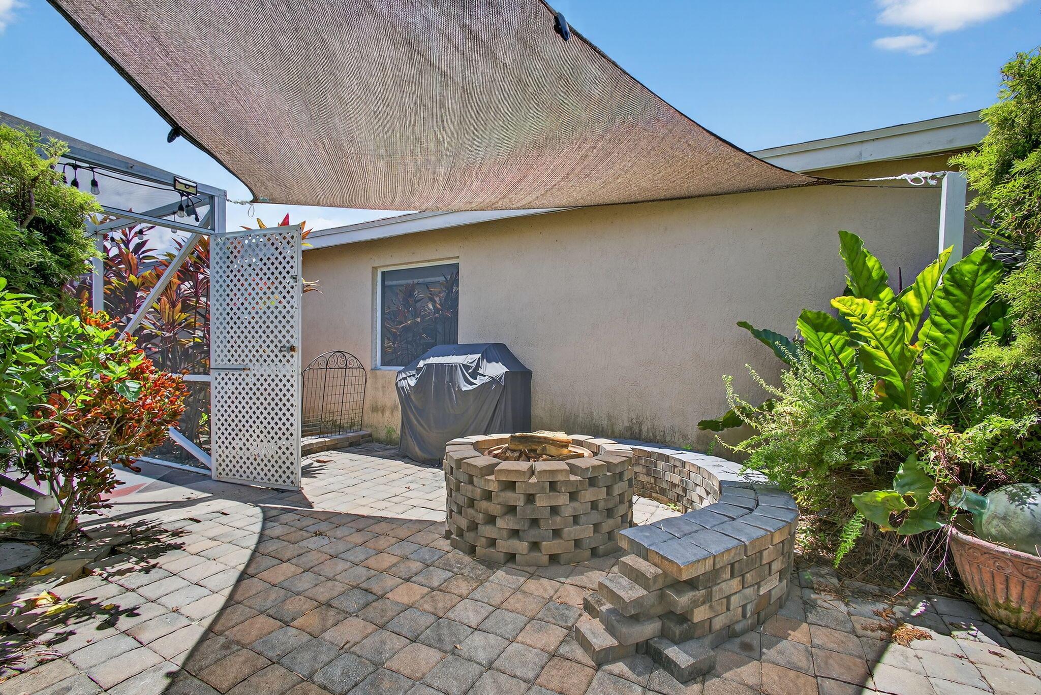 BRAND NEW ROOF 2024!! Stunning lakefront home with 3 bedrooms, 2 baths, a 2-car garage, screened-in pool and spa, and low HOA fee. This move-in-ready property features tile floors throughout the main living areas, custom built closet, vaulted ceilings and recessed lighting. The kitchen and living areas are enhanced with incredible stone accents and decorative backsplashes. The luxurious primary suite boasts a fully renovated bath with floor-to-ceiling porcelain tile, an oversized soaking tub, and elegant finishes. Enjoy your very own tropical oasis through the fenced-in pool and spa surrounded by a serene lake view and mature fruit trees. The heated pool includes a newer pool pump (2023). Full hurricane protection throughout of shutters and hurricane glass