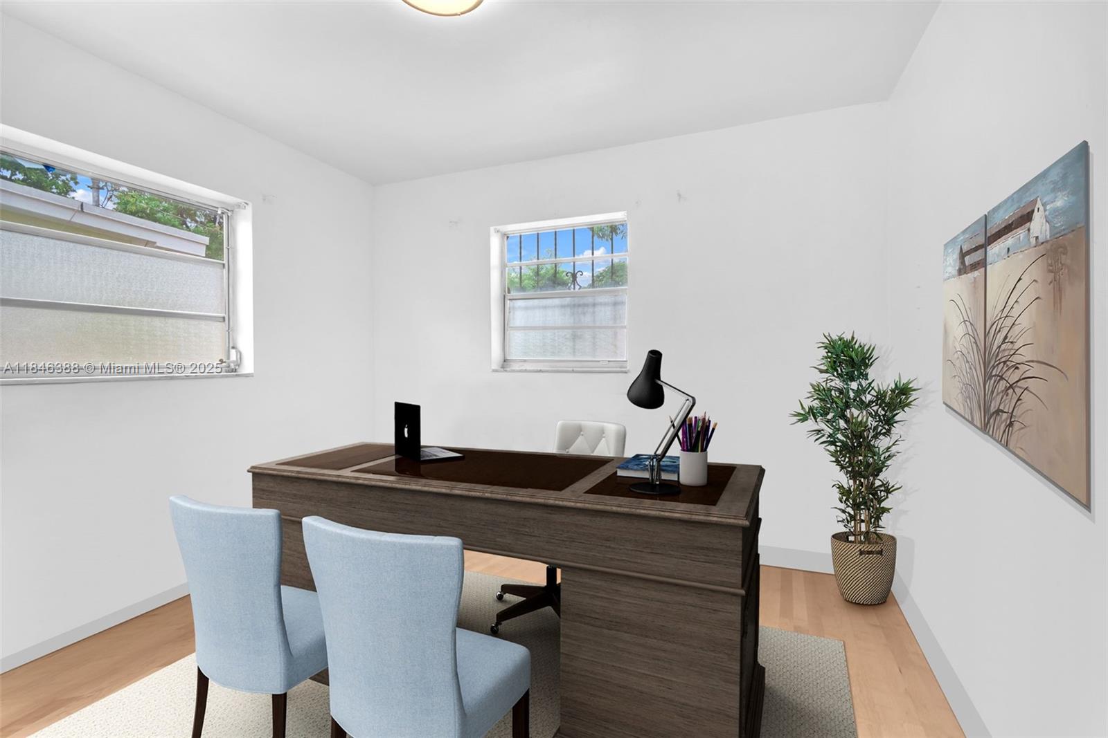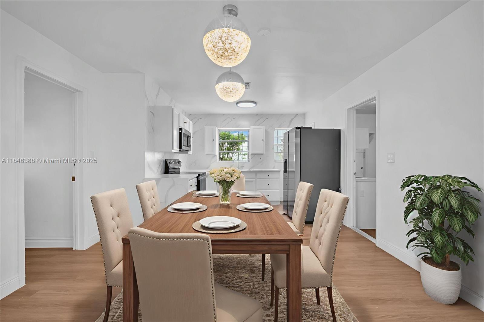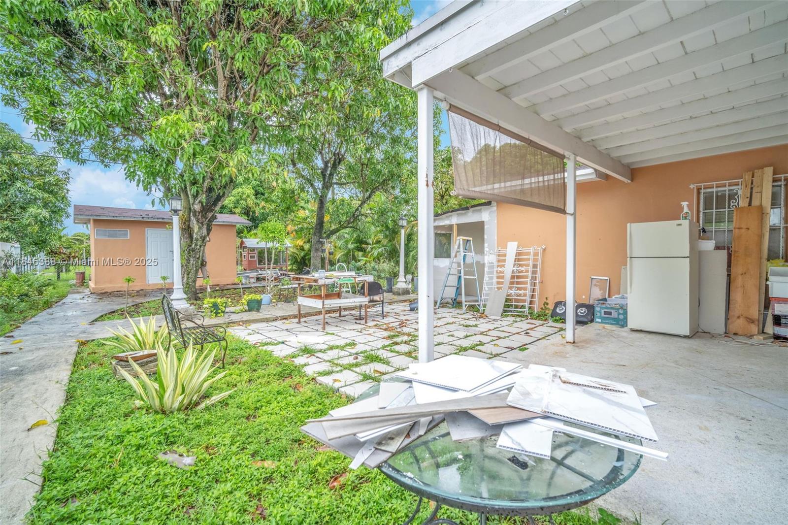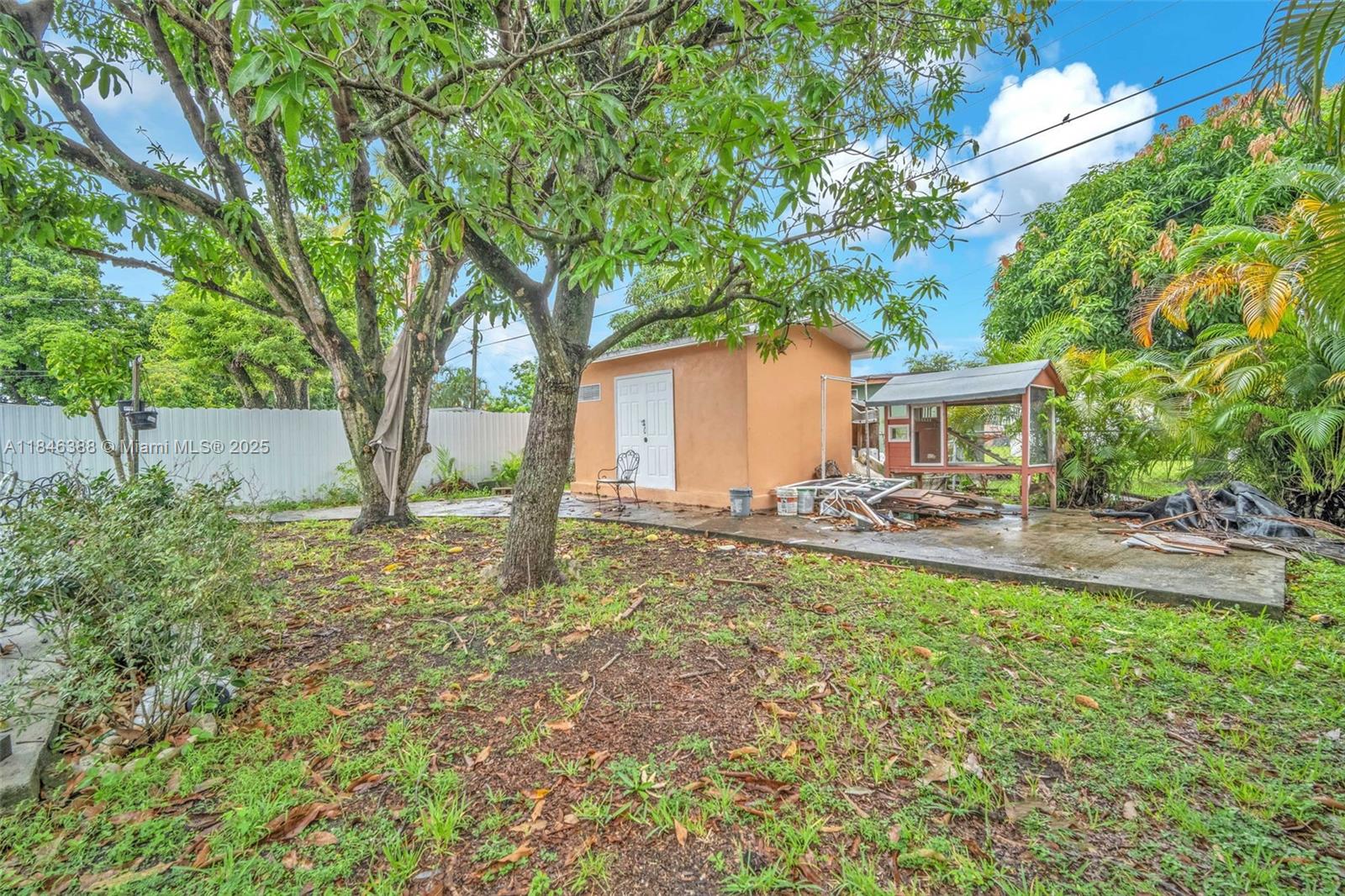 Desirable 3 bedroom, 2 bath home offering an appealing layout for comfortable living and entertaining. New A/C, brand name appliances, in a sleek, upgraded kitchen. Wood-like floors recently installed throughout the home, private studio with full bathroom, spacious fenced yard with covered terrace, delicious mango tree, large concrete storage shed and ample room for pool. Situated in a sought after neighborhood conveniently close to Miami International Airport, Wynwood, Miami Beach, major malls and restaurants. Whether you are looking for a profitable income-producing home like Airbnb or a charming home to host friends and loved ones, this property checks all the boxes. This is a rare opportunity you don't want to miss!