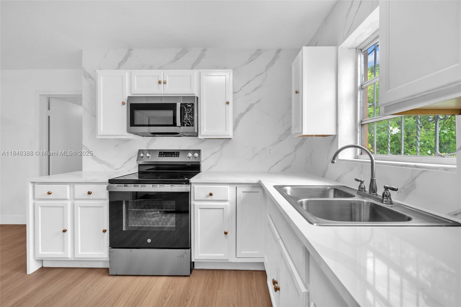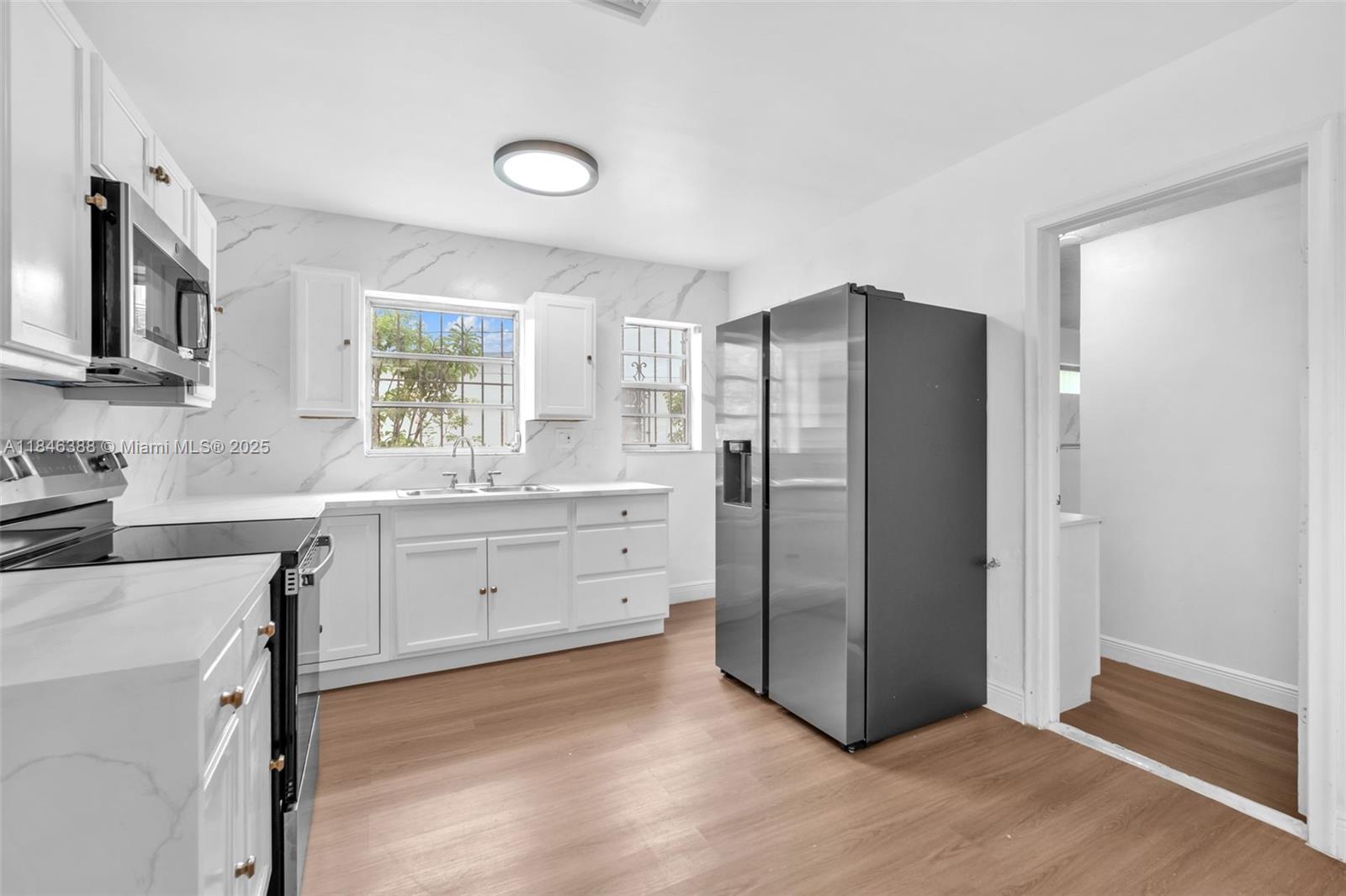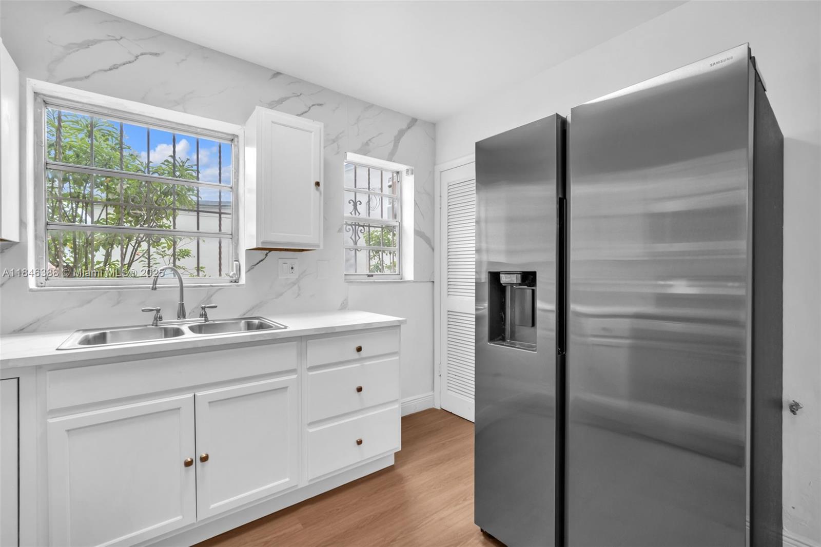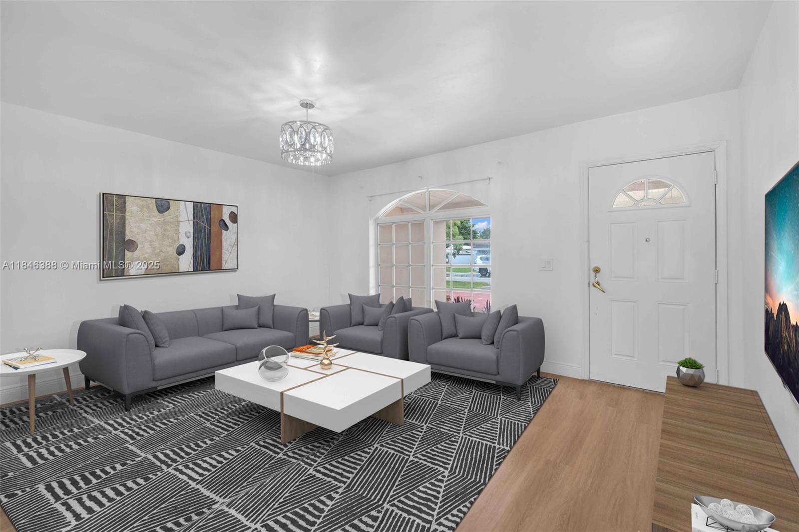 Desirable 3 bedroom, 2 bath home offering an appealing layout for comfortable living and entertaining. New A/C, brand name appliances, in a sleek, upgraded kitchen. Wood-like floors recently installed throughout the home, private studio with full bathroom, spacious fenced yard with covered terrace, delicious mango tree, large concrete storage shed and ample room for pool. Situated in a sought after neighborhood conveniently close to Miami International Airport, Wynwood, Miami Beach, major malls and restaurants. Whether you are looking for a profitable income-producing home like Airbnb or a charming home to host friends and loved ones, this property checks all the boxes. This is a rare opportunity you don't want to miss!