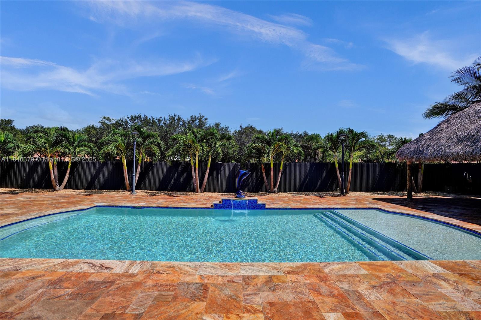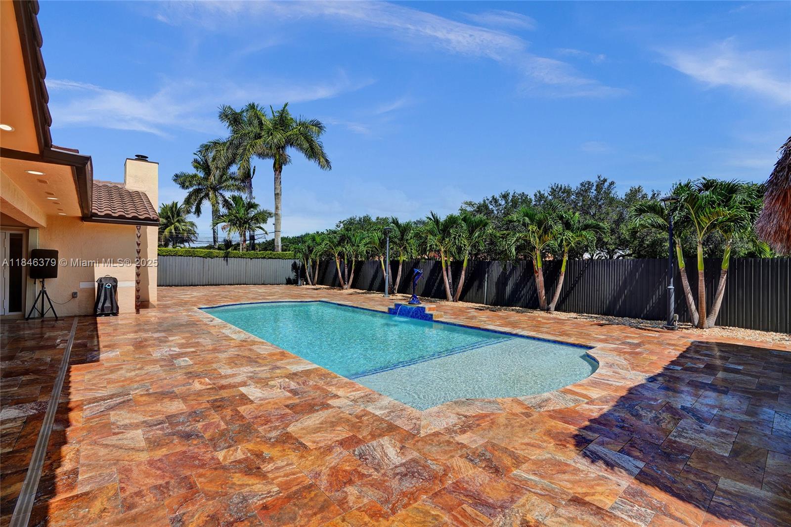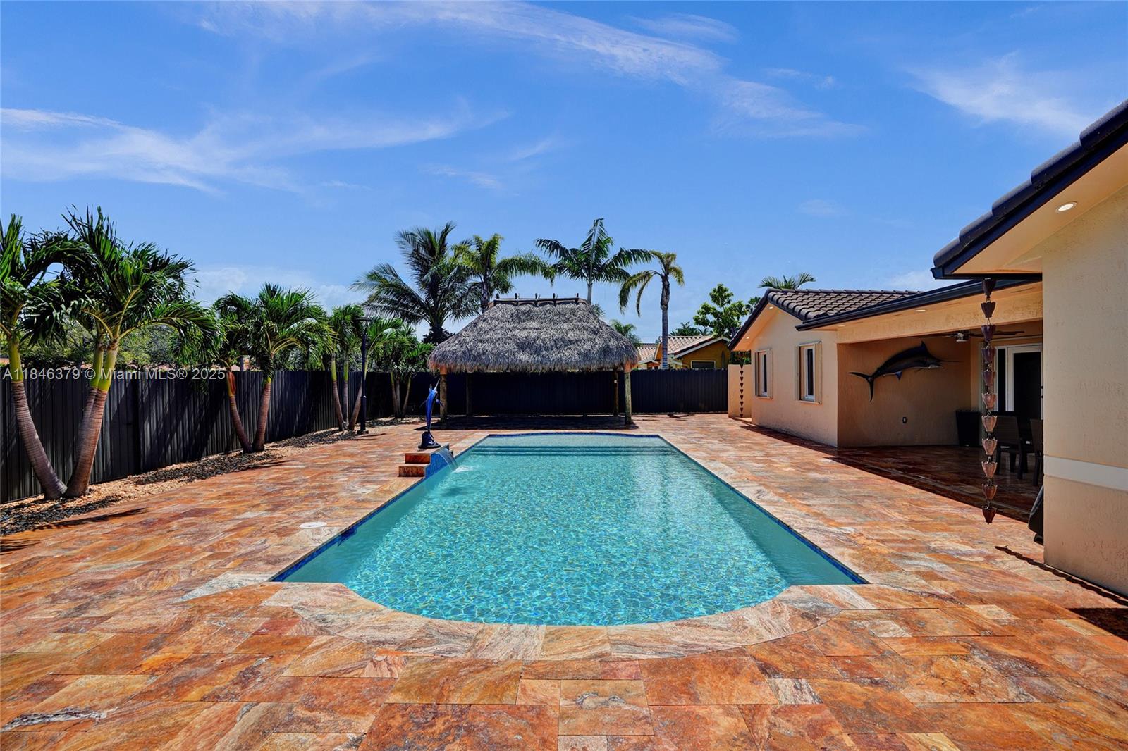 You have found the place you will call home in this 4/3 single family home perfect for entertaining family & friends at BBQs & holidays in the large size backyard w/ a covered terrace plus a tiki hut equipped w/ surround sound, TV, fans & adjacent to the saltwater pool for those hot summer days. Own a jet ski or small boat? There is room for them as well. The property also features accordion shutters, approx. 3 yr. old roof w/ 10 yr. warranty, two A/C units approx. 4 yrs. old, tankless water heater, water softener/filter system, porcelain flooring throughout, wood kitchen cabinets, stainless steel appliances, circular driveway w/ recently installed pavers that accommodates several vehicles, camara system included in the sale & so much more. See it ... love it ... make it your own!