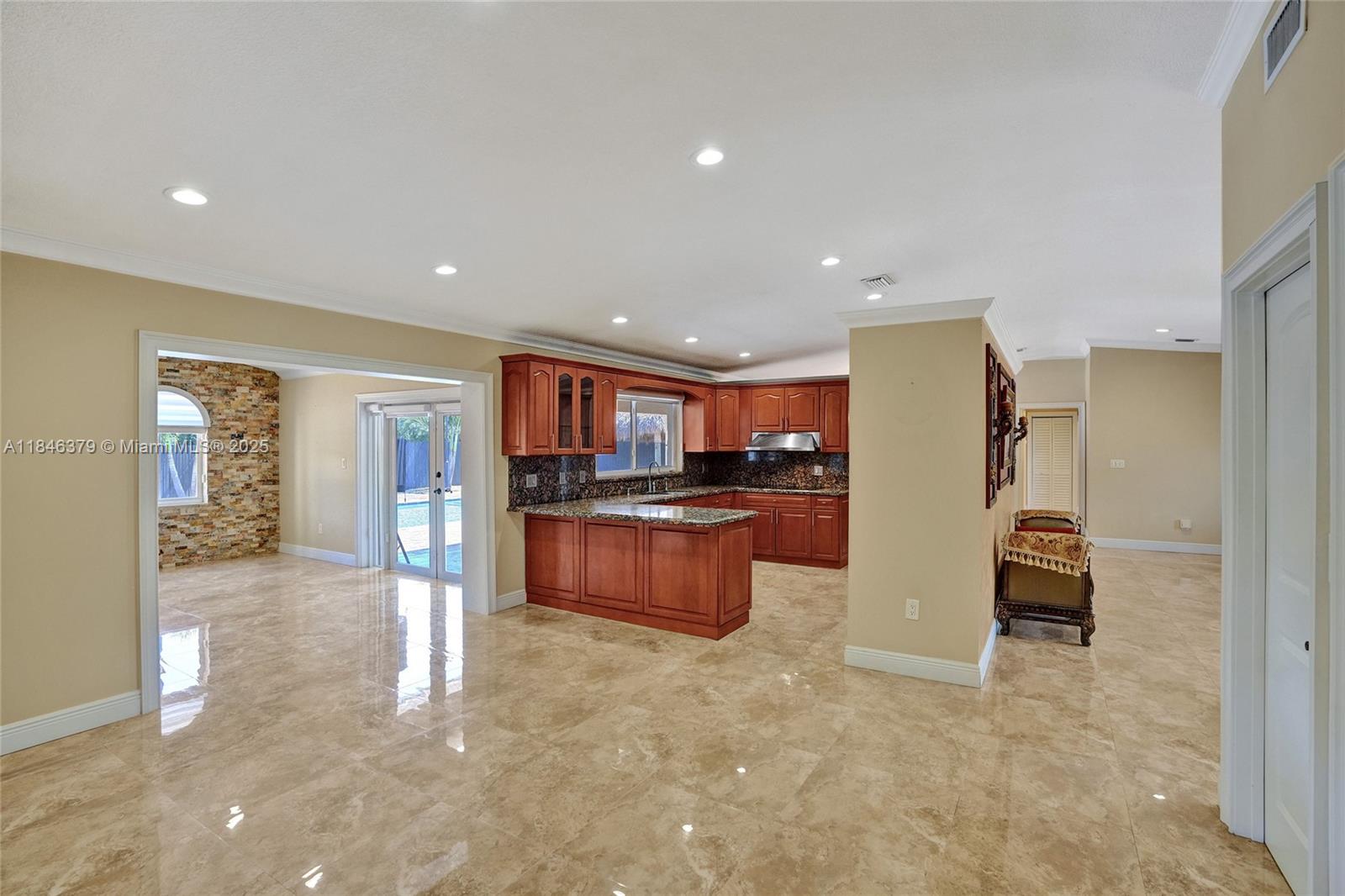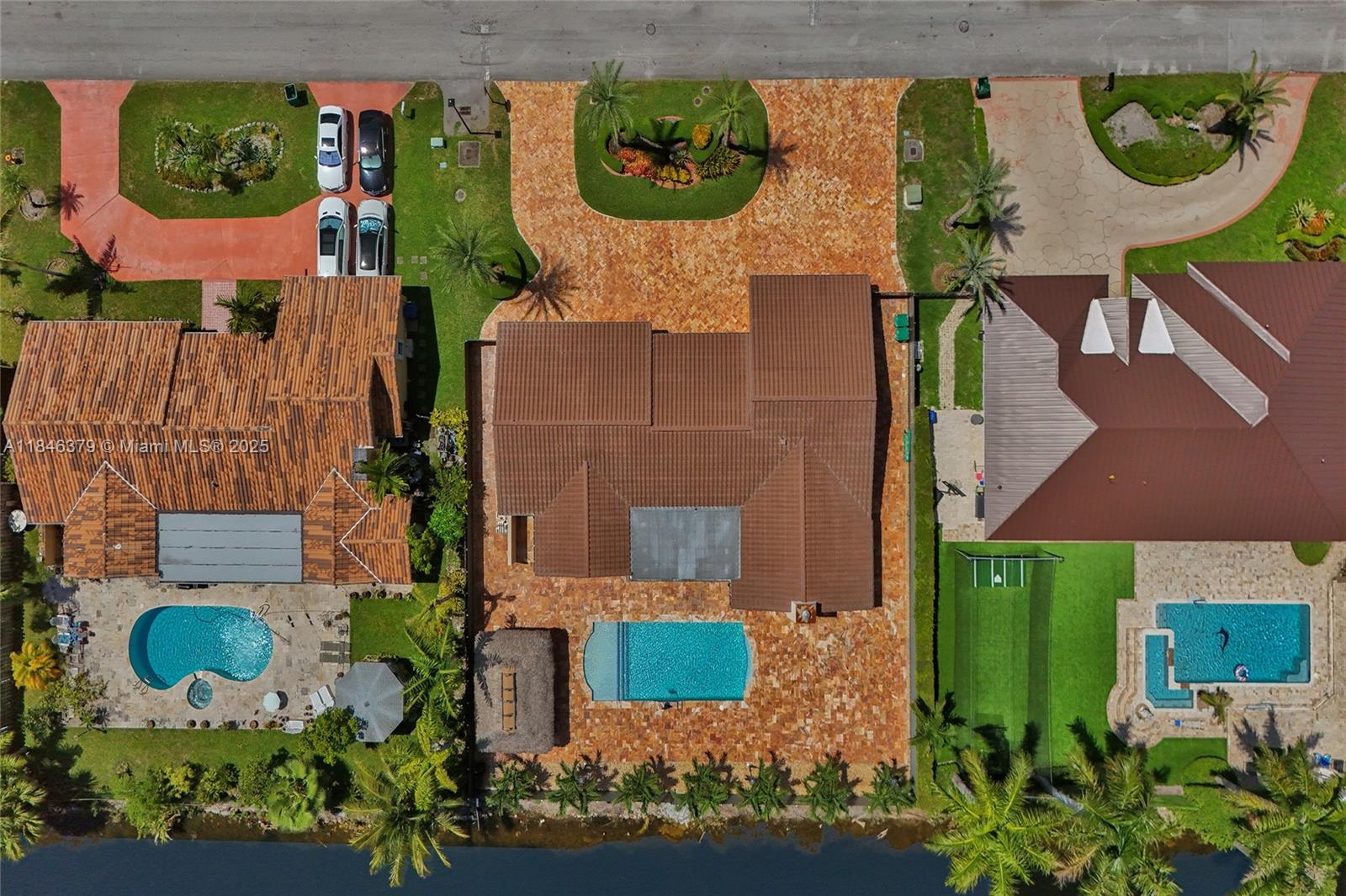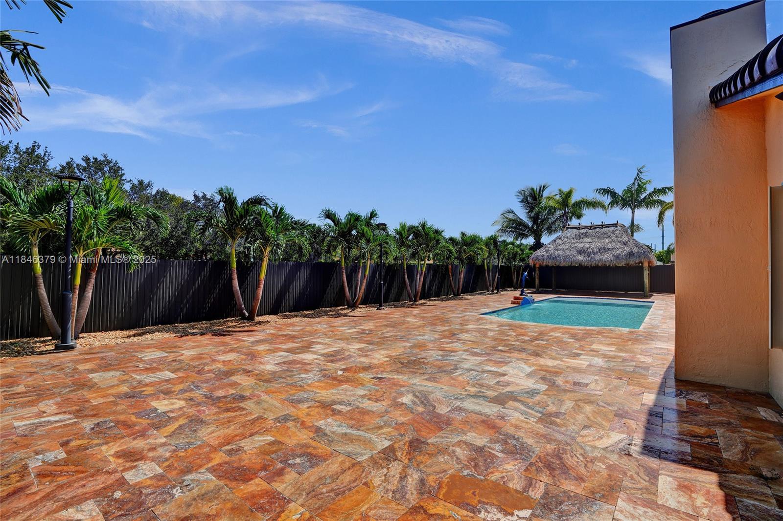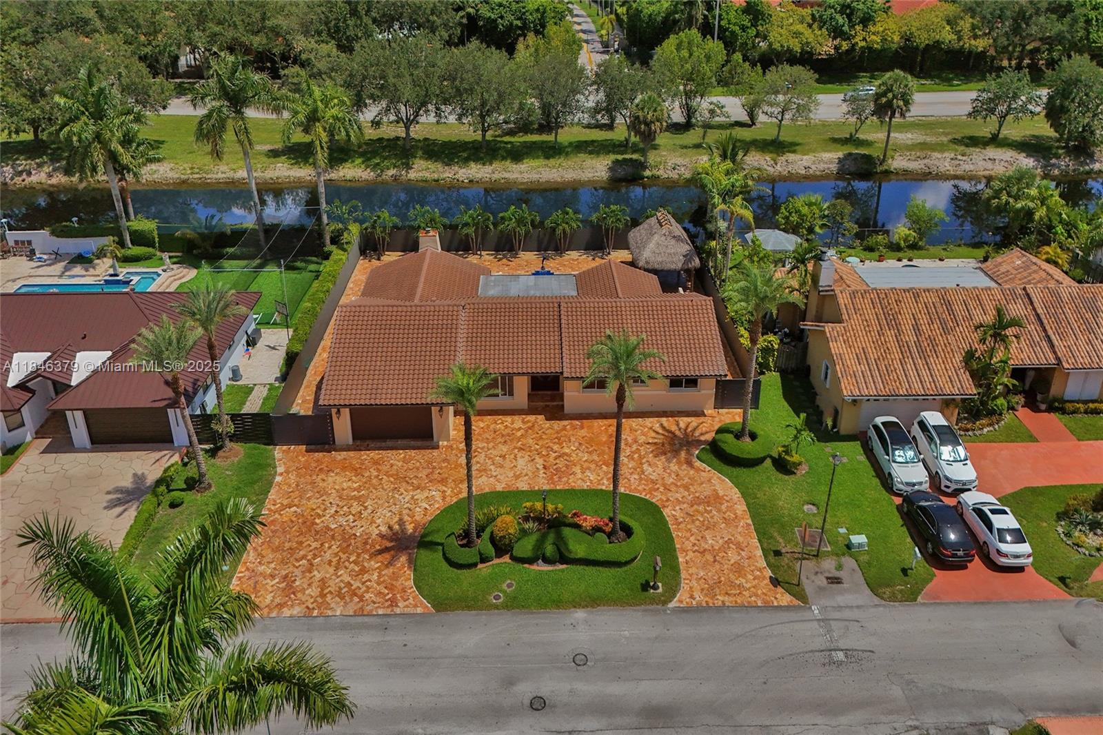 You have found the place you will call home in this 4/3 single family home perfect for entertaining family & friends at BBQs & holidays in the large size backyard w/ a covered terrace plus a tiki hut equipped w/ surround sound, TV, fans & adjacent to the saltwater pool for those hot summer days. Own a jet ski or small boat? There is room for them as well. The property also features accordion shutters, approx. 3 yr. old roof w/ 10 yr. warranty, two A/C units approx. 4 yrs. old, tankless water heater, water softener/filter system, porcelain flooring throughout, wood kitchen cabinets, stainless steel appliances, circular driveway w/ recently installed pavers that accommodates several vehicles, camara system included in the sale & so much more. See it ... love it ... make it your own!