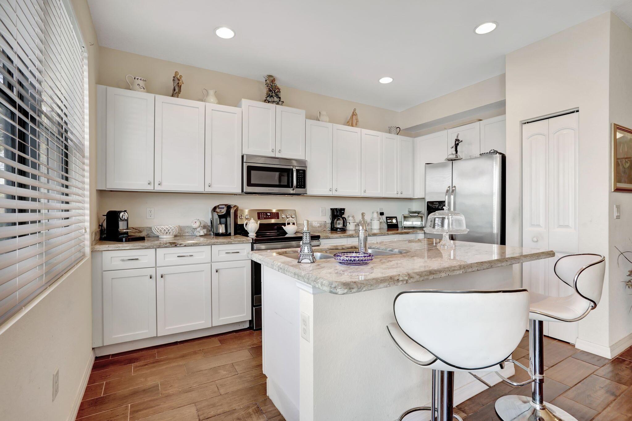 Beautifully updated 3-bed, 2.5-bath townhome in the gated community of Madison Place, Pompano Beach! Better than new! Built in 2017 with largest floor plan in the community, this home features hurricane-impact windows, 9'6'' ceilings, and serene lake views. The modern kitchen offers white cabinetry, beautiful granite counters, an island, and stainless steel appliances, with a patio off the dining area. The primary suite has a walk-in closet, plus an upstairs washer/dryer. Enjoy a 1-car garage, 2-car driveway, and low $158 HOA. Lake front community pool, gazebo, and playground. Prime location near major roads, shopping, dining, and nightlife with easy access to Palm Beach, Fort Lauderdale, and Miami. Pet-friendly!