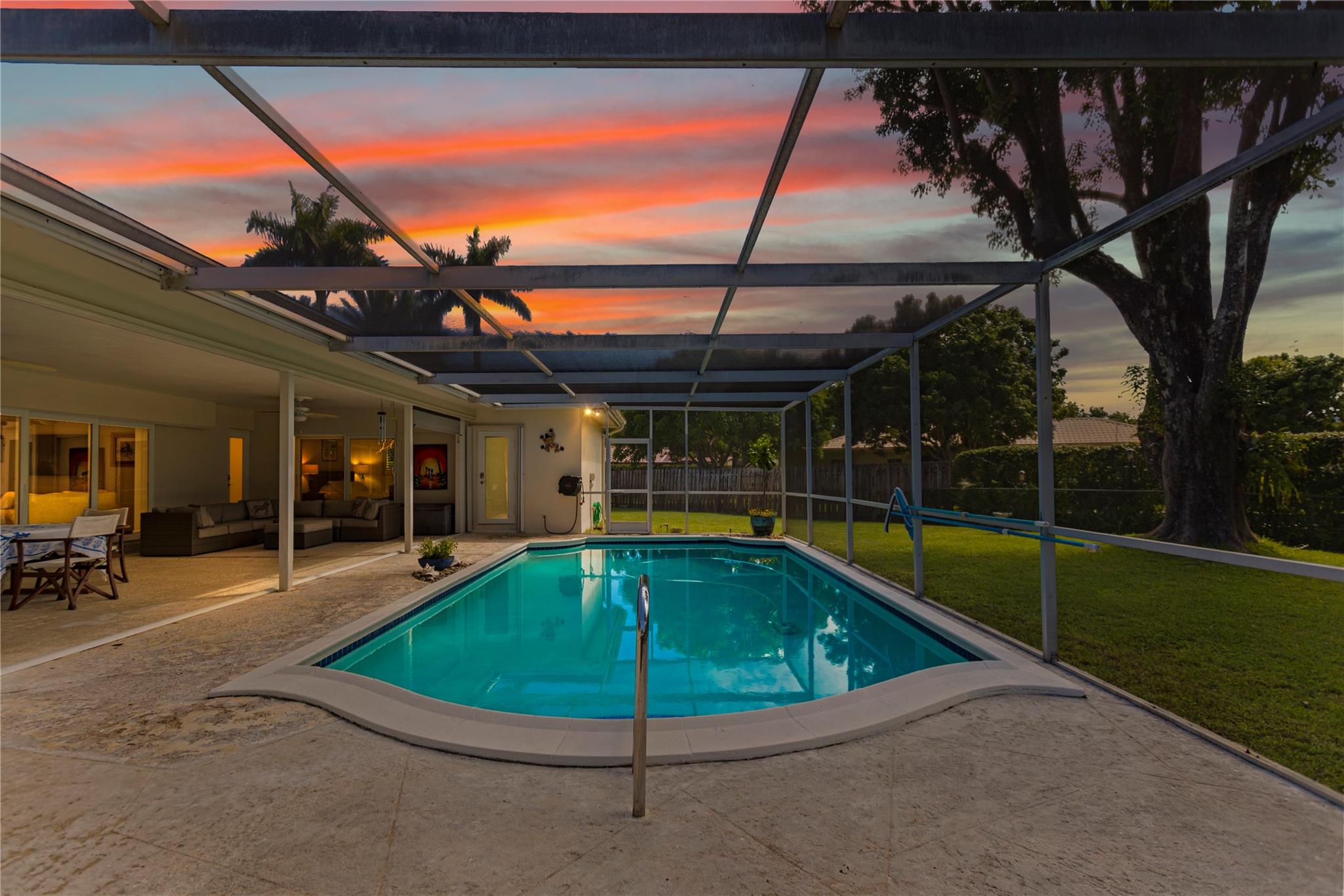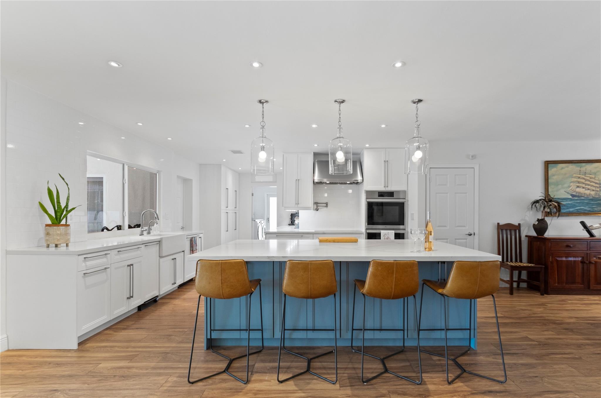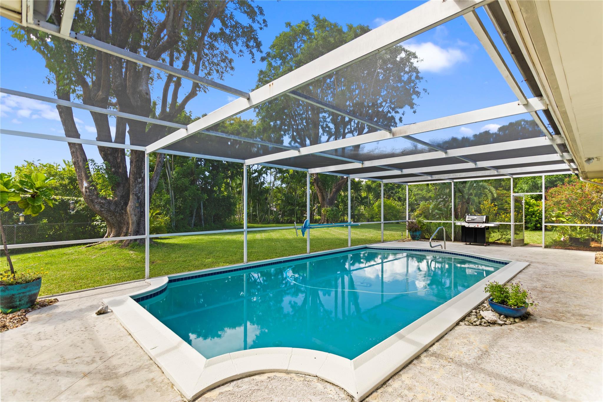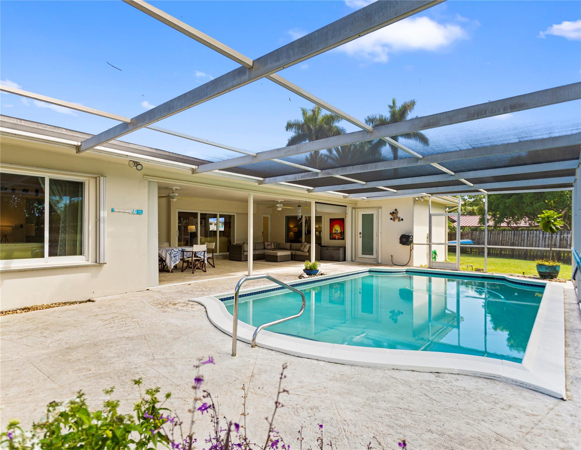 Beautifully renovated 5BR/3BA, OPEN CONCEPT home boasting over 3000 total sqft on a quiet cul-de-sac lot that is roughly 1/2 ACRE. Stunning oversized kitchen with a massive center island, separate full size refrigerator/freezer combo, LG double ovens, pot filler, JennAir extractor, induction cook top and a farmhouse sink with a window overlooking the pool and yard. UPDATED ELECTRICAL PANEL, 2019 A/C, 2018 water heater, 2015 flat roof, 2005 shingle roof, FULL IMPACT WINDOWS AND DOORS. Laminate wood floors throughout, NEW carpet in two bedrooms. Double master suites—perfect for IN-LAWs or guests. Impact sliders retract all the way open to a spacious 34x15 covered patio. The canal connects to Fig Tree lake and park. Circular driveway, great closet space, amazing park-like backyard setting.