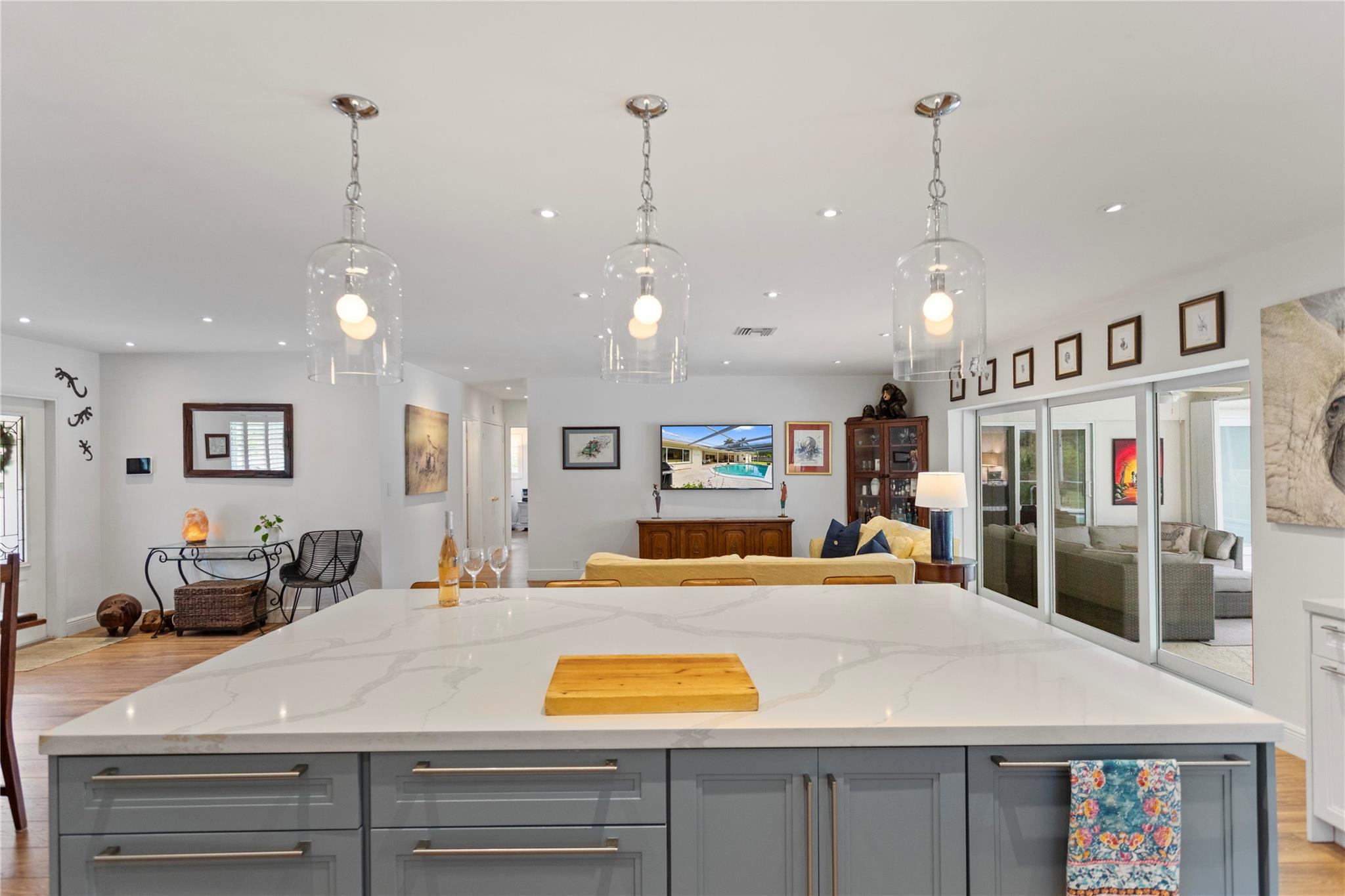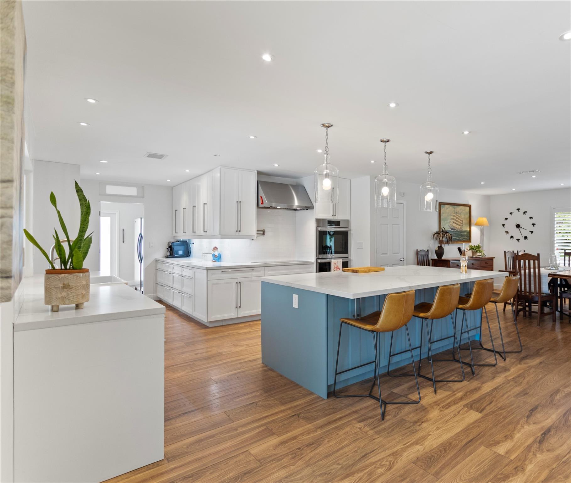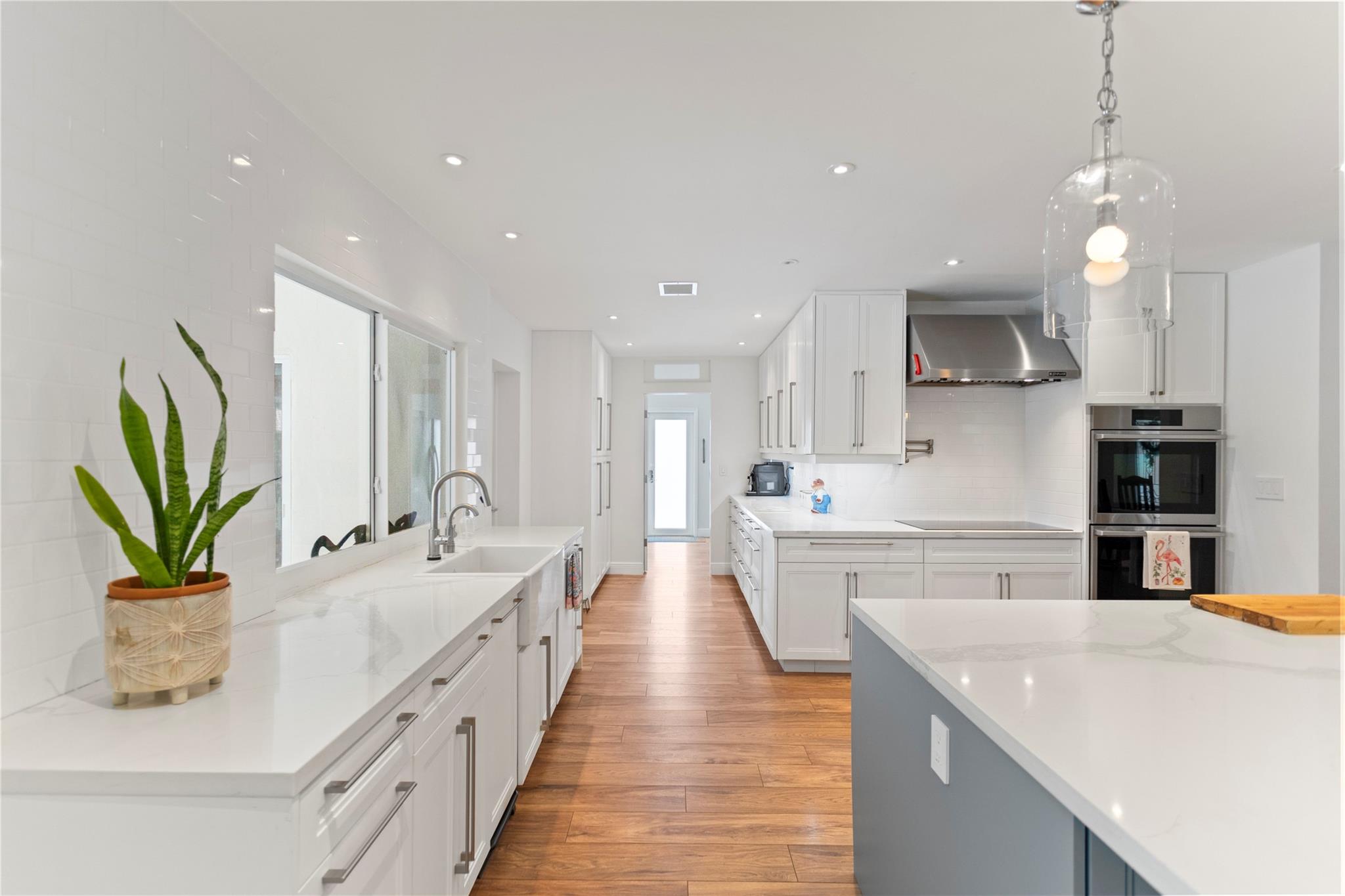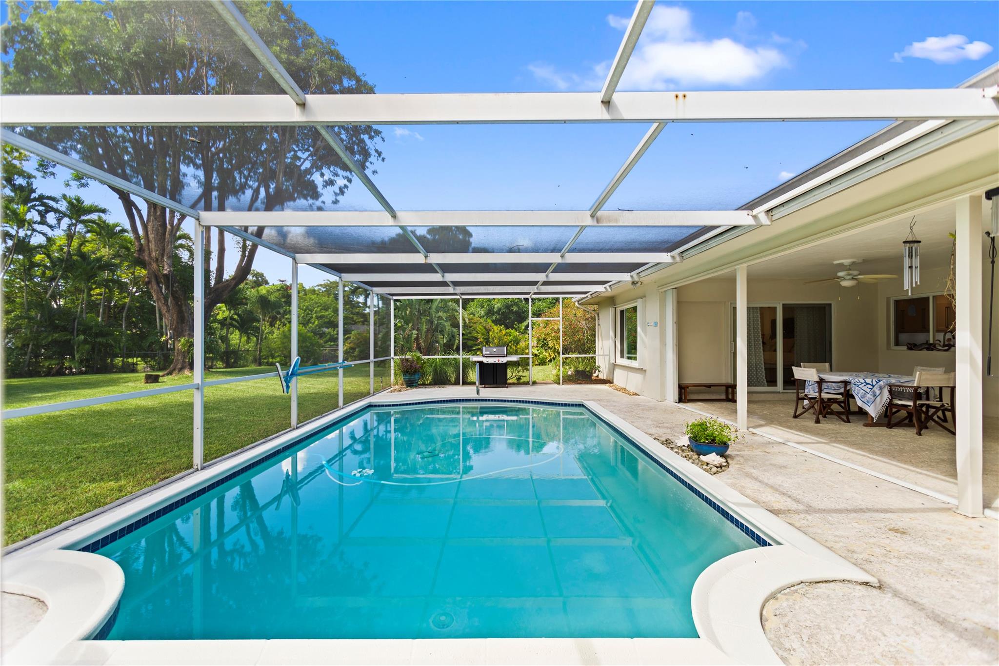 Beautifully renovated 5BR/3BA, OPEN CONCEPT home boasting over 3000 total sqft on a quiet cul-de-sac lot that is roughly 1/2 ACRE. Stunning oversized kitchen with a massive center island, separate full size refrigerator/freezer combo, LG double ovens, pot filler, JennAir extractor, induction cook top and a farmhouse sink with a window overlooking the pool and yard. UPDATED ELECTRICAL PANEL, 2019 A/C, 2018 water heater, 2015 flat roof, 2005 shingle roof, FULL IMPACT WINDOWS AND DOORS. Laminate wood floors throughout, NEW carpet in two bedrooms. Double master suites—perfect for IN-LAWs or guests. Impact sliders retract all the way open to a spacious 34x15 covered patio. The canal connects to Fig Tree lake and park. Circular driveway, great closet space, amazing park-like backyard setting.