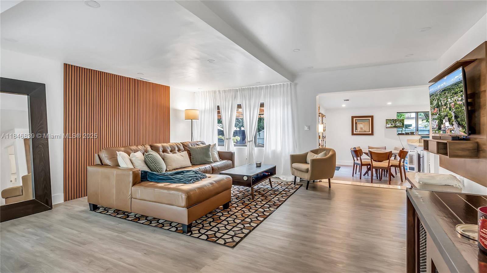 Welcome to this stunning 4-bedroom, 3-bath home on an oversized corner lot in desirable North Miami Beach. This home offers two primary bedroom suites with private baths, including one with its own entrance—perfect for an in-law suite, guest quarters, or potential rental income. The open layout includes a modern eat in kitchen with quartz counters and stainless-steel appliances. Recent upgrades feature a new electrical panel and wiring, automated LED lighting, remodeled baths with PVC plumbing, impact windows and doors, and vinyl flooring with tile in baths. The fenced backyard is great for relaxing, entertaining, or adding a pool. Close to beaches, highways, dining, downtown Miami & Ft Lauderdale. No HOA, City permit in place for Airbnb. Move-in-ready home with attention to every detail.