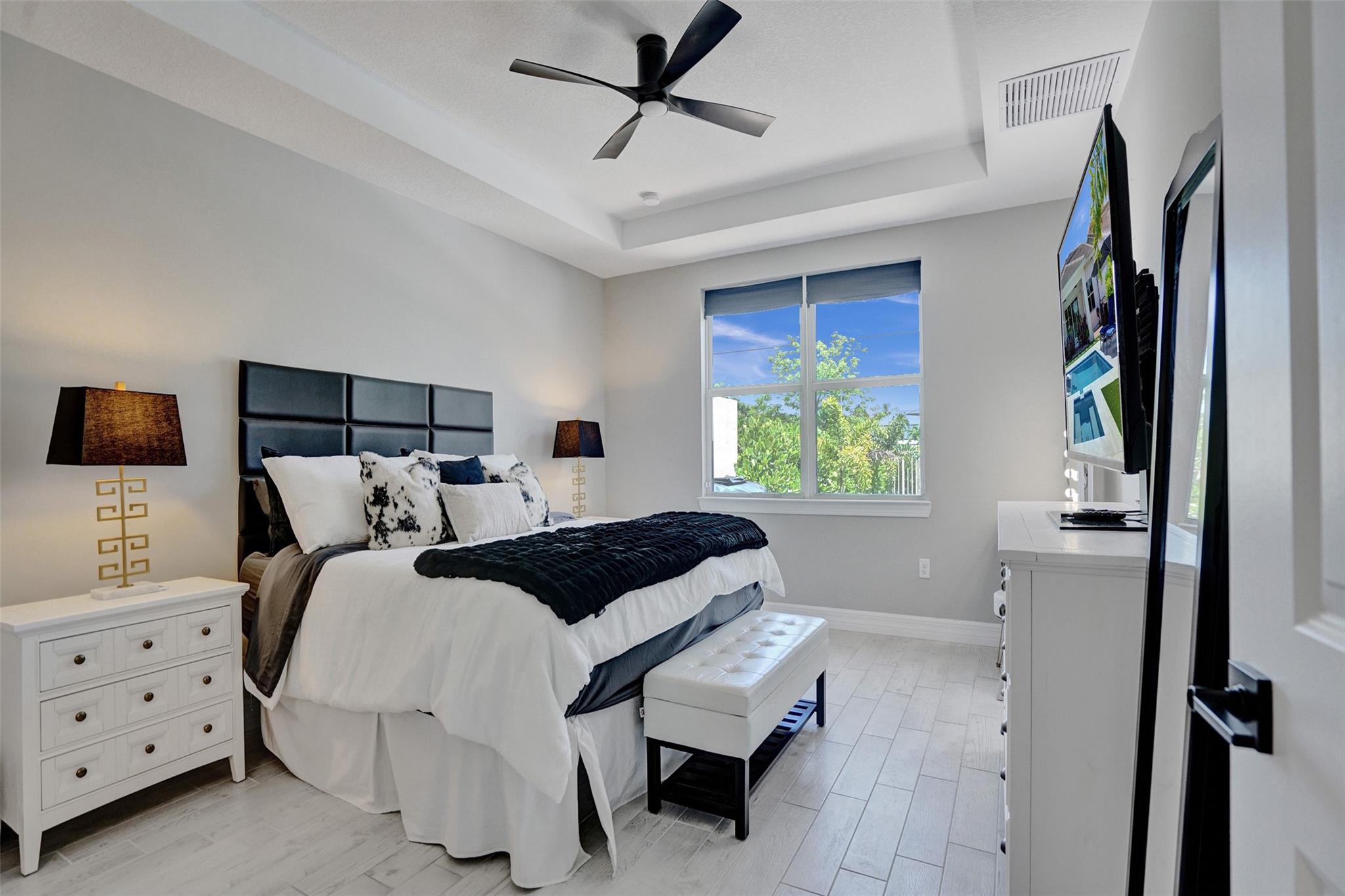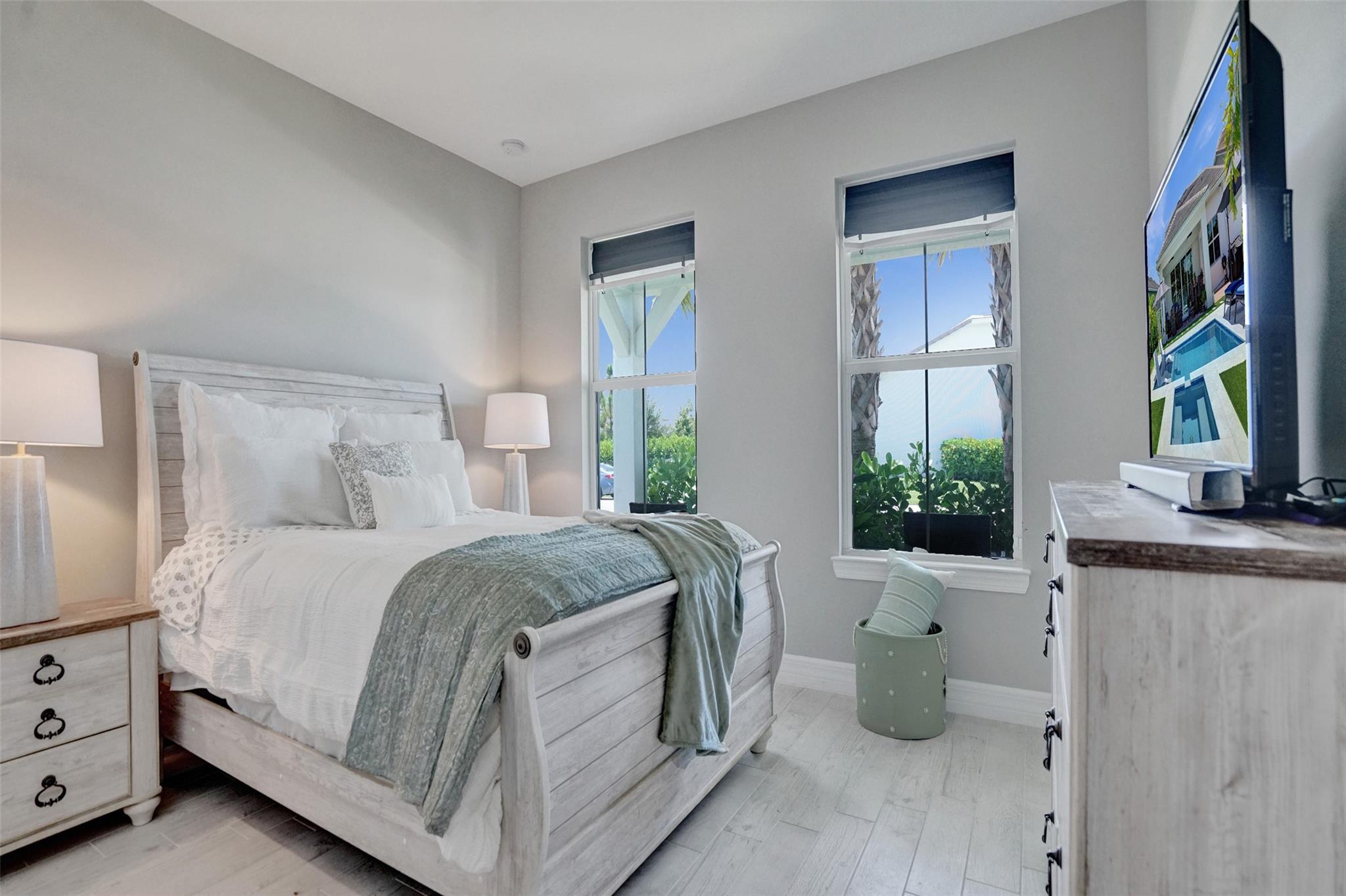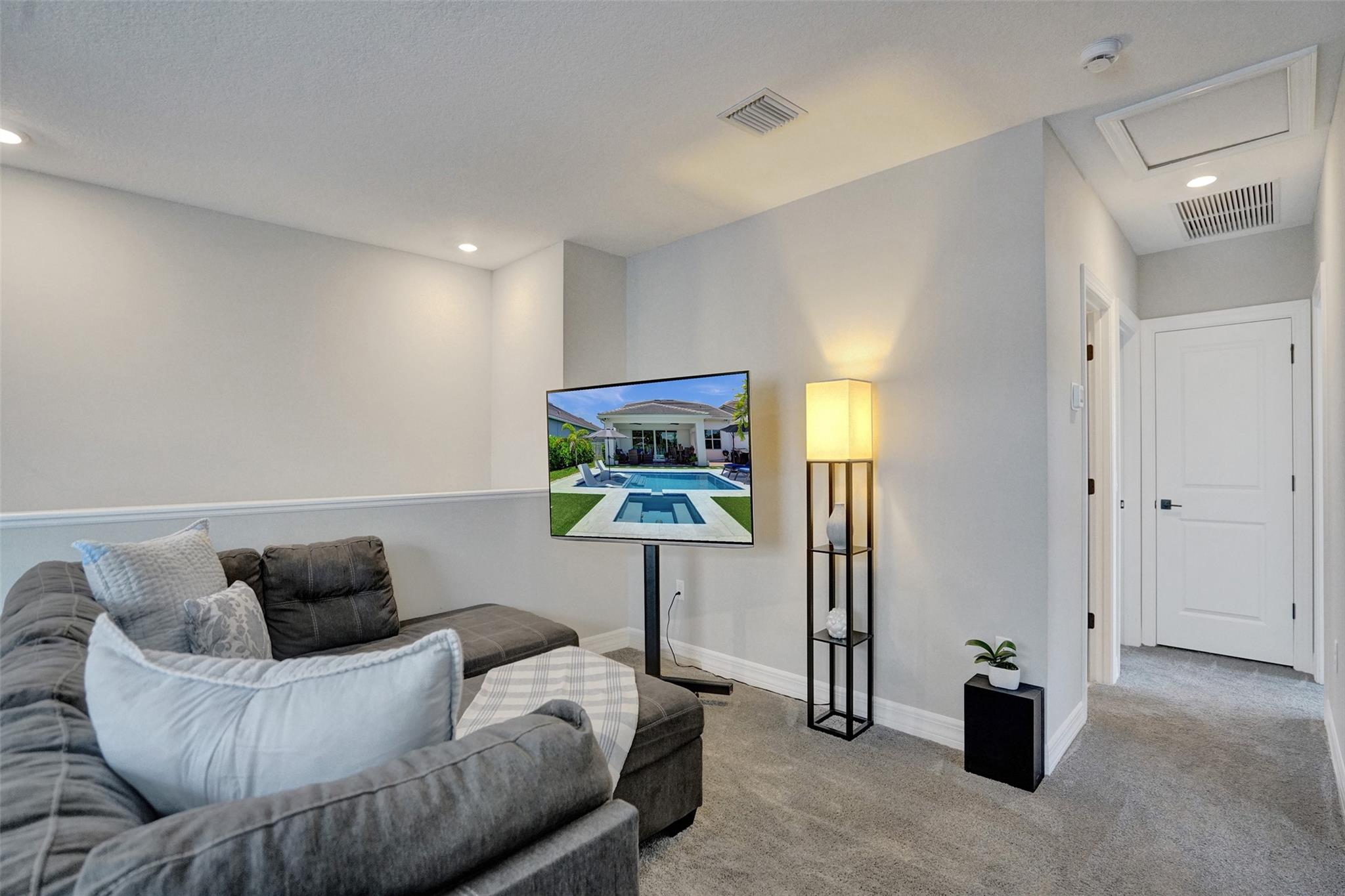 Wow! Better than new in this stunning 5 bedrooms (primary and another down) and 4 full baths (2 of the bedroom are en suites (two are upstairs and two down) check out the virtual tour, just shy of 3,000 sq feet and a large loft on the second floor. Get all the upgrades and a brand new pool and spa with sun shelf, artificial turf, palm trees, fence and expanded patio, beautiful lighting fixtures and fans, custom closet and pantry organization system, LG washer and dryer. The floors on the main living areas are upgraded and bright white kitchen with a beautiful neutral back splash and quartz counter top and gas cooking is a chef's dream. Impact windows and doors. Priced less than the builders and all the upgrades and pool. Gated community with low HOA, community pool and Pickle ball.