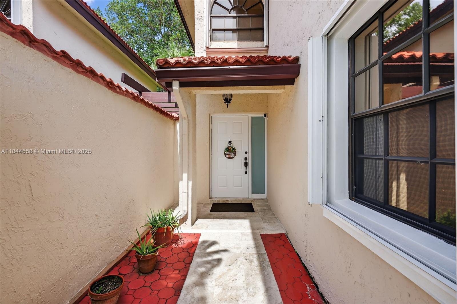 Renovated 3 bed, 3 bath fee simple townhome in gated community Lakeview Courts @ Jacaranda. Bright, open layout with porcelain tile on main floor. One bedroom with full bath downstairs. Updated kitchen features white cabinetry, quartz countertops/backsplash, and pantry. Upstairs has two bedrooms with ensuite baths and laminate flooring. All bathrooms are fully remodeled. AC unit installed (Dec. 2021). Newer washer/dryer. Neutral paint colors. Impeccably maintained. Accordion shutters. Enjoy the privacy of a large greenspace behind the home w/ no rear neighbors. Community pool. HOA fee includes roof. 2 assigned parking spaces.