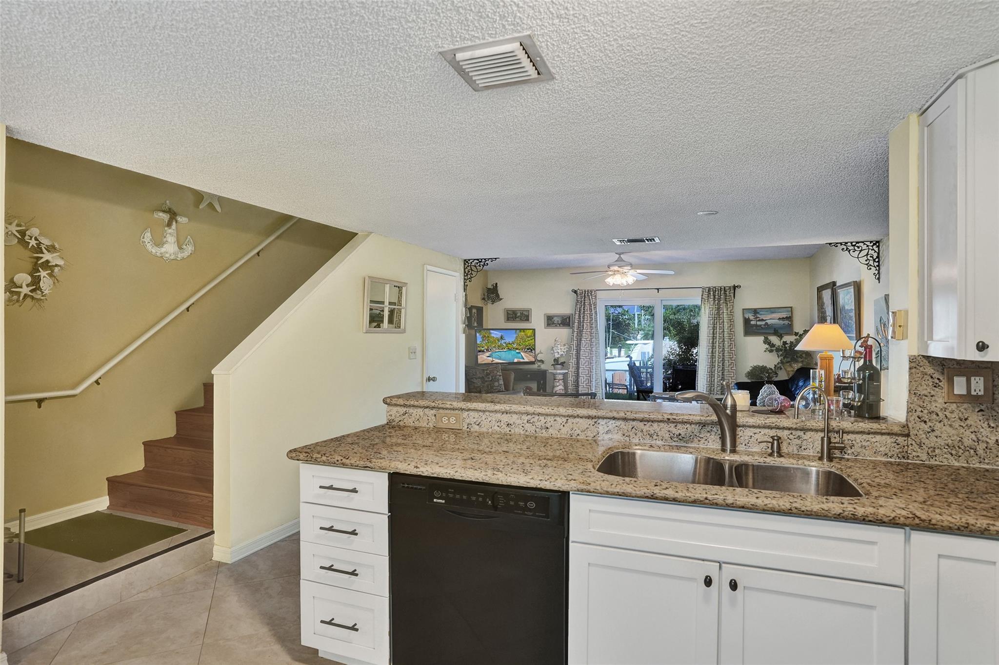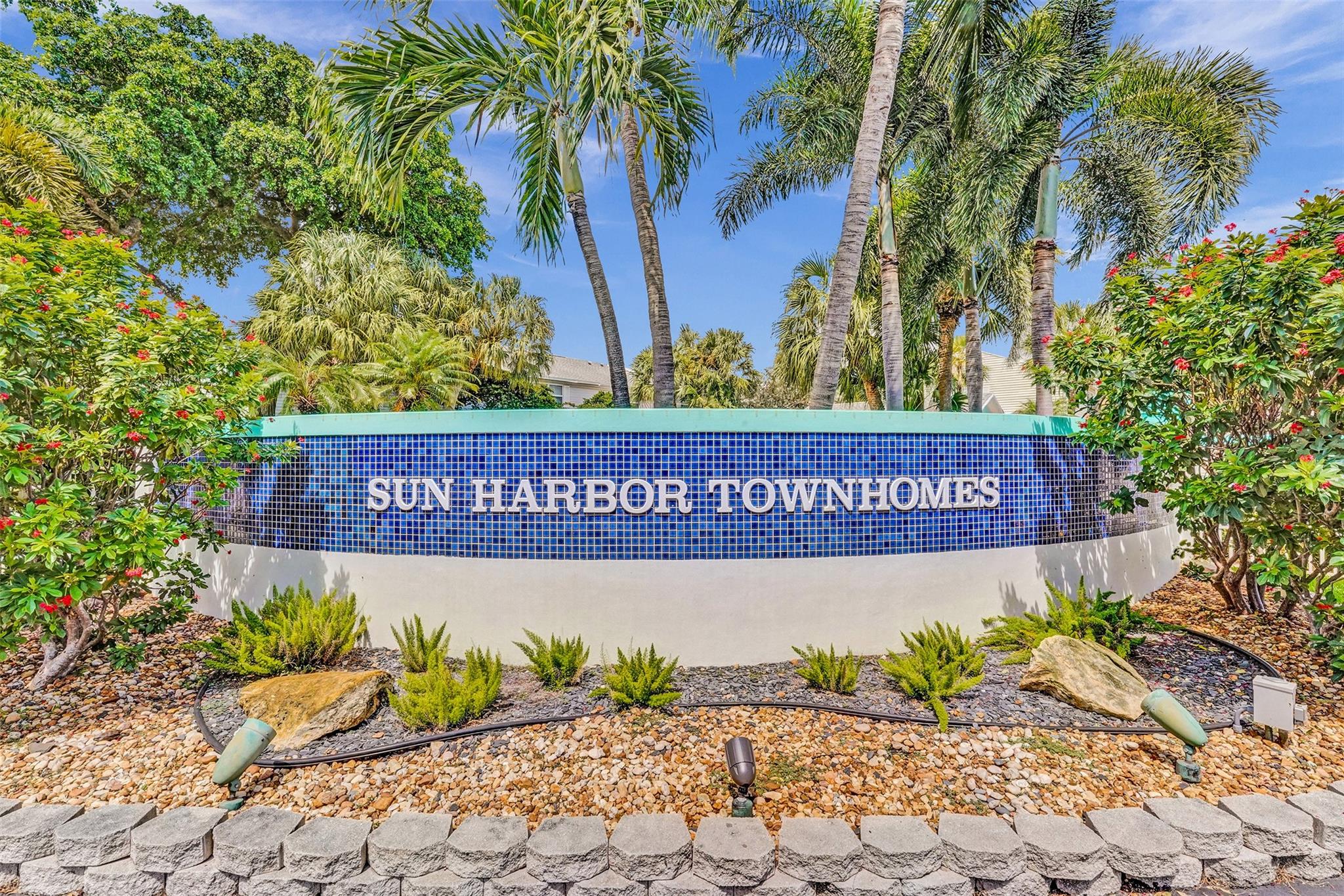 Price lowered for a quick sale. Can be rented right away. Relax on your patio enjoying the beautiful water view while boats slowly cruise on by in this remodeled 2 bedroom, 2.5 bath townhouse in sought after "Sun Harbor Townhomes" East of US1 walking/biking distance to beach and restaurants in Pompano Beach! Home Features ALL HIGH-IMPACT GLASS WINDOWS & DOORS, UPDATED KITCHEN with white cabinets and granite countertops, beautiful large porcelain tile floors diagonally laid, remodelled bathrooms, Laminate wood on stairs & second floor (no carpet), full size washer/dryer upstairs. Low HOA includes water, trash, community pool, lawn service/tree trim, security guard.