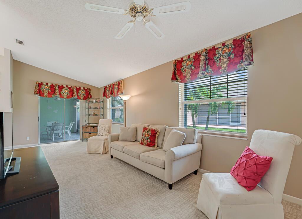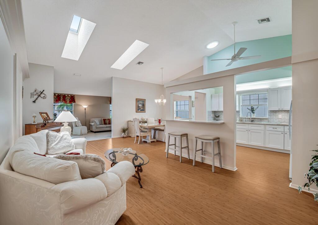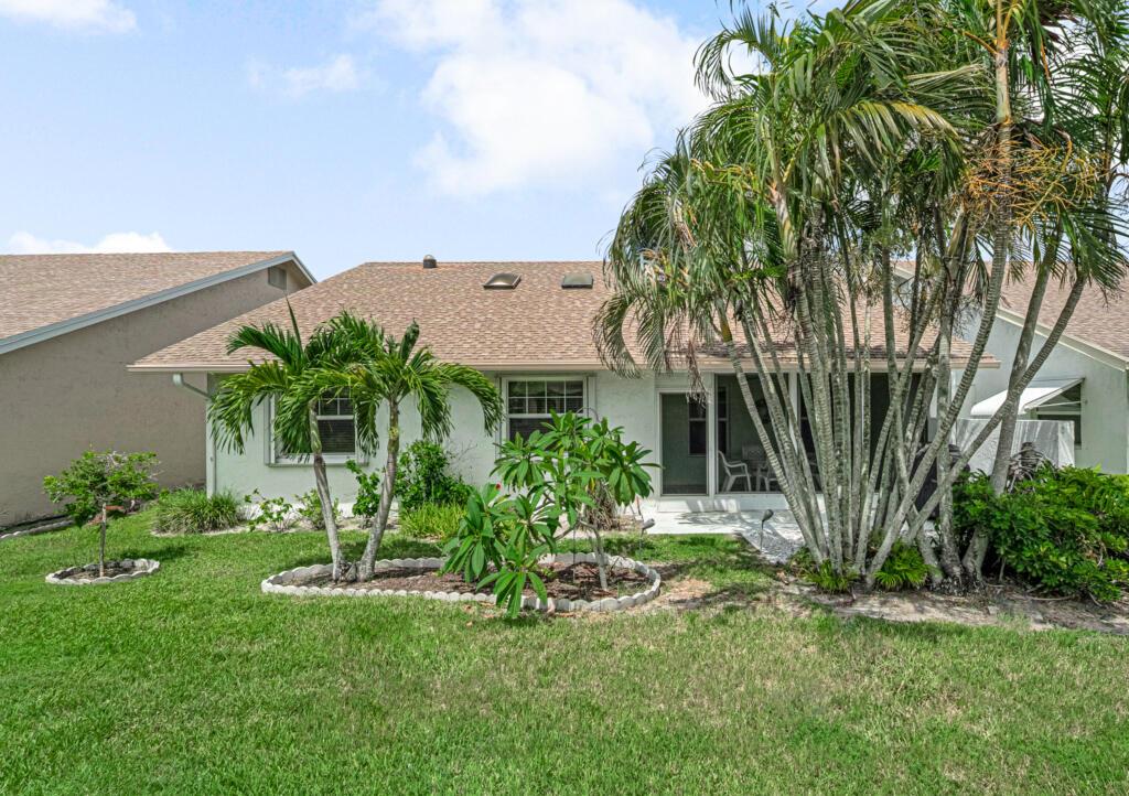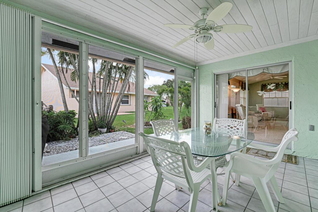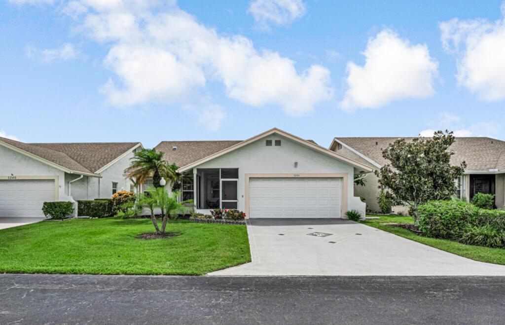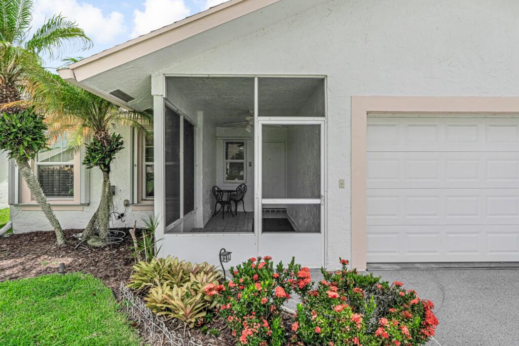 NO MEMBERSHIP TO PLAY GOLF!l lovely, well-maintained 2 BR, 2 full bath , 2 car garage home in the very desirable gated community of Cypress Lakes. Filled with natural light through energy-efficient double-paned windows and sky lights, this home also offers outdoor living with 2 screened patios surrounded by tropical landscaping. Easy-care laminate flooring graces the tastefully updated kitchen, great room, living room and hallways. Note: New AC in 2023, newer washer/dryer, 2017 solar tube replacement, new ROOF in 2005 and accordion shutters. Stroll around the scenic lake, play a morning round of 18 holes, take a refreshing dip in the swimming pool, work out at the fitness center, join a game of pickleball or tennis, or check out the activities at the clubhouse. Welcome home