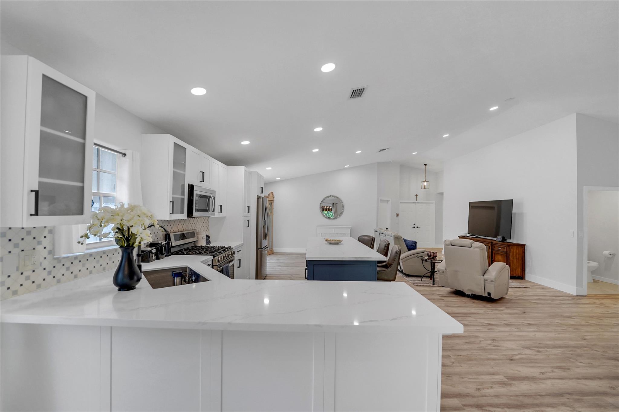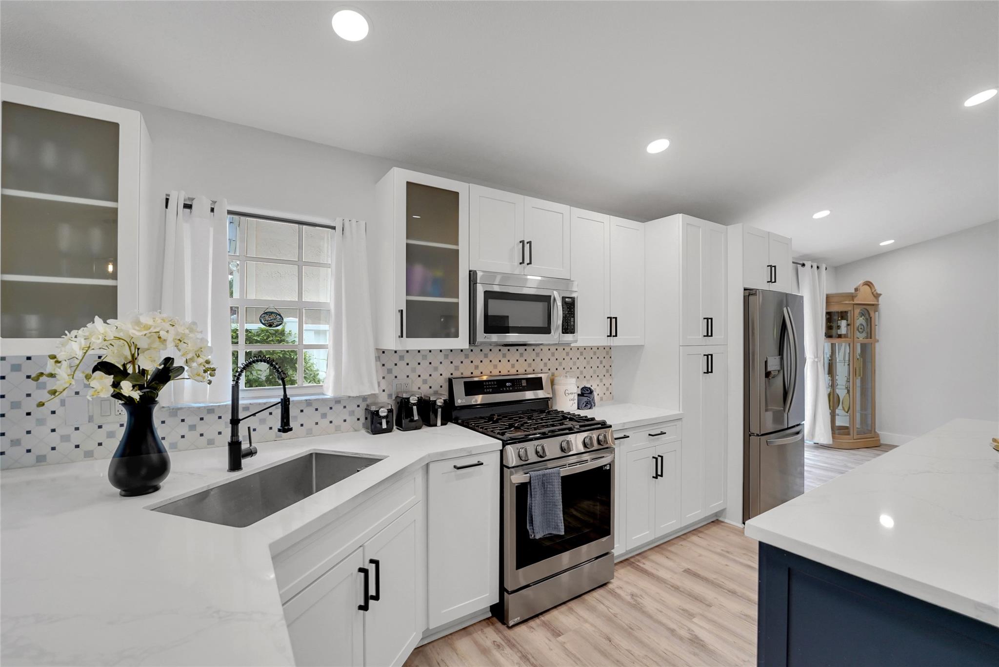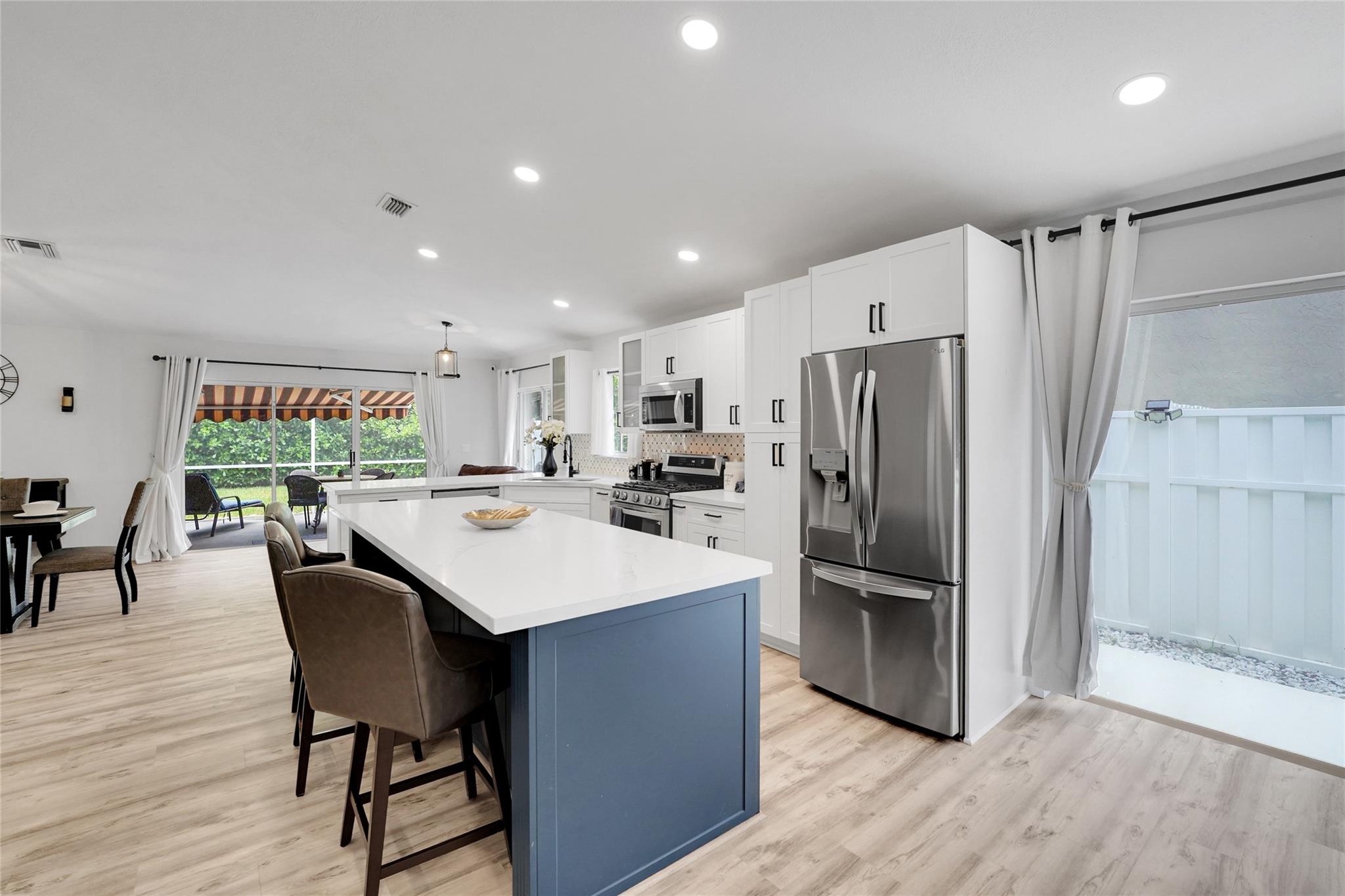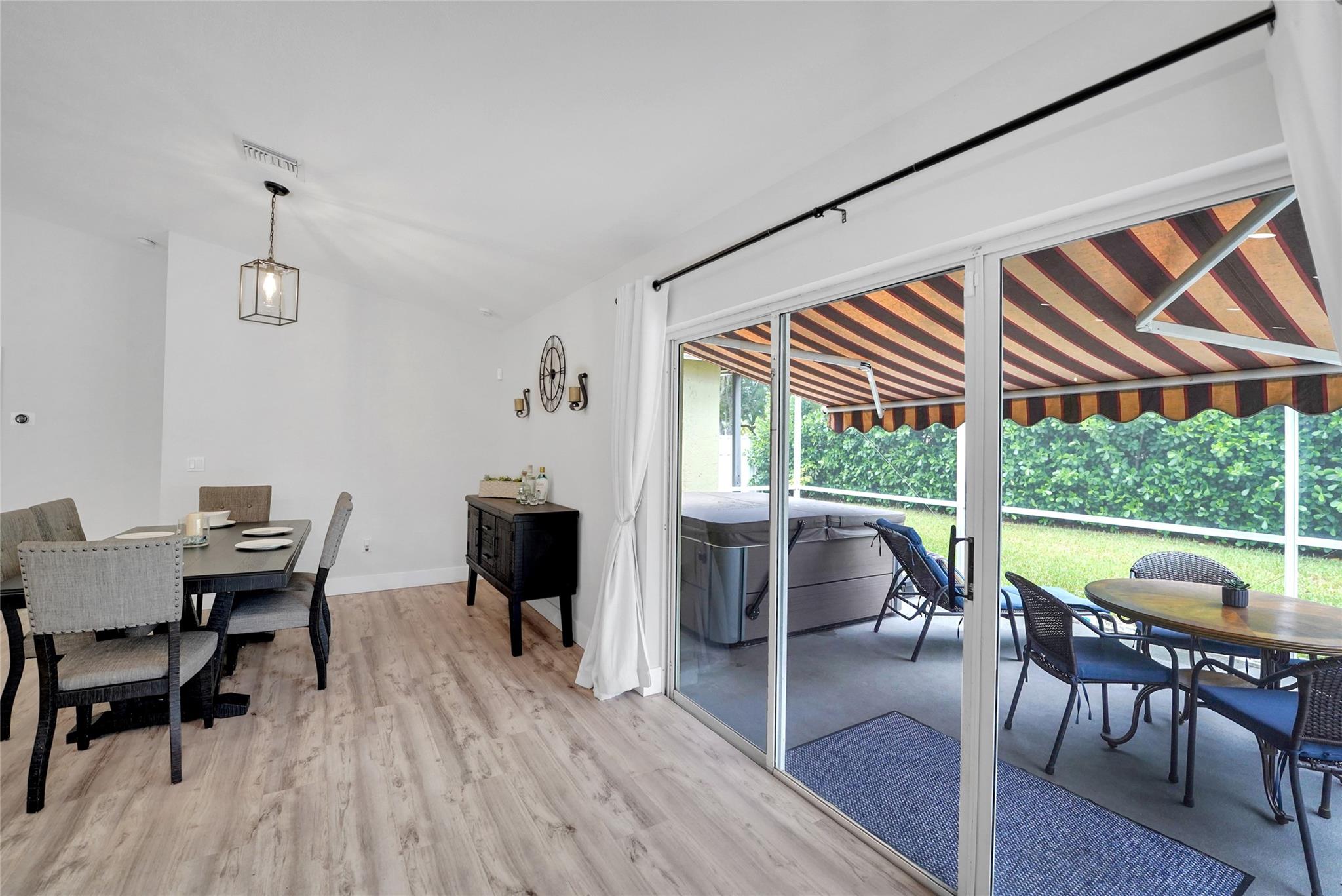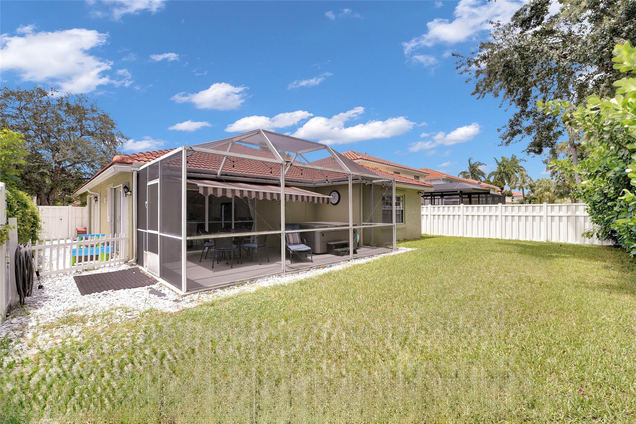 Welcome to Sawgrass Plantation! Step into this beautifully redesigned and spacious one-story home featuring 3 bedrooms and 2.5 baths in a highly desirable community. This tastefully updated residence offers a new roof, vaulted ceilings, and open-concept layout with a modern kitchen featuring quartz countertops and stainless steel appliances. Enjoy new wood laminate flooring throughout, gorgeous master bathroom, and extra-large 3rd bedroom that includes a built-in Murphy bed, perfect for guests, a home office, or multi-use space. Step outside to your fully fenced backyard with a screened-in patio and private jacuzzi, ideal spot to relax or entertain. Move-in-ready home has it all—style, flexibility, & peace of mind. Centrally located near Schools, Shopping Centers, Restaurants and Highways.
