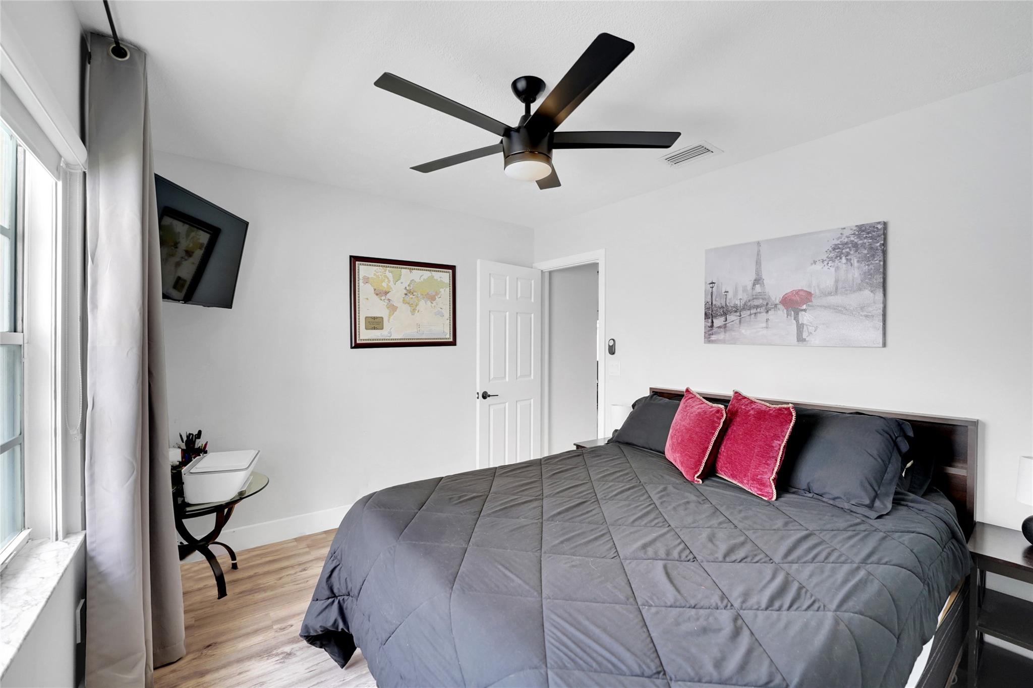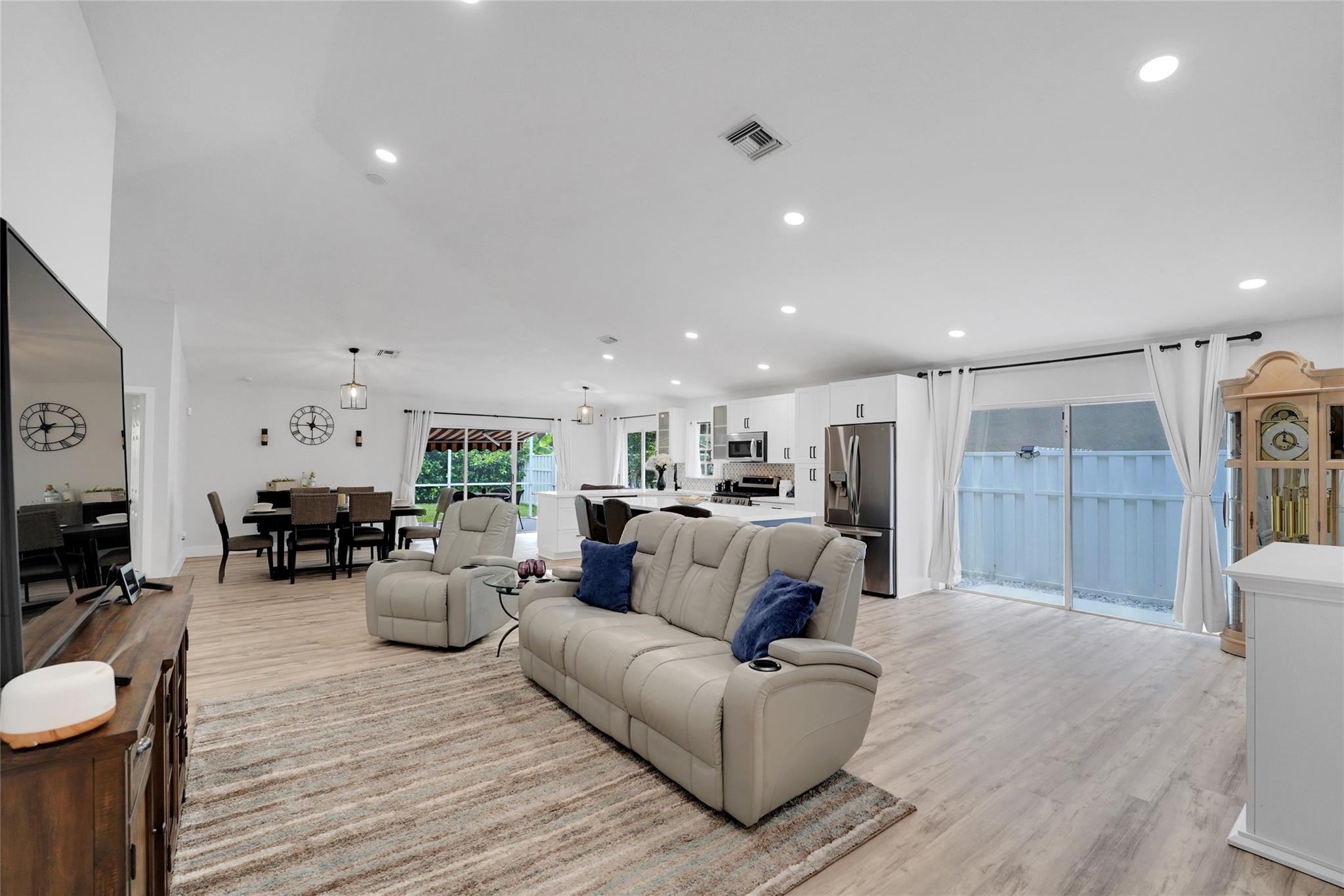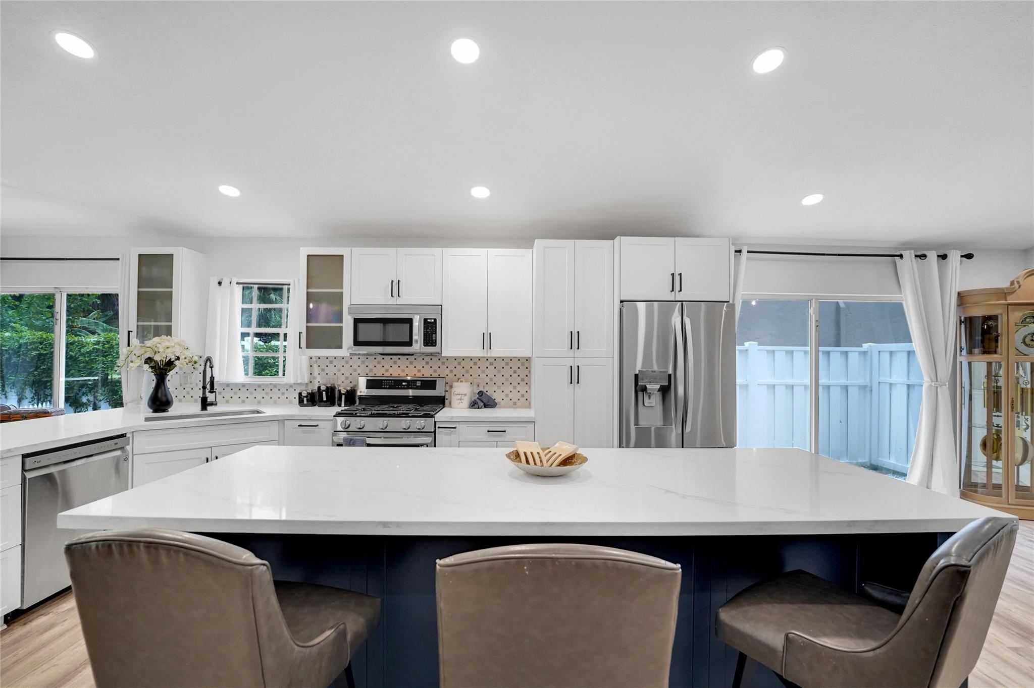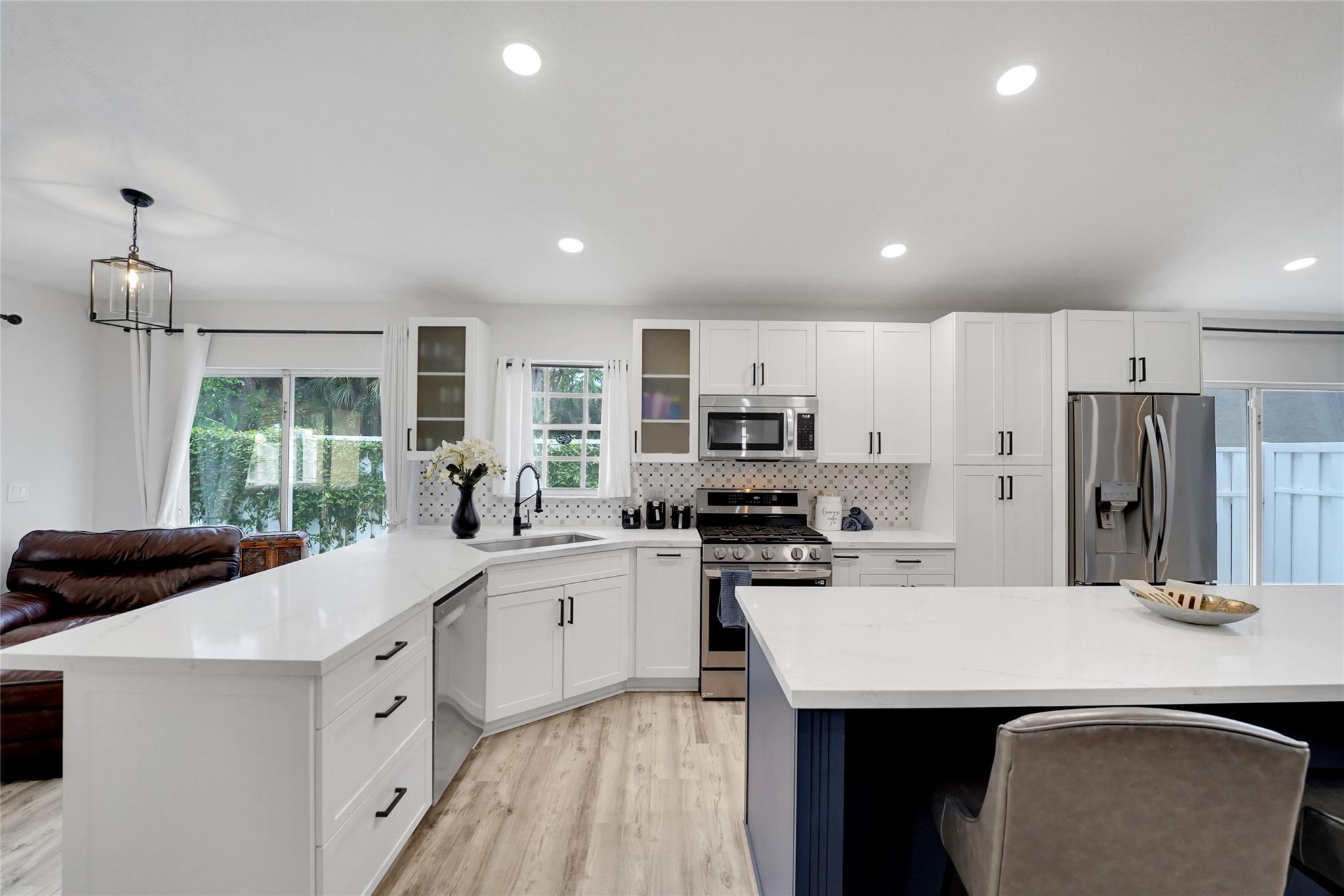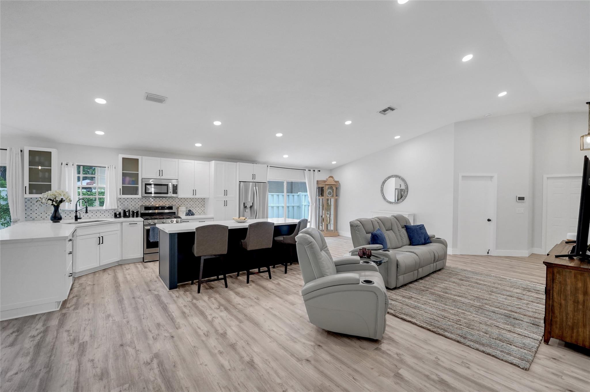 Welcome to Sawgrass Plantation! Step into this beautifully redesigned and spacious one-story home featuring 3 bedrooms and 2.5 baths in a highly desirable community. This tastefully updated residence offers a new roof, vaulted ceilings, and open-concept layout with a modern kitchen featuring quartz countertops and stainless steel appliances. Enjoy new wood laminate flooring throughout, gorgeous master bathroom, and extra-large 3rd bedroom that includes a built-in Murphy bed, perfect for guests, a home office, or multi-use space. Step outside to your fully fenced backyard with a screened-in patio and private jacuzzi, ideal spot to relax or entertain. Move-in-ready home has it all—style, flexibility, & peace of mind. Centrally located near Schools, Shopping Centers, Restaurants and Highways.