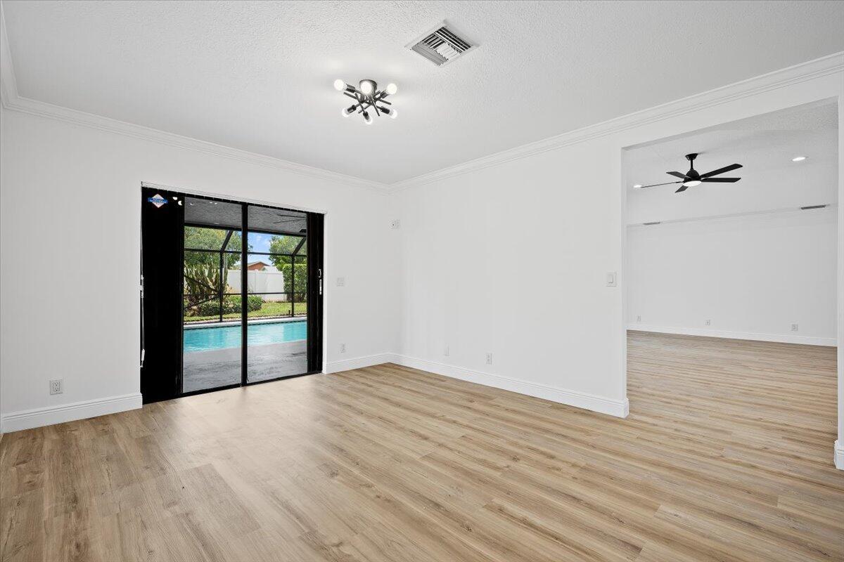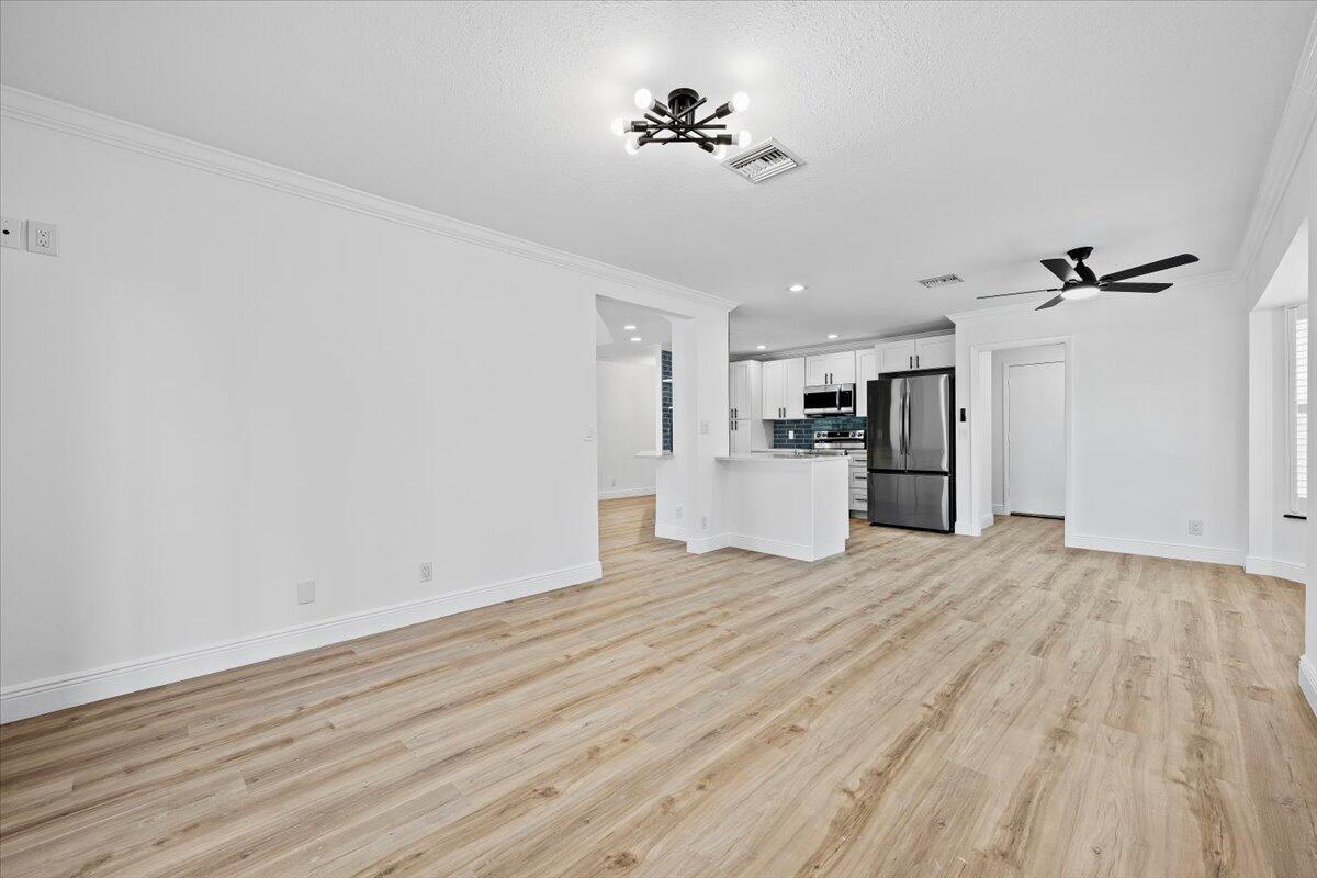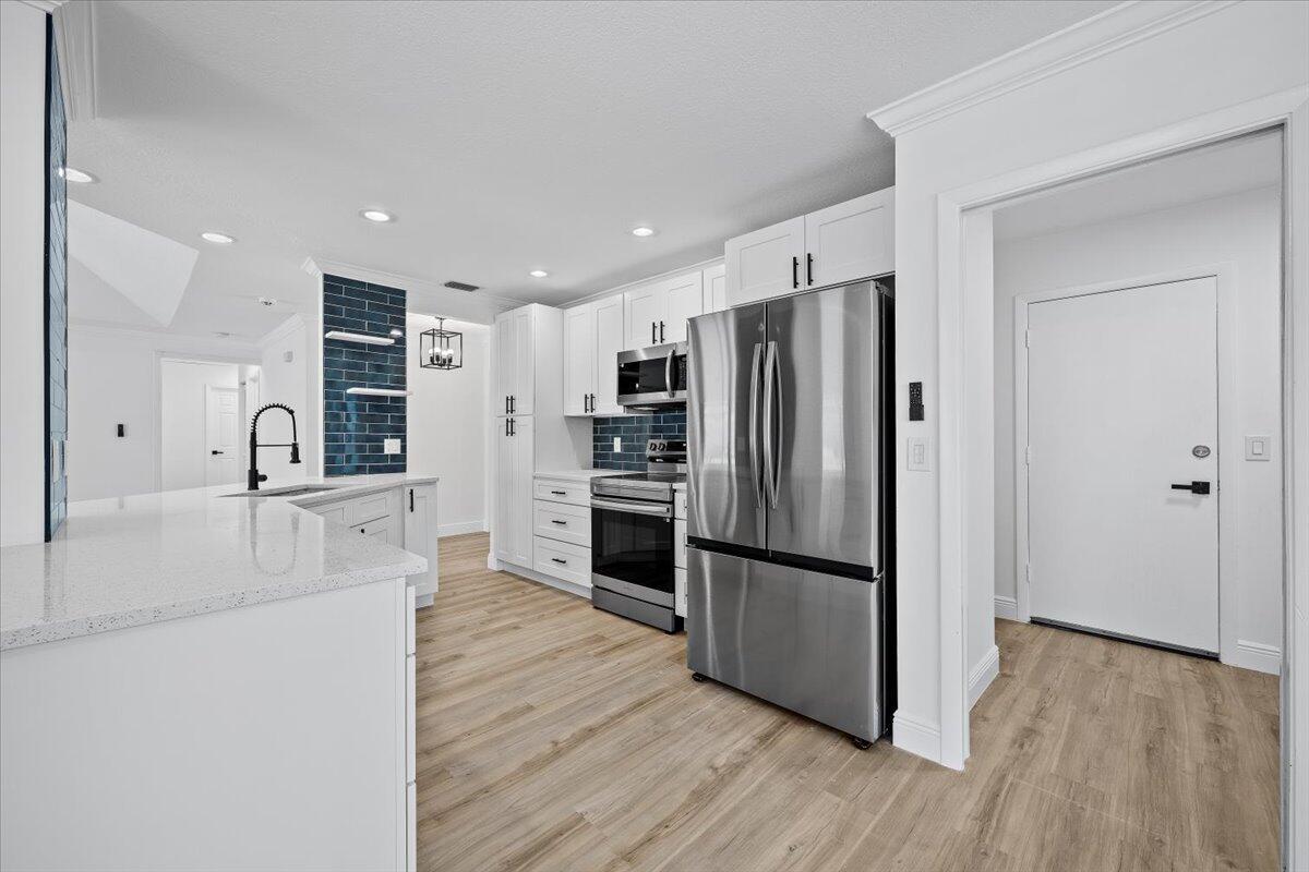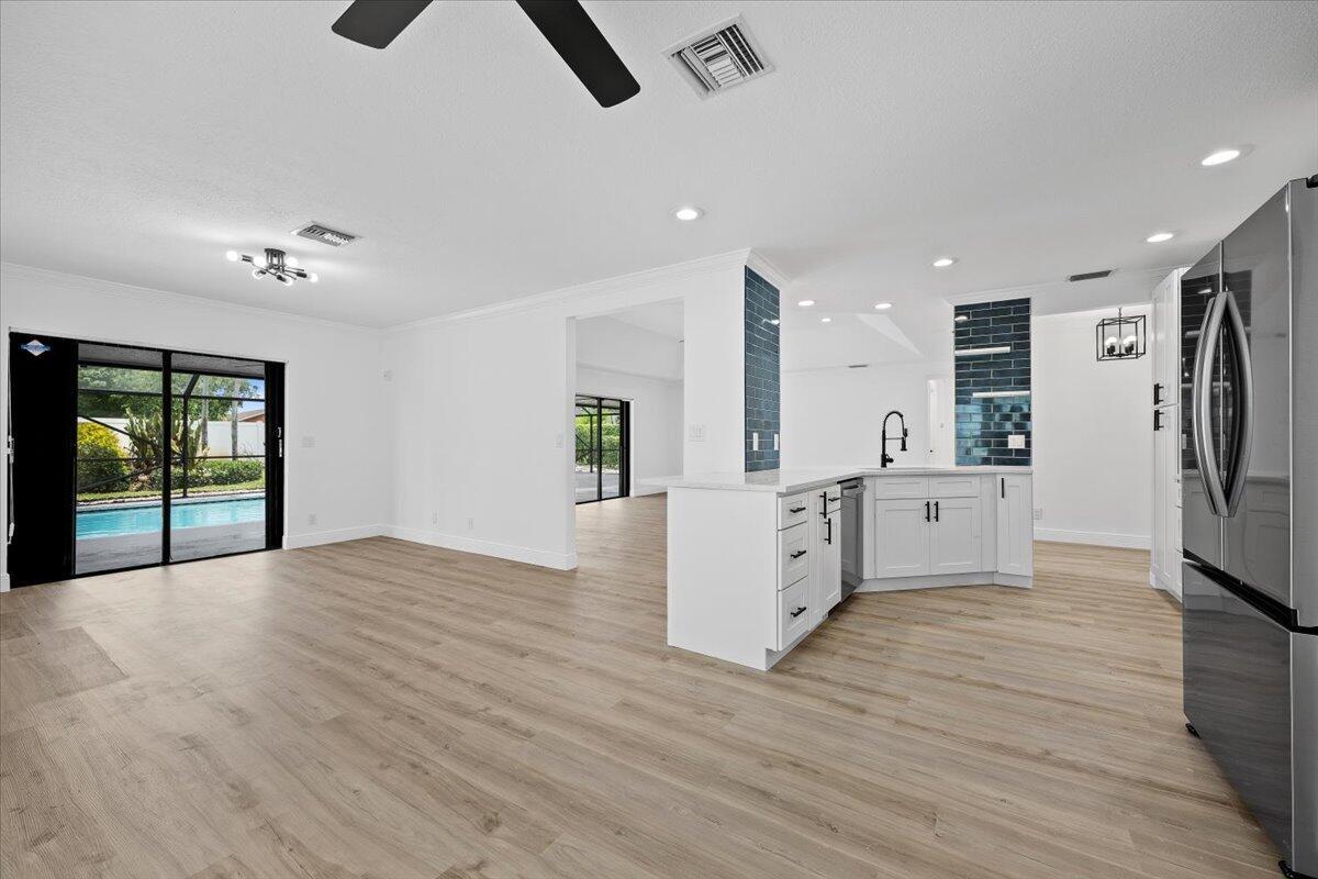 Welcome to this beautifully updated 3-bedroom, 2-bath pool home tucked away on a quiet cul-de-sac in the heart of Lake Worth. Step inside to discover an open and airy floor plan with brand new luxury vinyl wood flooring throughout and fresh interior and exterior paint that gives the home a crisp, modern feel.The chef's kitchen is a showstopper, featuring sleek quartz countertops, custom tile backsplash, new stainless steel appliances, and ample cabinetry--perfect for entertaining or daily living. Both bathrooms are tastefully updated, and the entire home is equipped with impact windows and doors for peace of mind and energy efficiency.Step outside to your private tropical oasis, complete with a screened-in pool enclosure, freshly landscaped yard, and plenty of room t