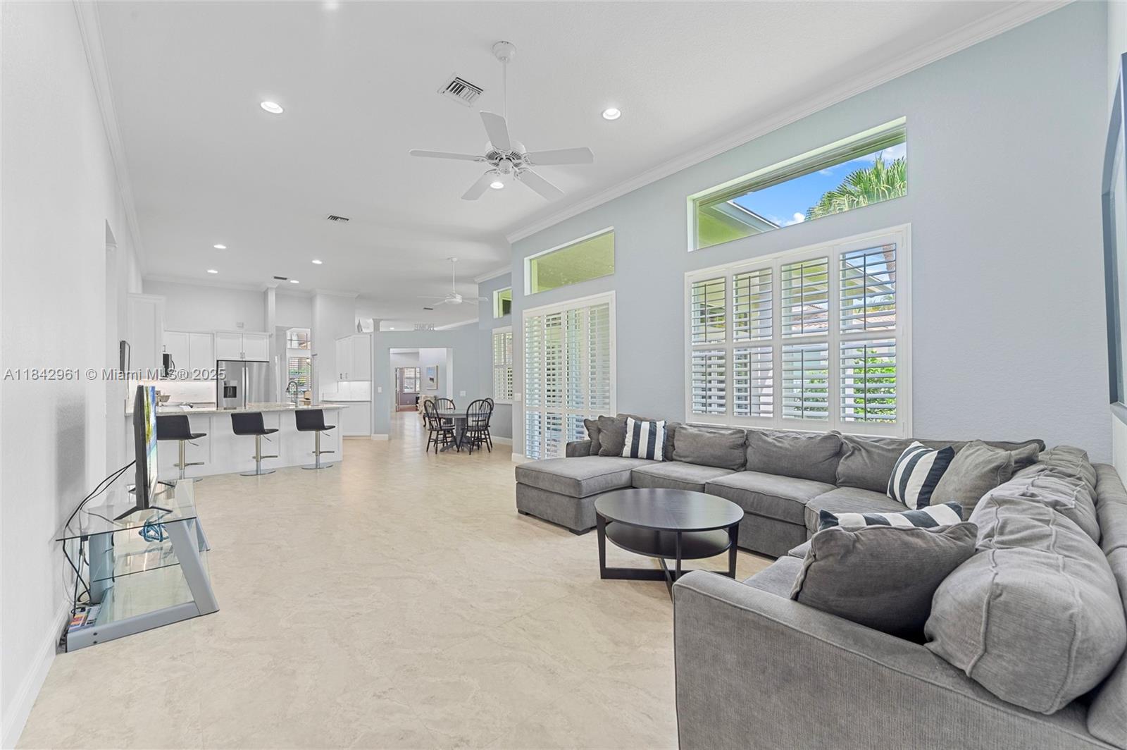 Nestled on a royal-palm cul-de-sac in gated Weston Hills Country Club, this fully renovated 4-bed and den, 3.5-bath single-story residence lives like new. A 2024 flat-tile roof, 2 new 2025 HVAC, and fresh landscaping deliver true turnkey ease. Italian tile stretches through open living areas while warm wood floors enrich each bedroom. The chef’s kitchen shines with quartz counters, stainless appliances, an island, and sleek cabinetry. All baths are updated; the primary suite spoils with a sitting area, dual walk-in closets, and a spa-inspired bath. A fully hedged backyard grants total privacy and room to design your dream pool or play space. Stroll to Hunter’s Pointe Park Weston Hills’ only soccer field, plus basketball court and playground just minutes away.