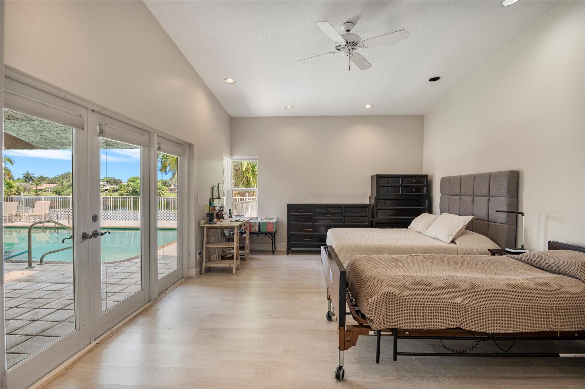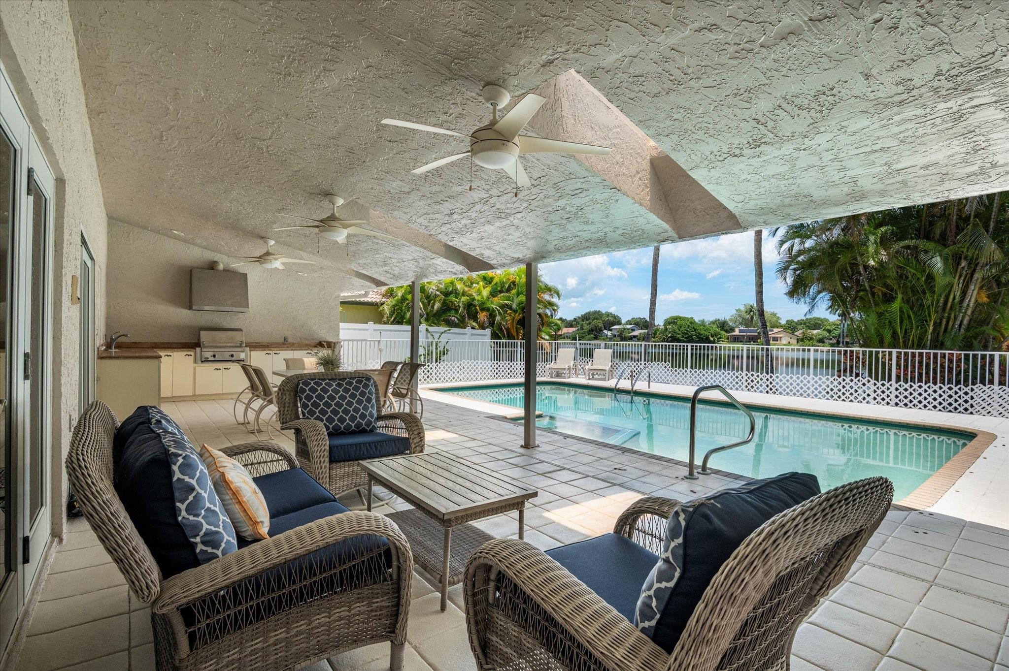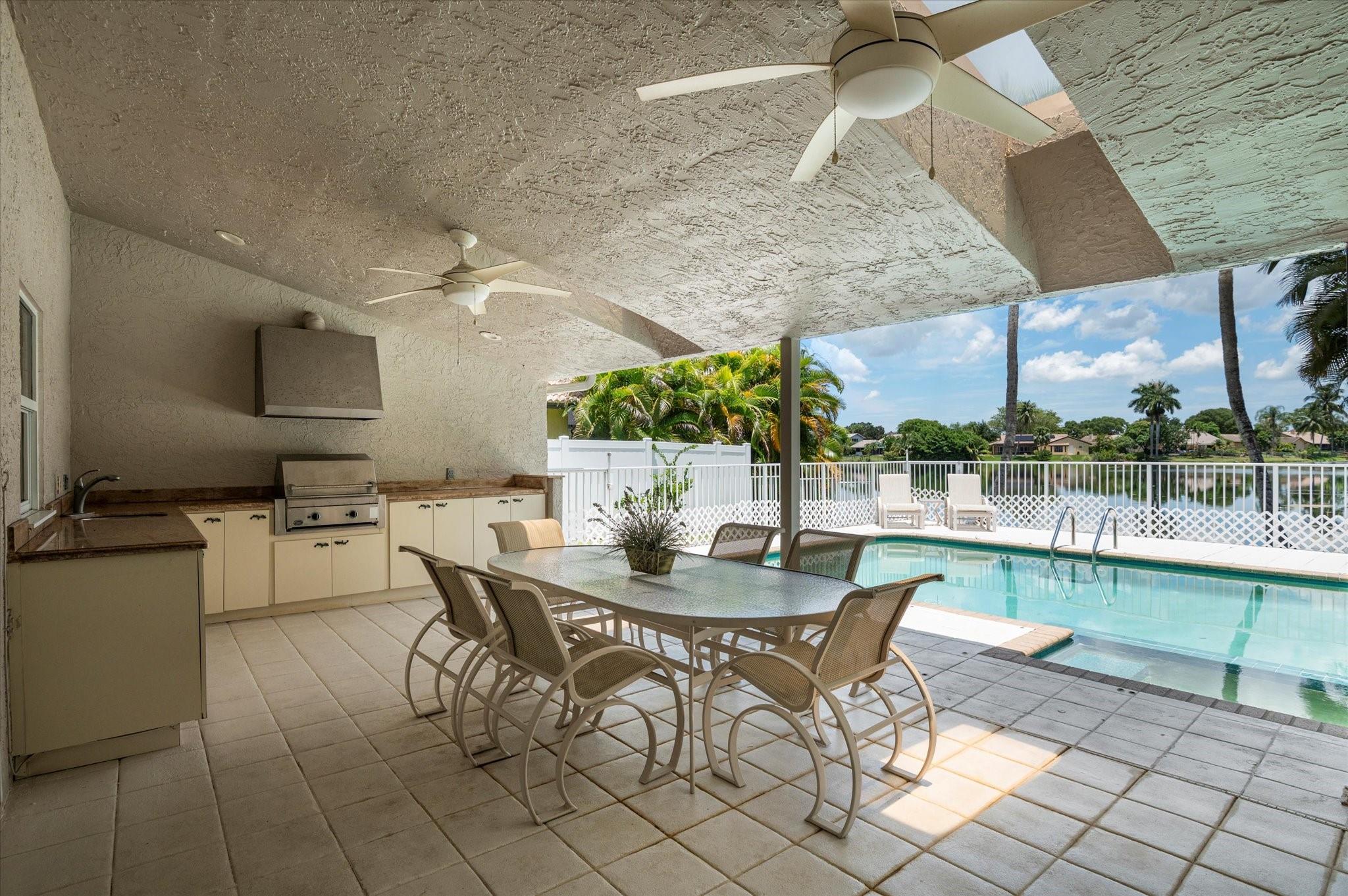 Significant price reduction to sell now on this one-of-a-kind pool/lakefront home-unlike any other in Jacaranda Lakes! Offering 4 bedrooms, 3 baths, & 2,593 sq ft under air, this custom residence showcases beautiful pool & lake views from all rooms across the entire back of the home. Enjoy an airy open layout with vaulted & volume ceilings, skylights & a striking coral rock two-way fireplace (closed). The kitchen impresses with a large island, plus a peninsula w/added seating & storage, double oven & quartz countertops throughout. Other highlights include a 2-zone A/C system (4/2020 & 11/2022), & a converted garage offering a versatile A/C-cooled flex room—ideal for pantry, art/wine storage, plus an additional storage room with space for 1-car parking. Barrel tile roof replaced in 2021!