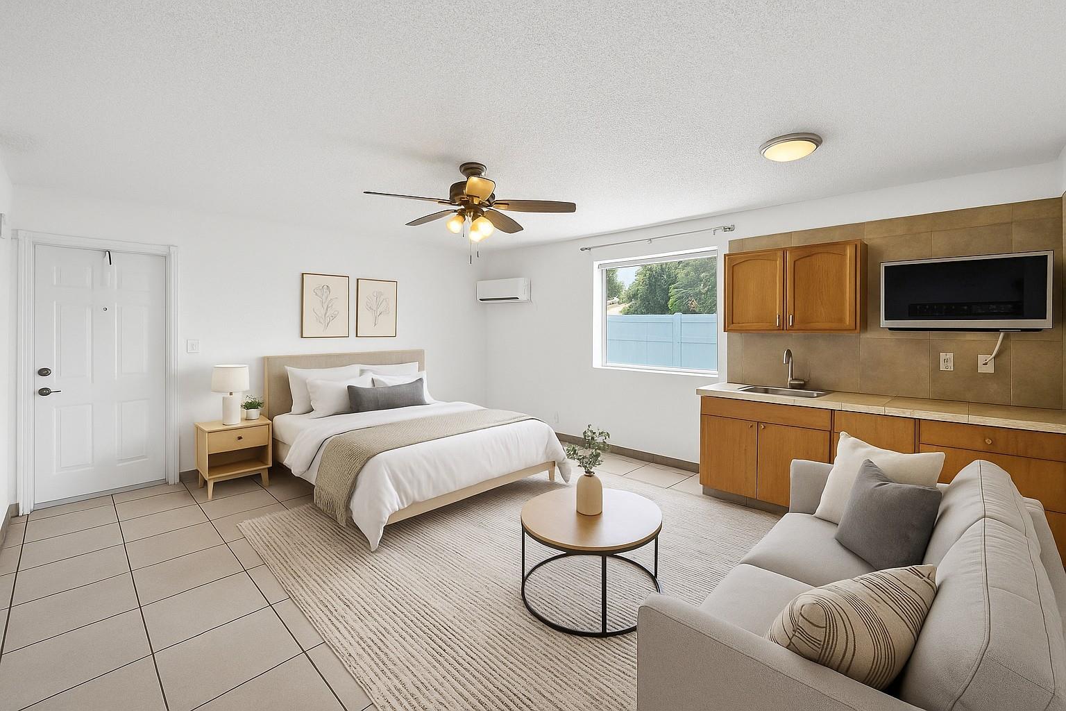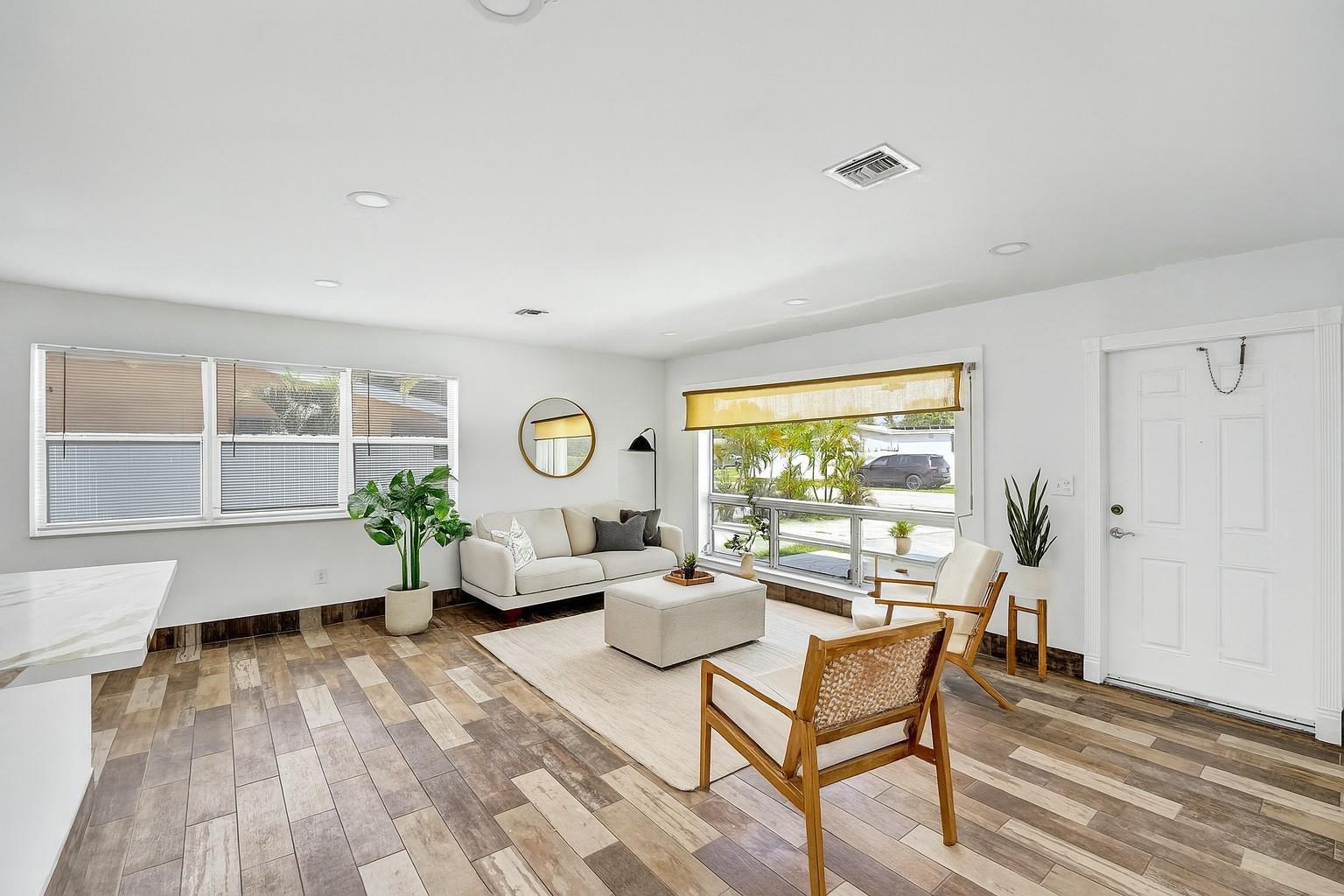Step into this fully remodeled 4-bed, 3-bath Hollywood gem with an attached EFFICIENCY - with Appliances-Full Bathroom - Private Yard, NEW MINI SPLIT, can serve as a private primary suite, home office, or rental income source. Enjoy peace of mind with FULL HURRICANE PROTECTION, a NEW ROOF, NEW APPLIANCES, NEW HOT WATER HEATER, NEW BATHROOMS, FRESHLY PAINTED inside/out. The stunning NEW Quartz Countertop kitchen flows into a large laundry room and pantry. Tile floors throughout with Vinyl in the primary bedroom add a modern touch. The fenced backyard is perfect for relaxing or entertaining. Circular Driveway fits 4+ cars. This turnkey home blends style, comfort, and location—just minutes from major highways, The Hard Rock, beaches, shopping, and dining! No HOA! (3/2 main-1/1 efficiency)