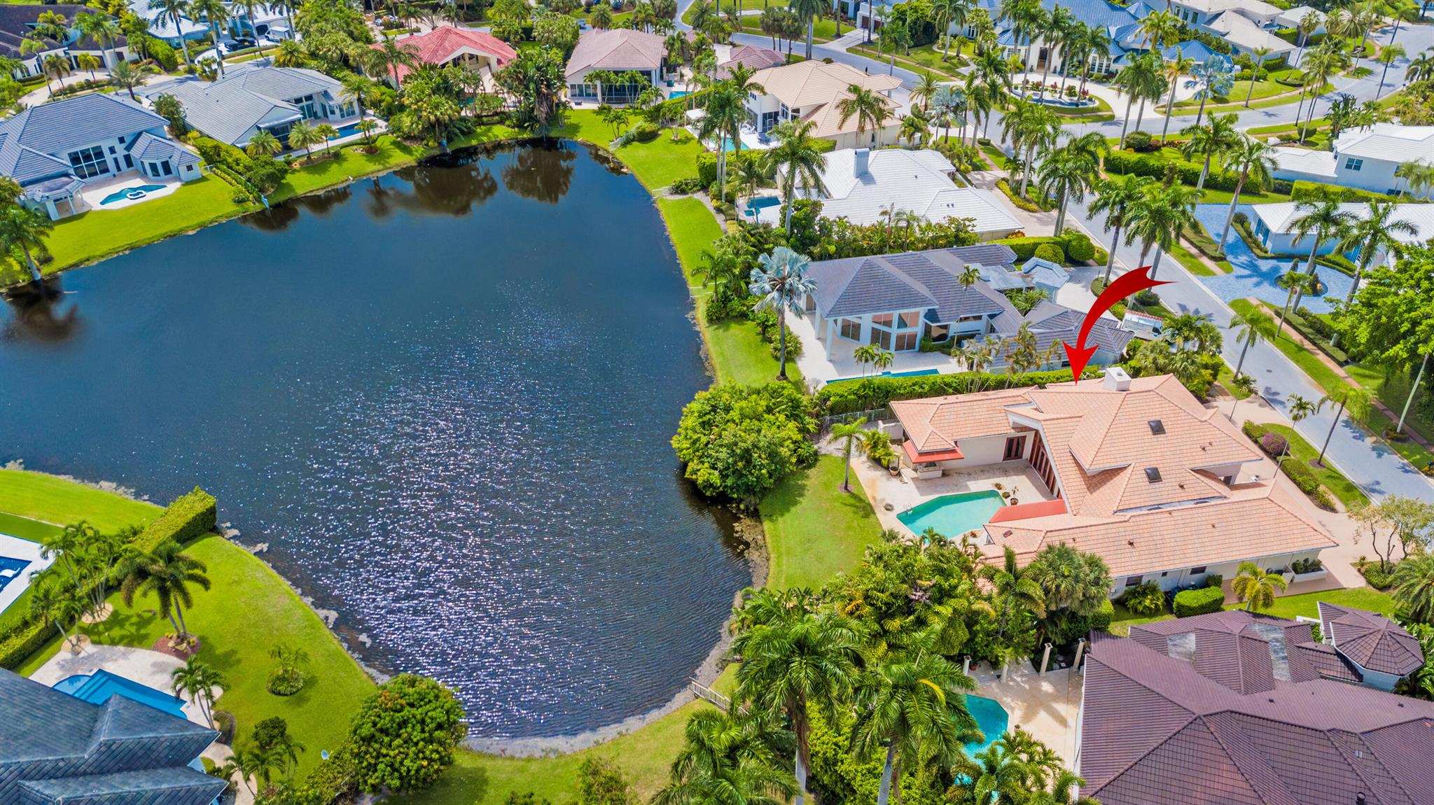 Incredible one story, 4 bedroom, 4.1 bathroom estate located on a stunning, private lakefront homesite. An open great room concept with large kitchen that opens to screened in loggia overlooking open pool, all with panoramic lake view. Primary suite with views of pool and lake has three walk in closets. Large paneled office/club room has full bath and closet that can be used as an additional bedroom. Two large en suite guest bedrooms and an office on the other side of house. Two car plus golf cart garage and circular driveway complete this estate.