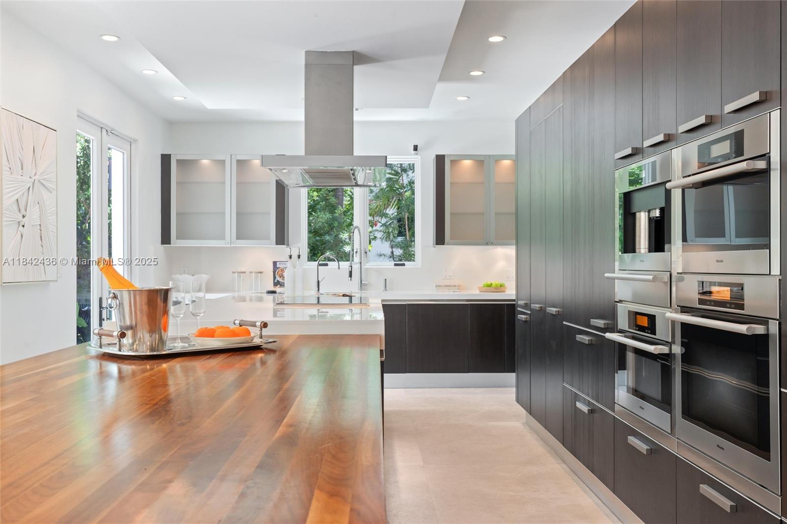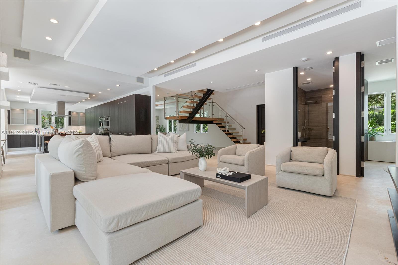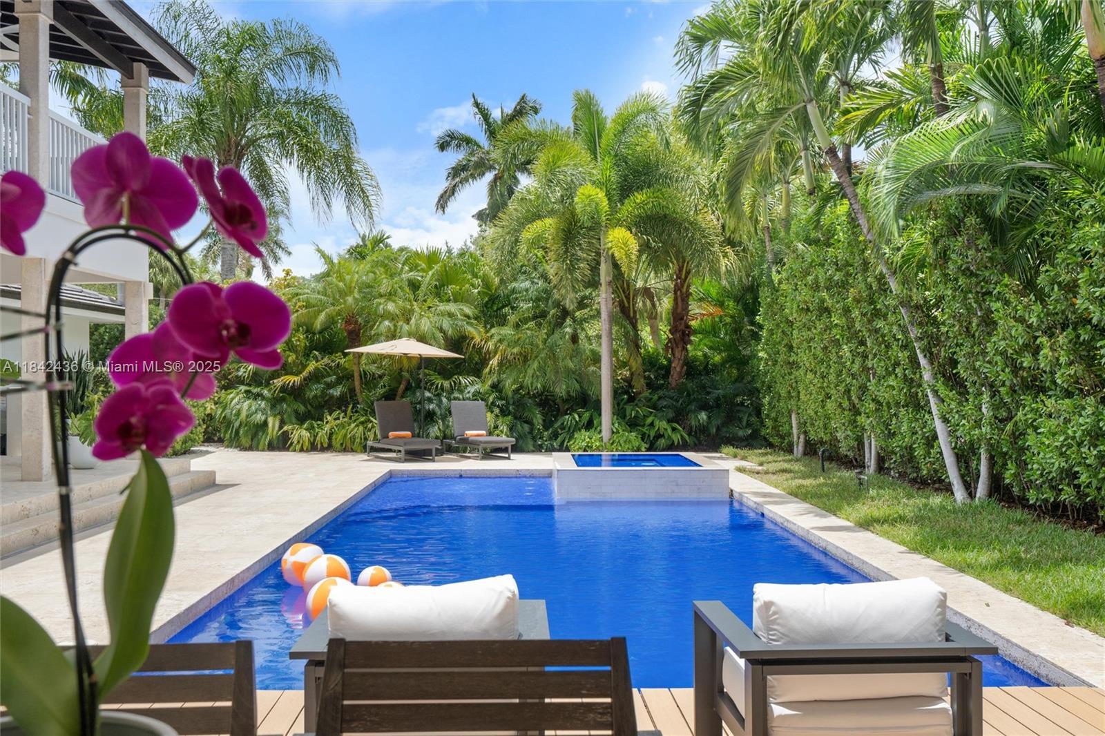 Chic, contemporary, recently renovated residence in the heart of Coral Gables. This home is nestled on a spacious, fenced & gated 11,000 SF oversized lot, adorned with towering oak trees and lush landscaping. Boasting sun-drenched interiors, high ceilings, & an open custom Snaidero kitchen with coffee bar, wine cooler, & Miele and Wolf appliances. Great layout with 3 bedrooms upstairs and 1 downstairs, all with ensuite bathrooms. Perfect for entertaining, enjoy an ultra-private backyard with resort-style pool, jacuzzi, cabana bathroom, & covered gazebo with summer kitchen for Al Fresco dining. Plenty of parking & 2-car garage with projector and golf simulator. Close to top public & private schools: Sunset Elementary, Gulliver, St. Thomas Episcopal, & Ransom Everglades. NOT IN FLOOD ZONE!