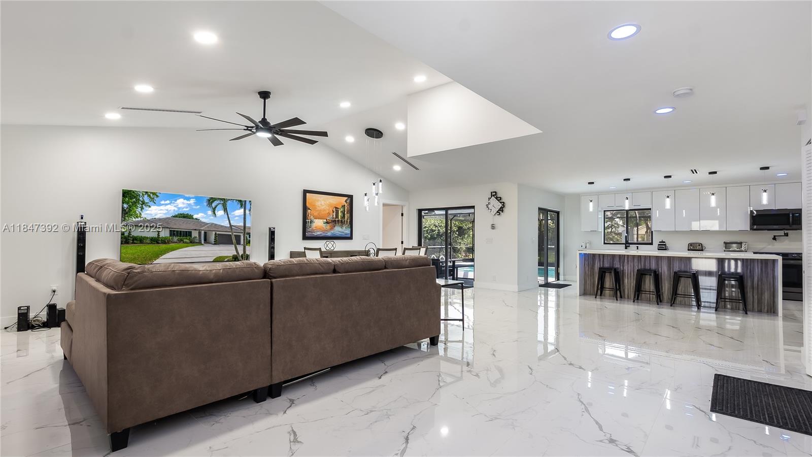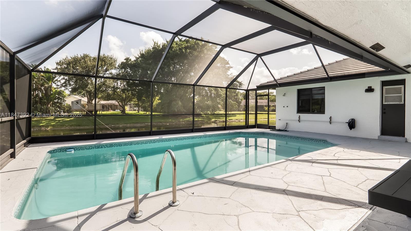 3003 total square feet modern waterfront pool home in Coral Springs. No Hoa, no flood insurance, only 2 previous owners, and nearby cul de sac within Cypress Glen. All upgrades recently performed with permits including 24x48 porcelain tiles throughout (2024), LED lights (2024), tile roof (2023), tinted impact windows (2024), black stainless steel appliances (2024), and custom high gloss acrylic kitchen cabinetry (2024); featuring a nearly 10 foot island with a center wine cooler. For the exterior, a new concrete driveway and resurfaced pool with an outdoor shower and kitchen area (2025). This home is partially staged. The current furniture and televisions are available for sale. Multiple walk-in closets and more storage spaces. Come easily see this house for yourself and make it your home.