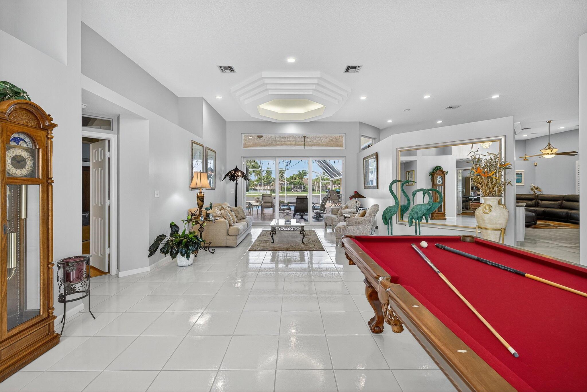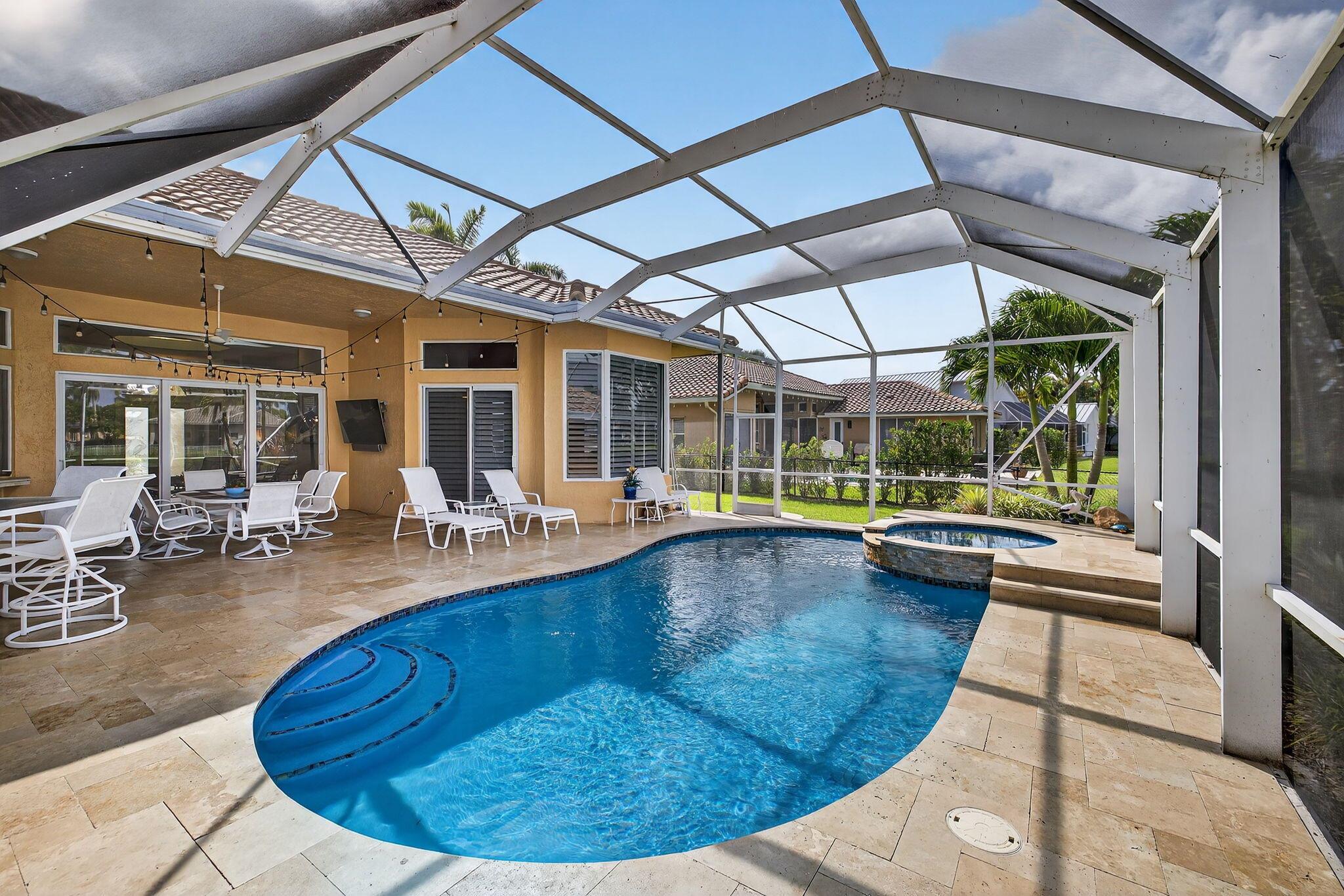 Great Opportunity if looking for a fantastic home with an amazing water view. This 5 bderoom 3.5 bath home with pool/spa and 3 car garage has it all! The primary bedroom has an amazing view of pool and water. There are double walk in closets. Huge bathroom with dual sinks and separate tub and shower. This split floor plan offers 1 bedroom/office by the primary and 3 bedrooms on the otherside of the home. 2 bedrooms share a bathroom and also acts as a cabana bath. The 3rd bedroom has its own full bathroom. There are custom plantation shutters through most of the home. The roof was replaced 2015, pool ans spa and patio refinished 2018, poolheater and salt water pump replaced 2023, gutters installed 2018. The front doors are custom and all impact windows were done 2017. see additonal ...