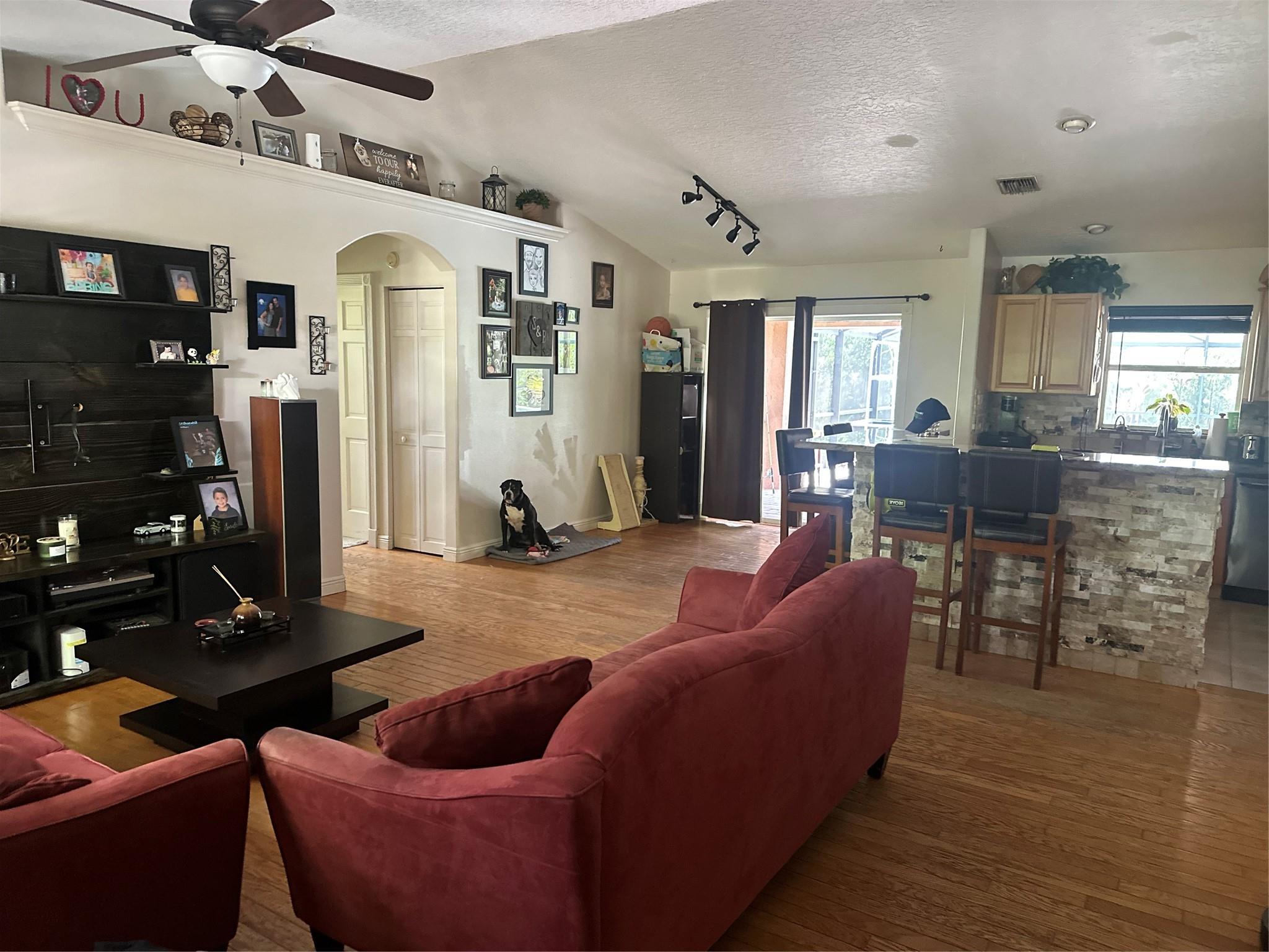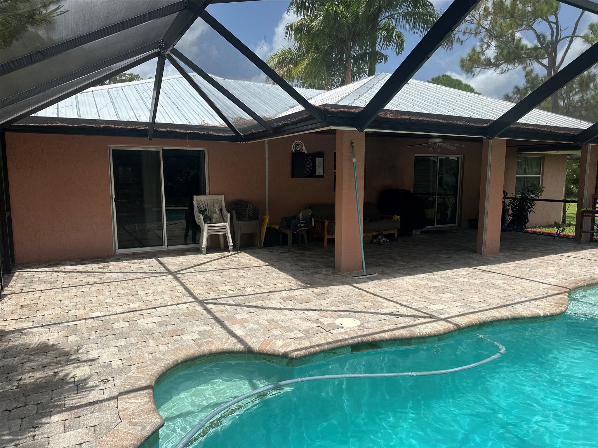 Dont miss out on this amazing opportunity to own a beautiful pool home with acreage a low traffic paved road. This great 3 bedroom 2 bath home is a Sunland home which features CBS construction. The home features a formal lay out but is open enough to entertain for any event. The living room, dinning room and bed rooms all feature LVP floors. The screened pool and patio area is the real jewel of this home, it was designed with entertaining in mind. The patio area features a covered siting area. There is also a two bay metal shop with two rooms that have a/c. This home is a must see if you're in the market for a great pool home.