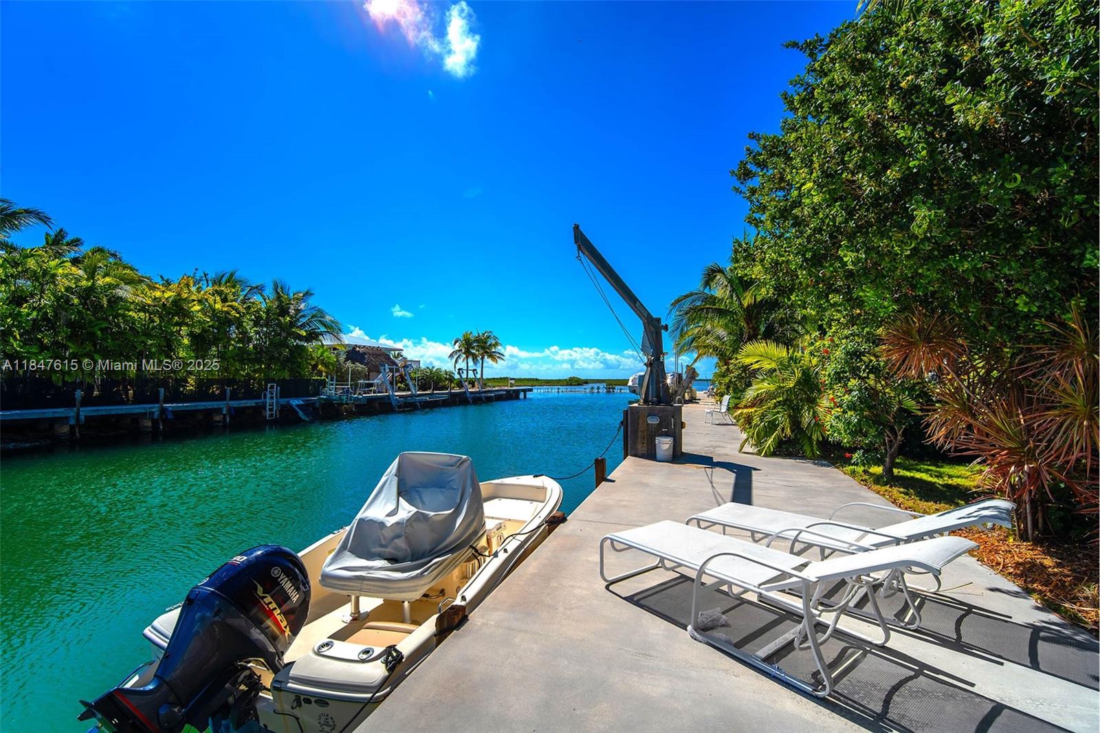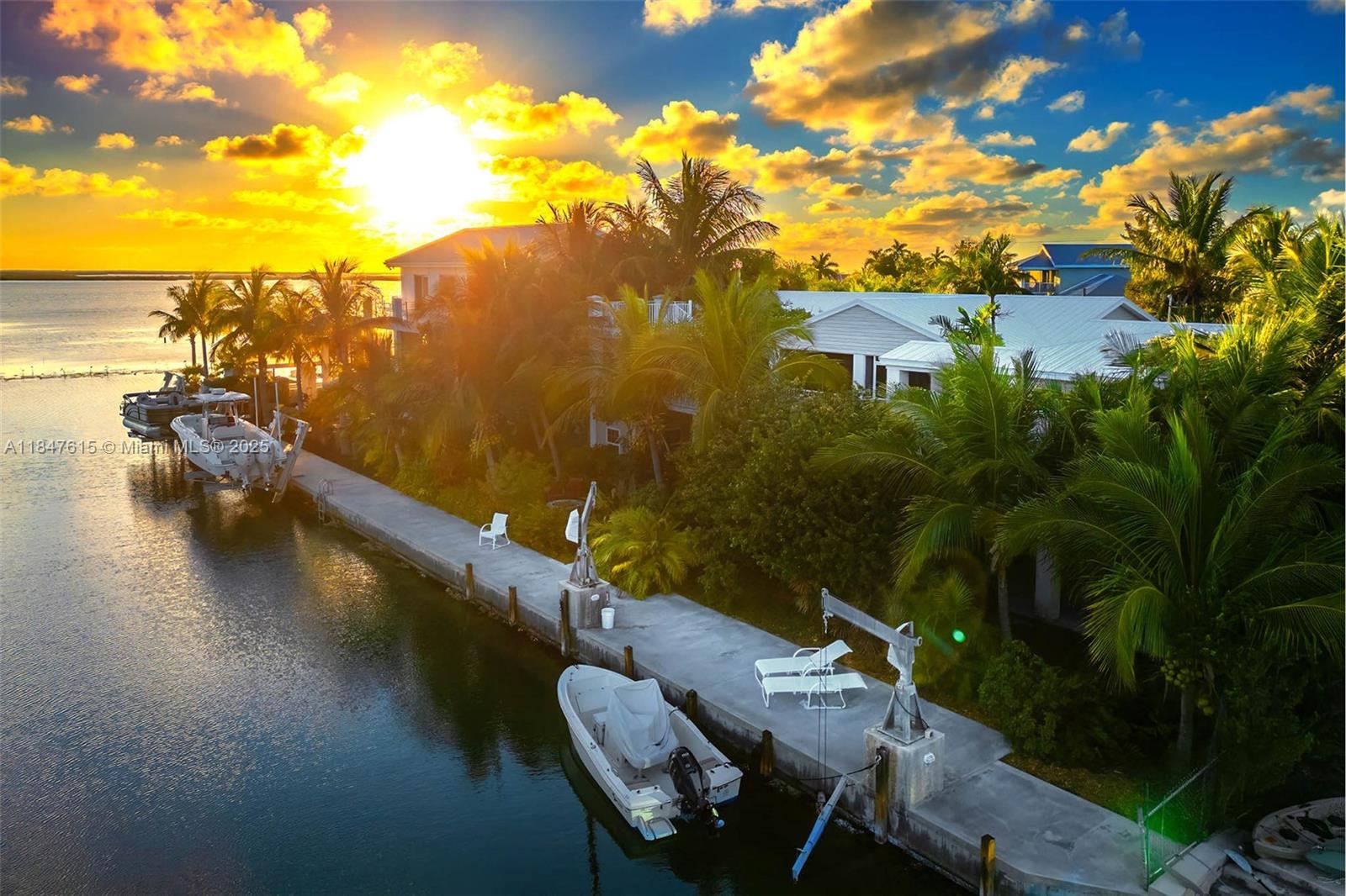 Waterfront retreat in prestigious Sugarloaf Key, just 20 mins from Key West! This 4BD/3BA home sits on a 12,500 sq ft lot with 100' of seawall, davits, and wide canal access—just one in from open water. Enjoy a split-bedroom layout with two primary suites, an open kitchen with stainless appliances, and a theater room. Outdoor living shines with covered entertaining space, custom bar, fire pit, rooftop terrace, screened porch, and a unique outdoor shower crafted from a Key West ticket booth. Lush landscaping offers privacy, with plenty of room for a pool. Garage, covered parking, and circular drive included. Ideal for boaters and nature lovers alike!
