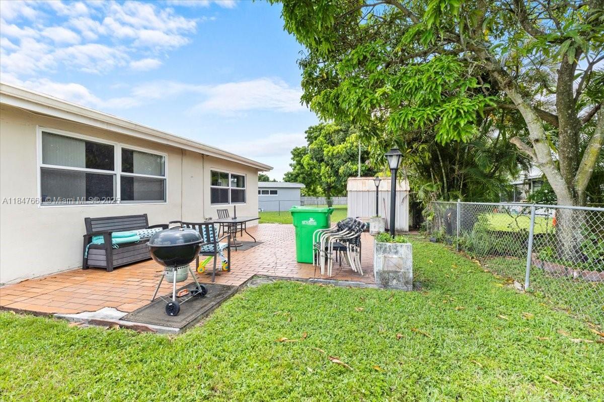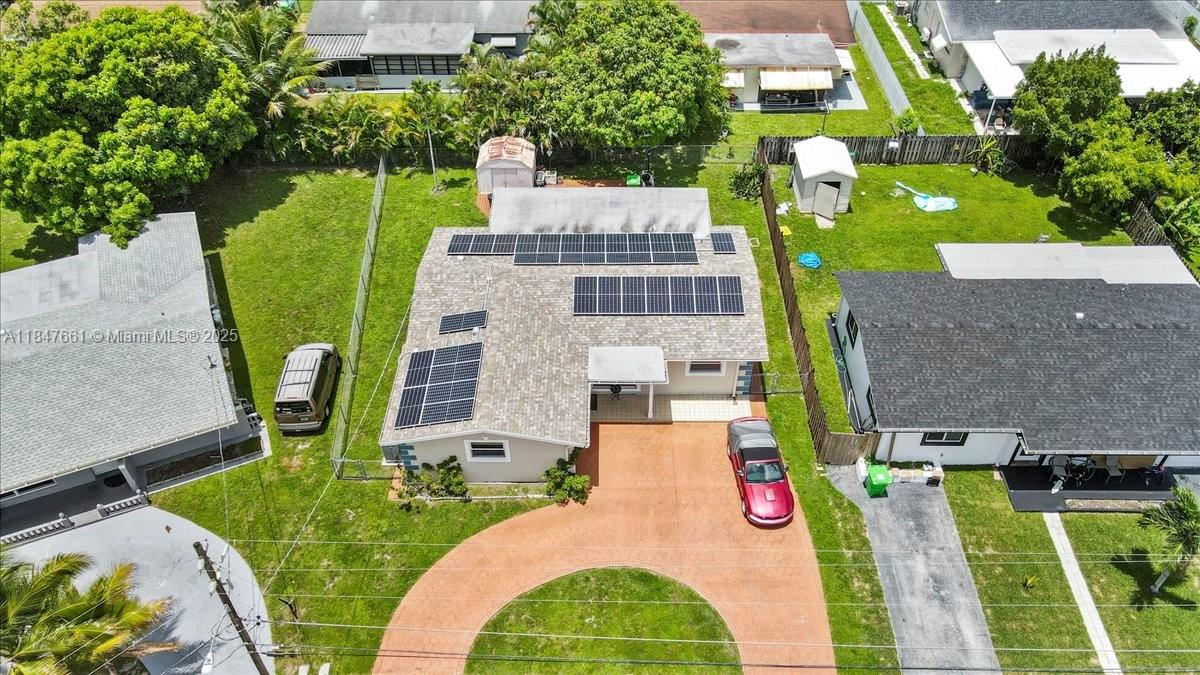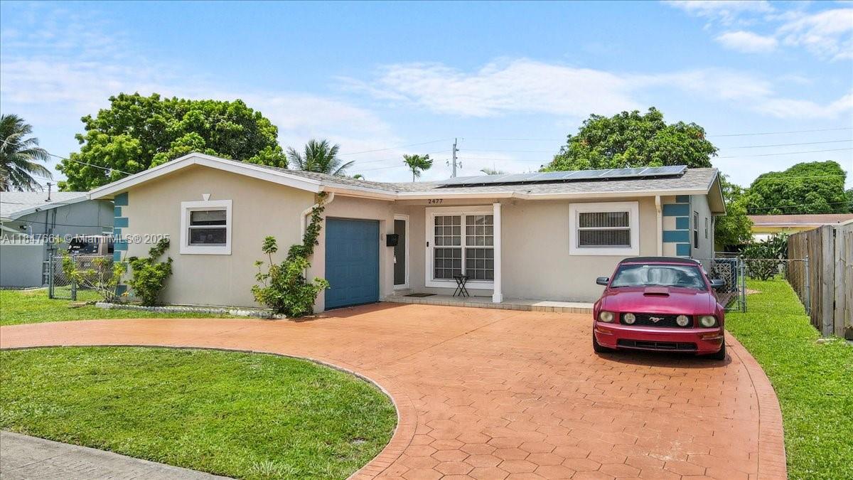 Charming 3-bed, 2-bath single-family home with a flex room, fully fenced yard, and a one car garage! Enjoy a spacious open layout, updated kitchen with quartz counters, stainless steel appliances, and a modern tile finish throughout. Features include a solar panel system, circular driveway, large patio for entertaining, and storage sheds. Freshly painted with newer roof and central A/C. Located near highways, shopping, schools, and sawgrass mills mall. Move-in ready with space, upgrades, and energy efficiency!