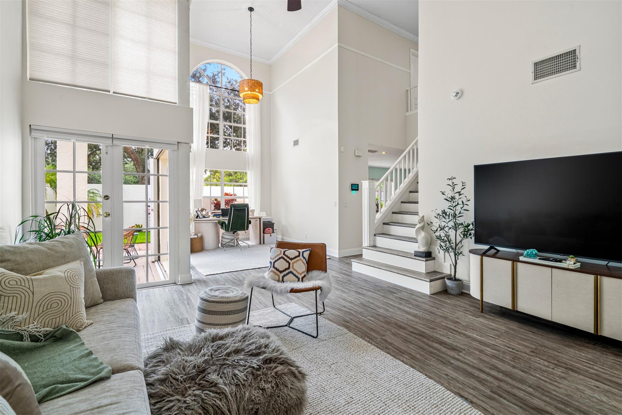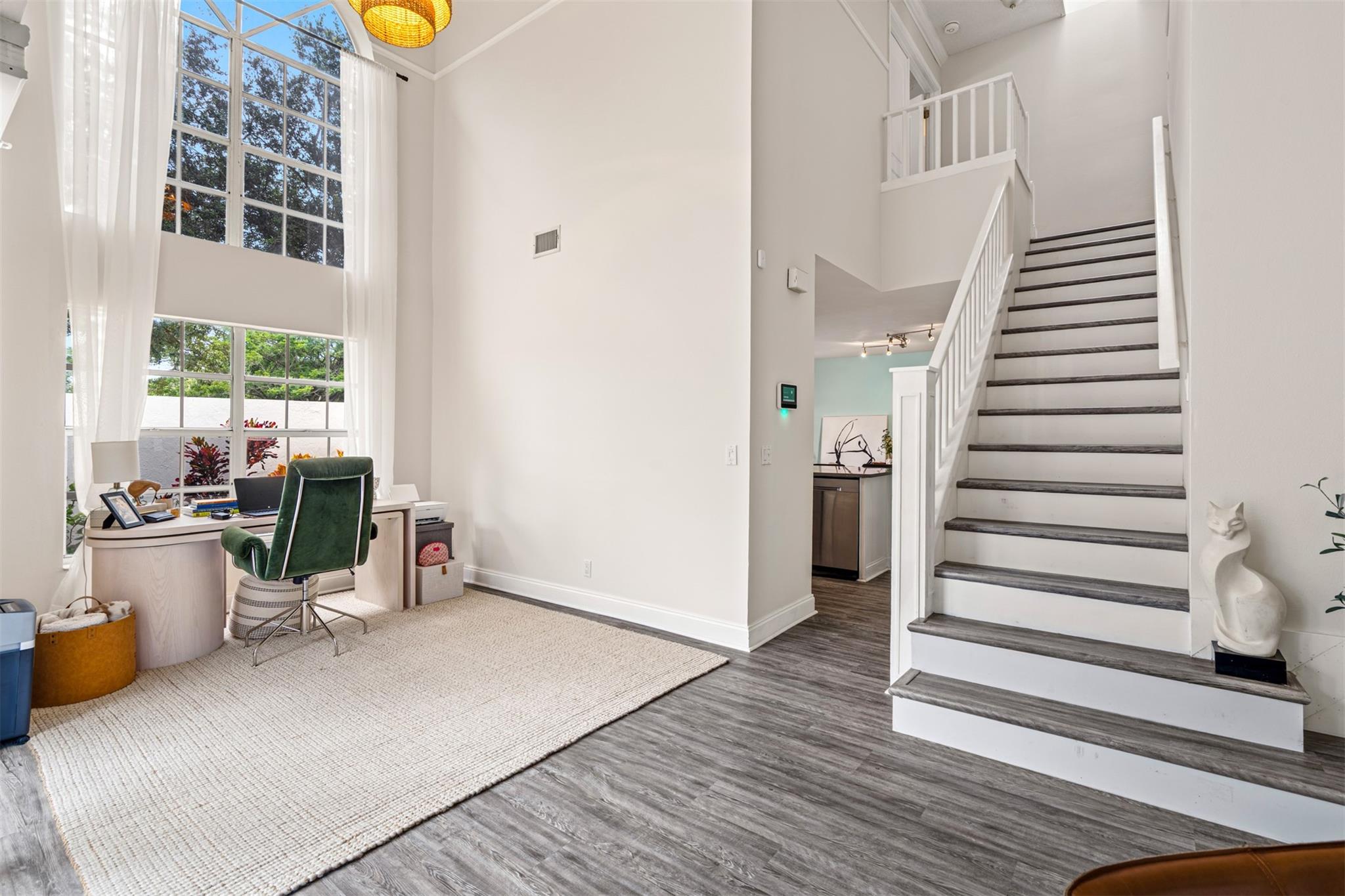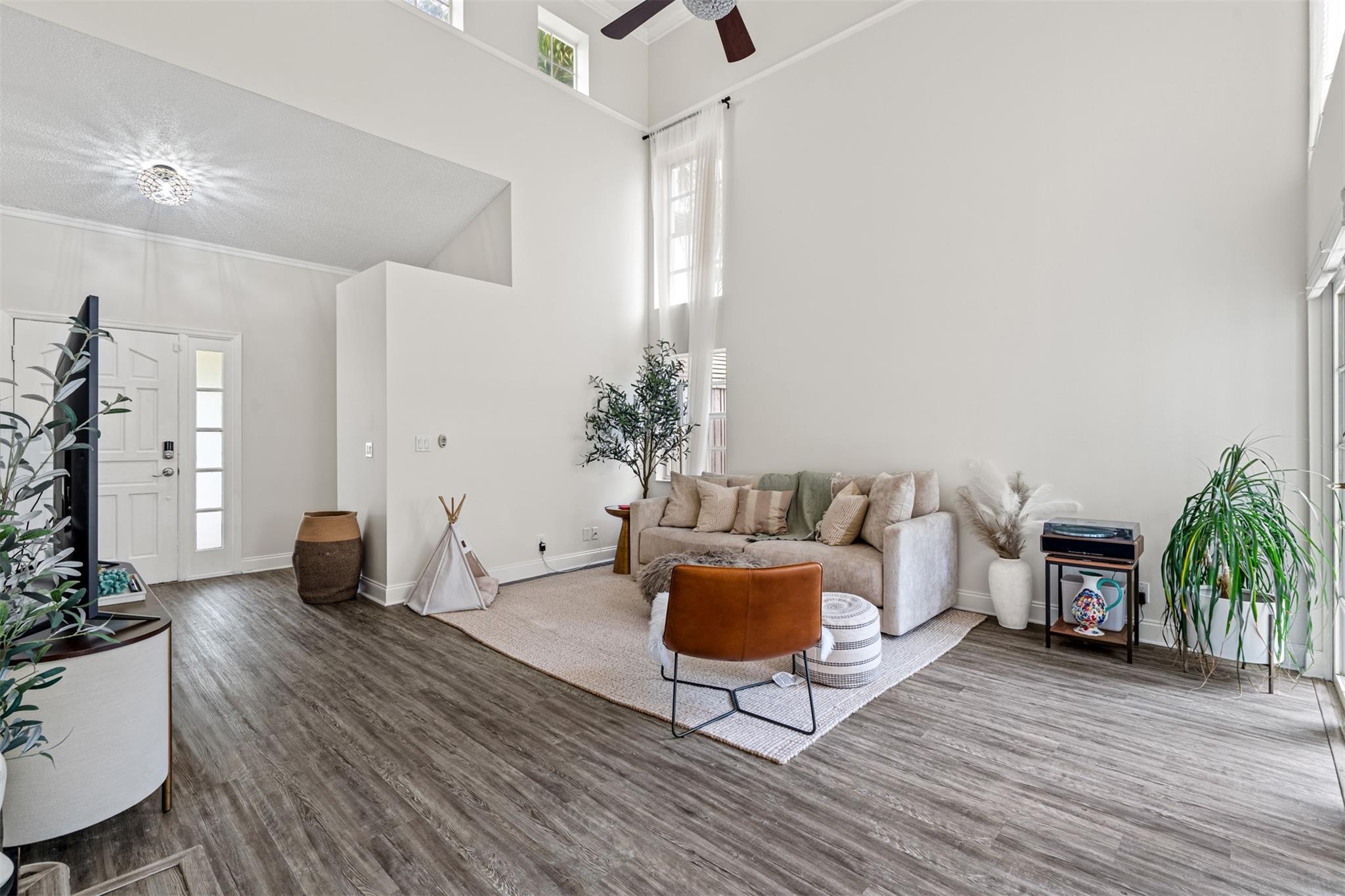 • Интерьер:DualSinks, EntranceFoyer, EatInKitchen, FrenchDoorsAtriumDoors, HighCeilings, LivingDiningRoom, Pantry, SplitBedrooms, UpperLevelPrimary