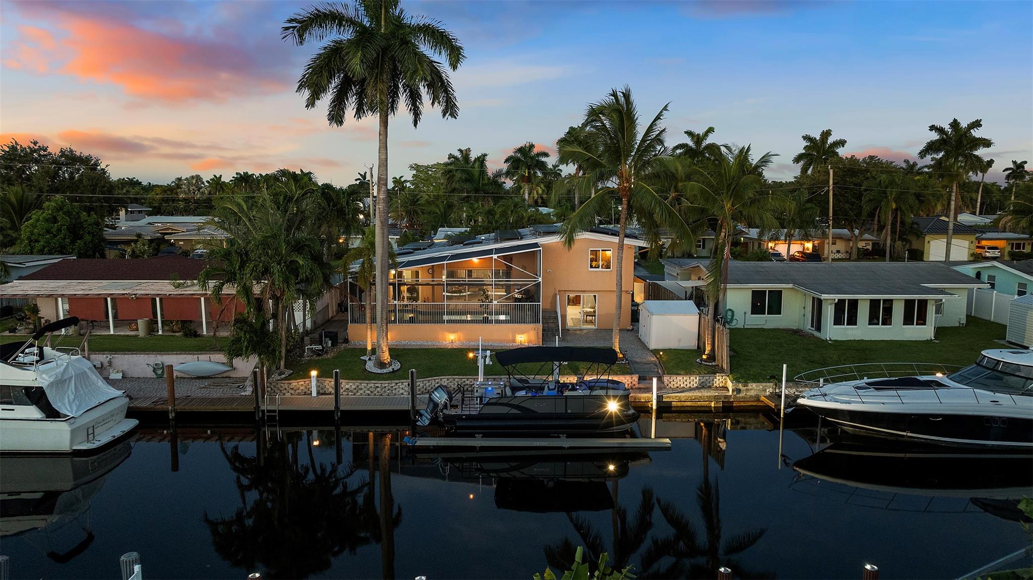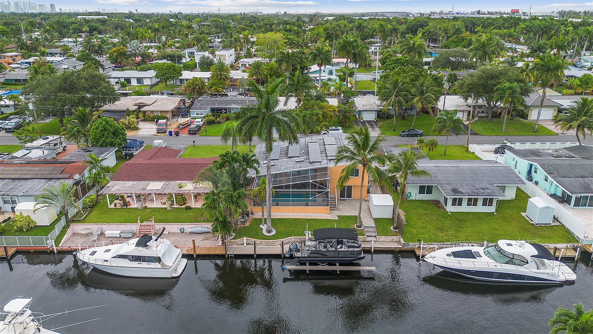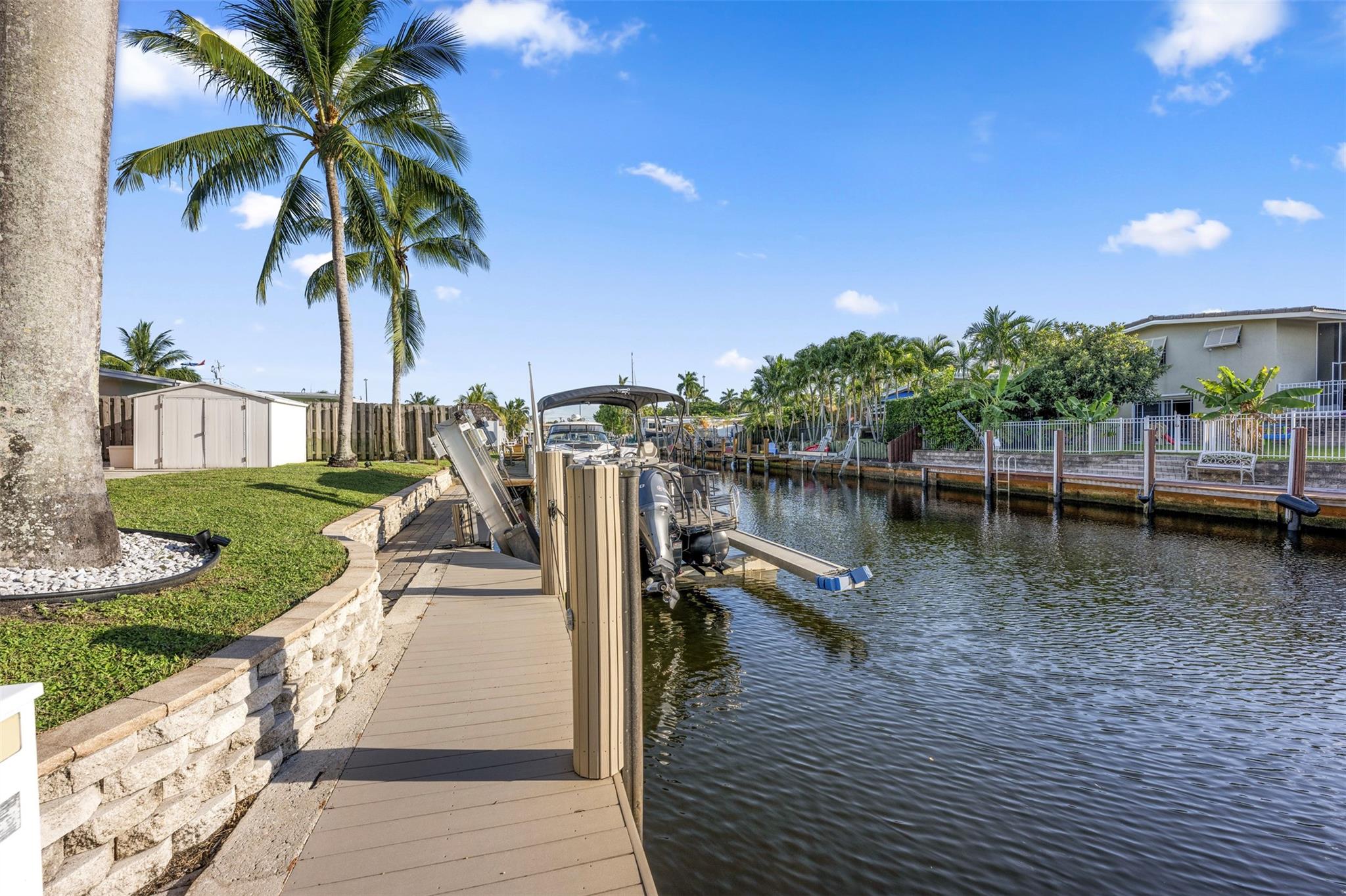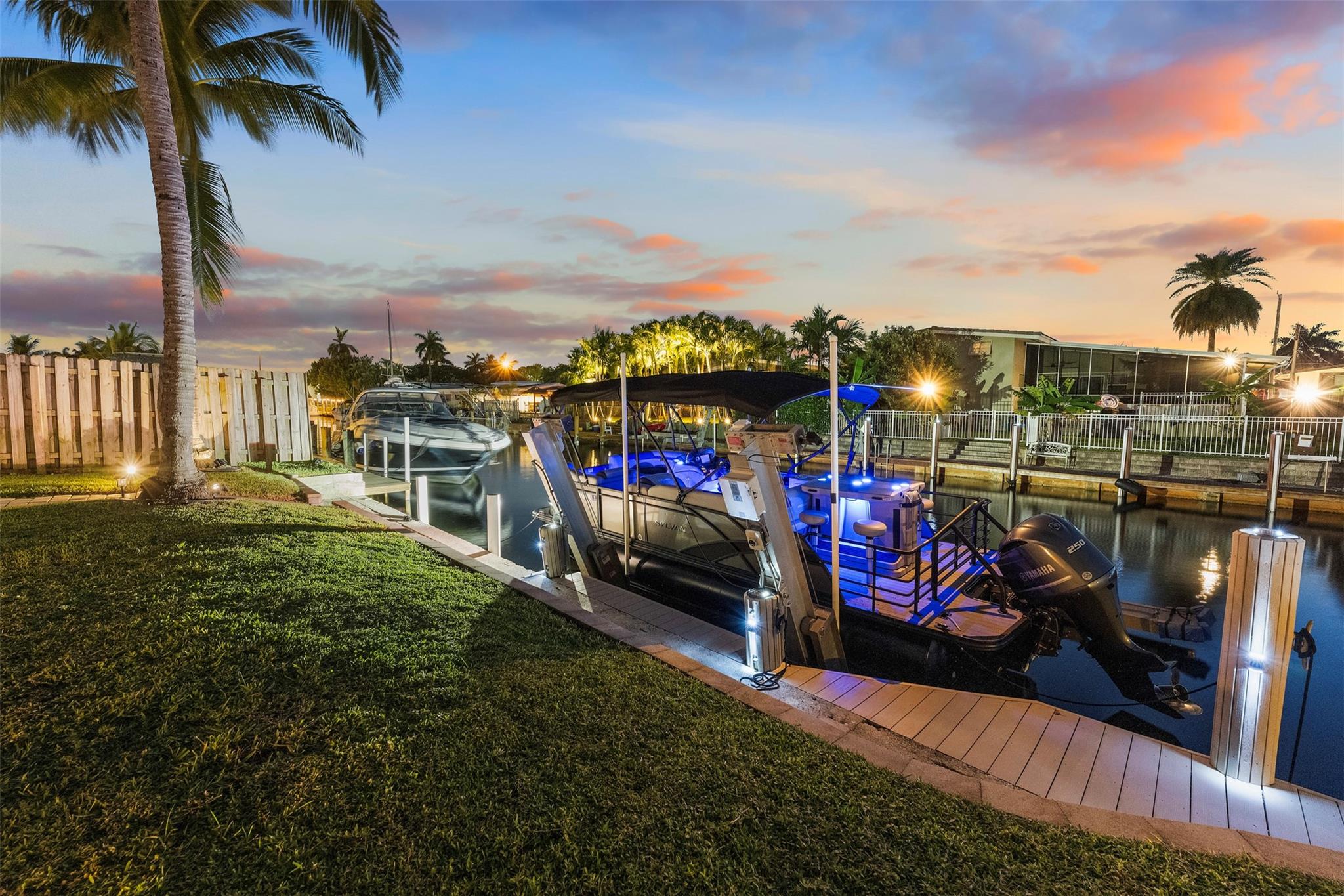 Beautifully updated tri-level waterfront home on a 65' deep-water canal in Lauderdale Isles with ocean access and no fixed bridges. Features include a 2018 roof (4 pt and wind mit available), full-home solar system (average electric ~$100/month) and a 17,000 lb boat lift with newer dock and shore power. Elegant layout offers the primary suite off the main living and a separate guest wing with three additional bedrooms. Screened in porch, pool and cabana bath right off the living room make it perfect for entertaining. Located near major commuter routes including I-95, Turnpike, and 595, with close proximity to the airport and cruise port. NON-HOA community with city-maintained boat ramp and park; offering freedom, flexibility, and the ultimate South Florida boating lifestyle.