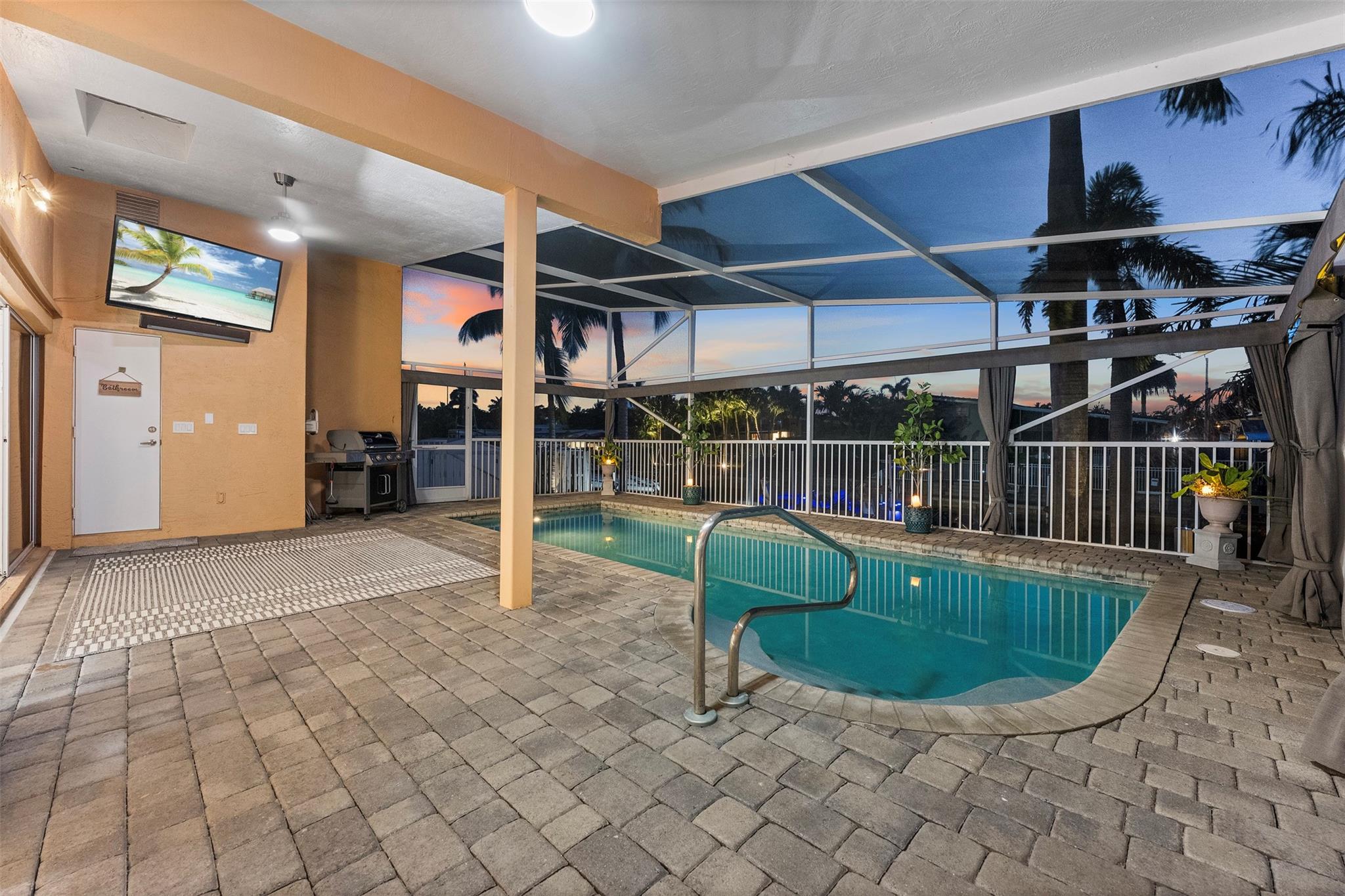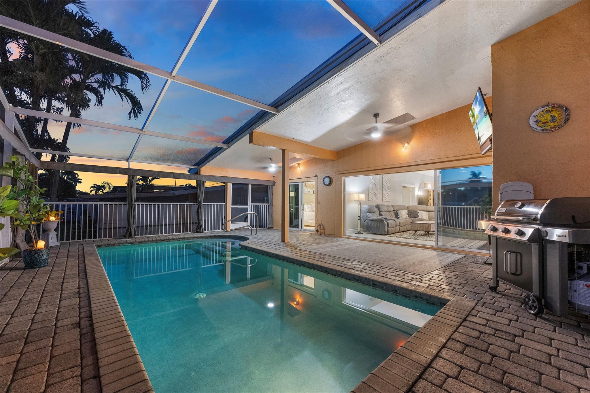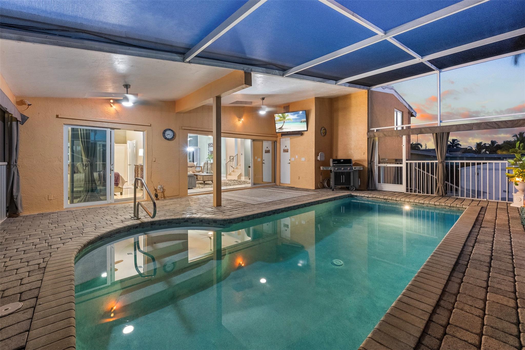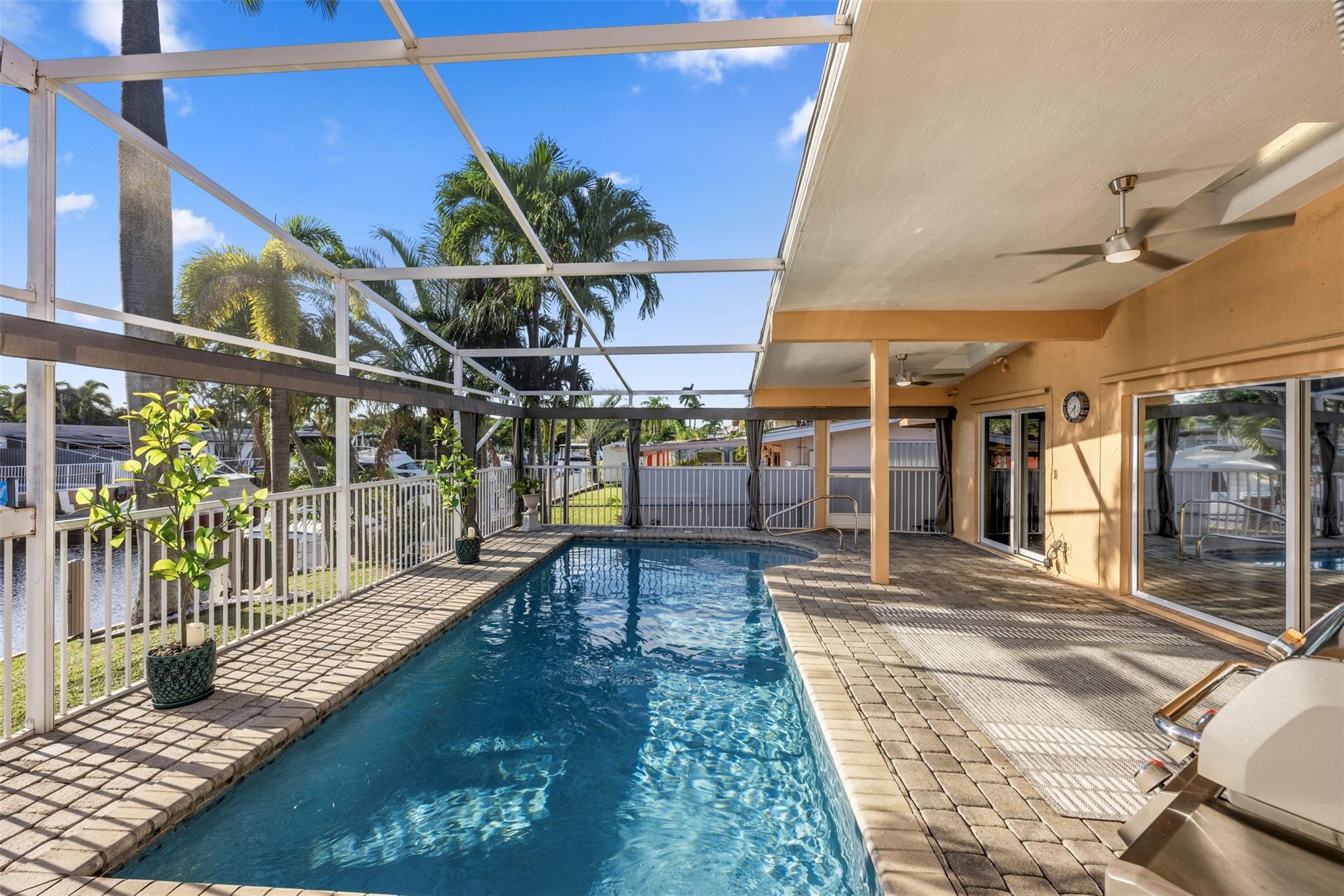 Beautifully updated tri-level waterfront home on a 65' deep-water canal in Lauderdale Isles with ocean access and no fixed bridges. Features include a 2018 roof (4 pt and wind mit available), full-home solar system (average electric ~$100/month) and a 17,000 lb boat lift with newer dock and shore power. Elegant layout offers the primary suite off the main living and a separate guest wing with three additional bedrooms. Screened in porch, pool and cabana bath right off the living room make it perfect for entertaining. Located near major commuter routes including I-95, Turnpike, and 595, with close proximity to the airport and cruise port. NON-HOA community with city-maintained boat ramp and park; offering freedom, flexibility, and the ultimate South Florida boating lifestyle.