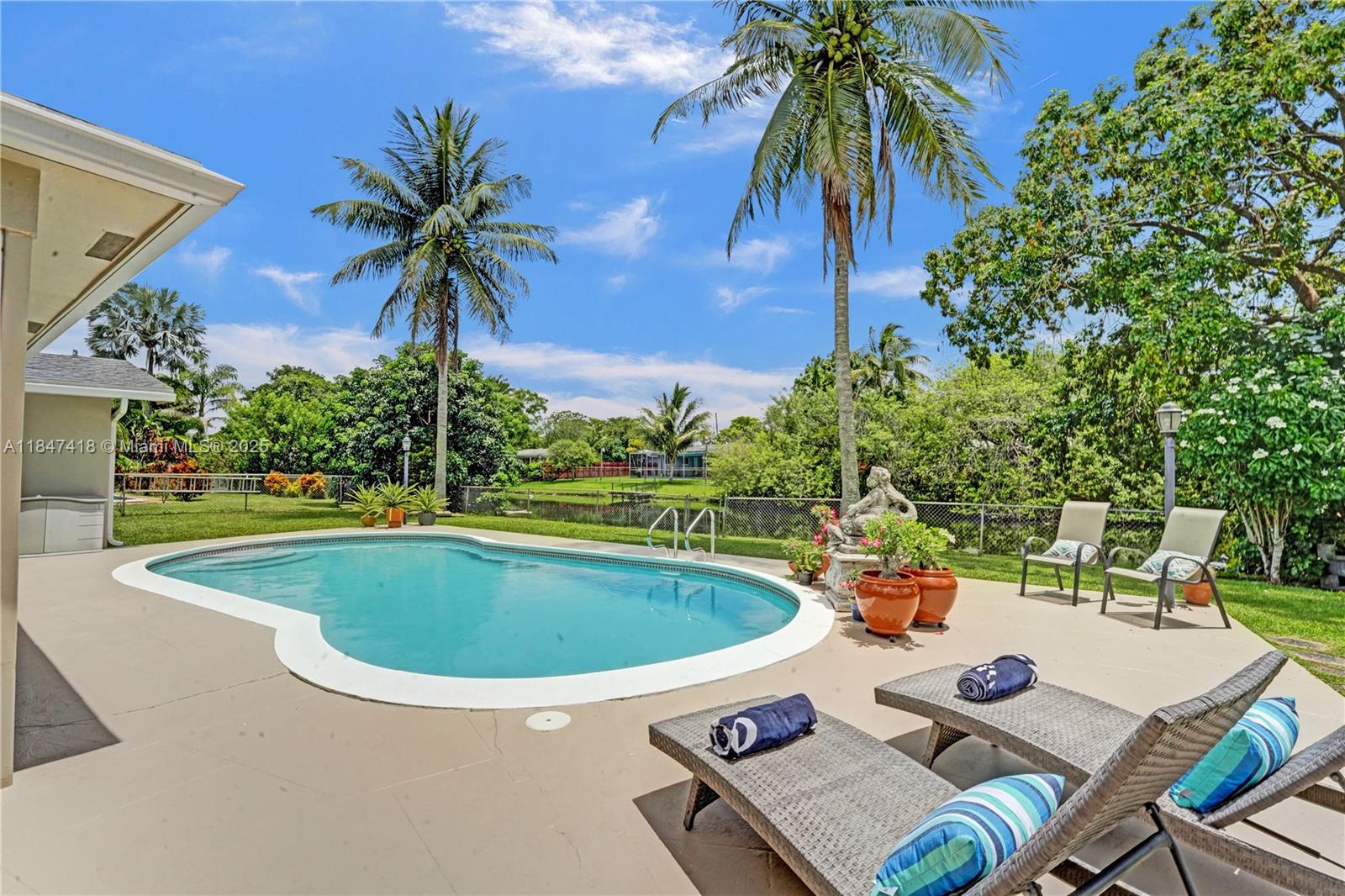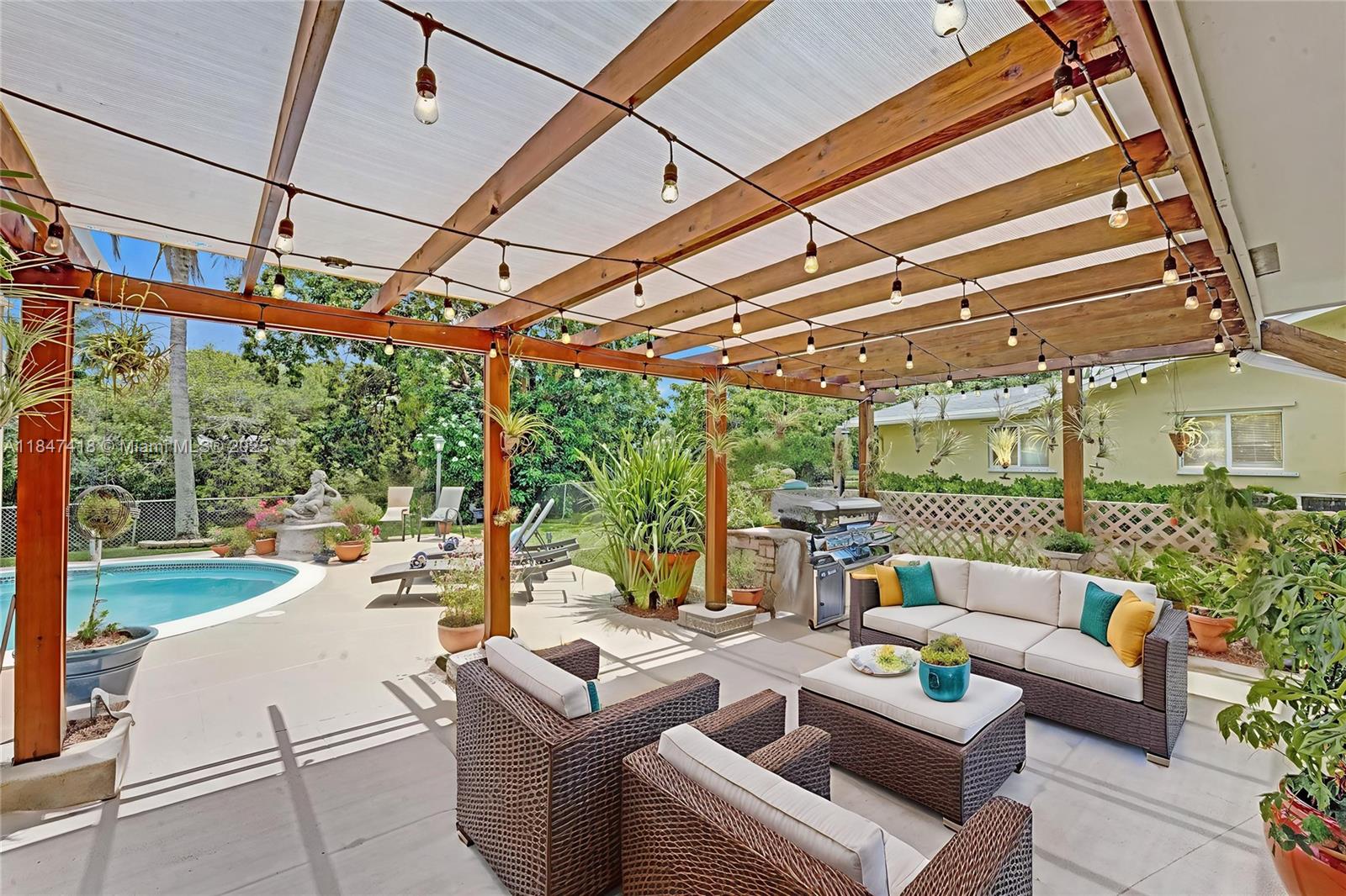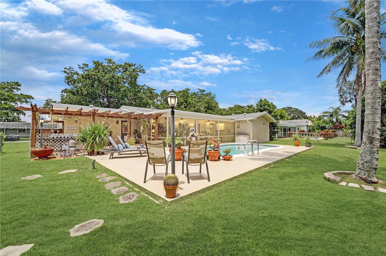 Welcome to 7550 NW 12th Street, a beautifully updated home nestled in the heart of Plantation. Set on a spacious waterfront lot, this residence offers the perfect blend of comfort, style and functionality. Enjoy peace of mind with a new roof (2023), replaced attic insulation, remodeled bathrooms (2019), a modern kitchen with quartz countertops, and a large laundry room for added convenience. As you step outside, the true magic of this property unfolds and provides the serenity and space you've always envisioned while the newly resurfaced pool (2025) invites you to lounge & unwind. Enjoy a covered patio perfect for BBQ, fully fenced yard and charming pergola. Whether you're entertaining or relaxing, this home offers the perfect blend of charm, privacy, and functionality in a prime location.