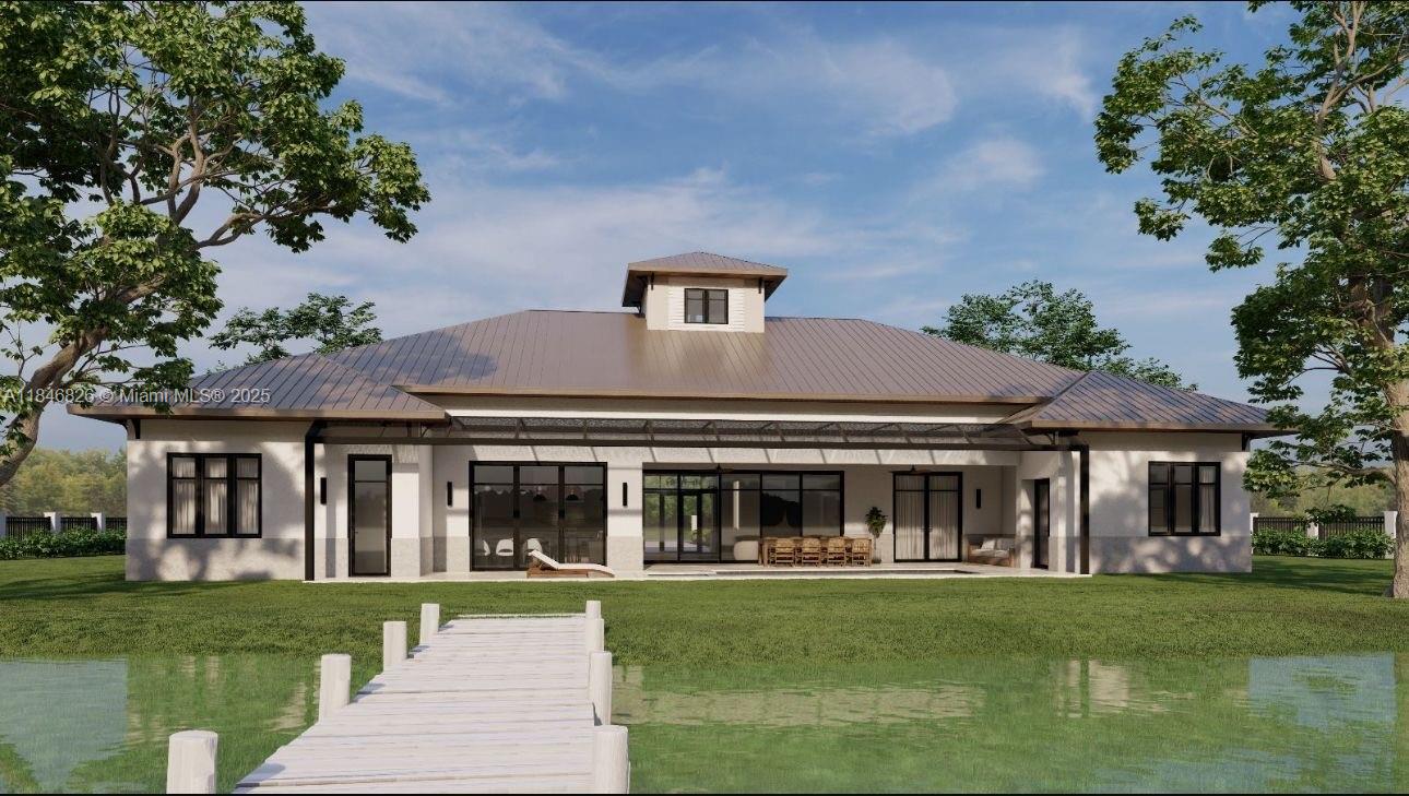 Spectacular lakefront pre-construction home! This 5,375 SF modern residence will be built on a premium lot in Golden Gate Estates, featuring 4 bedrooms, office, 5 bathrooms, open floor plan, high ceilings, gourmet kitchen with island, panoramic windows, premium finishes, private pool and 4-car garage. Positioned directly on a lake with expansive views. Model home available for private tours. Experience elevated living in a tranquil, water-oriented setting!