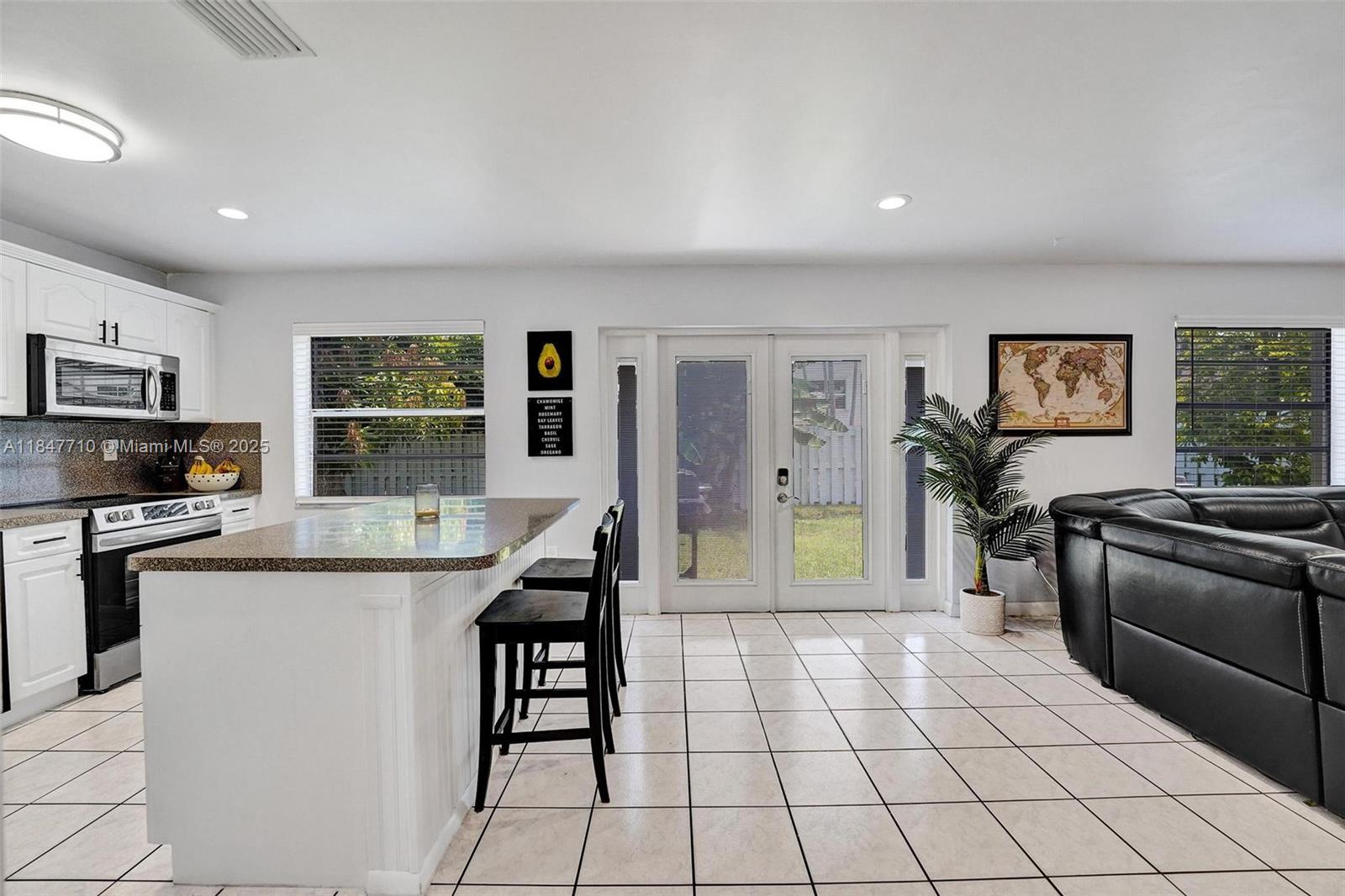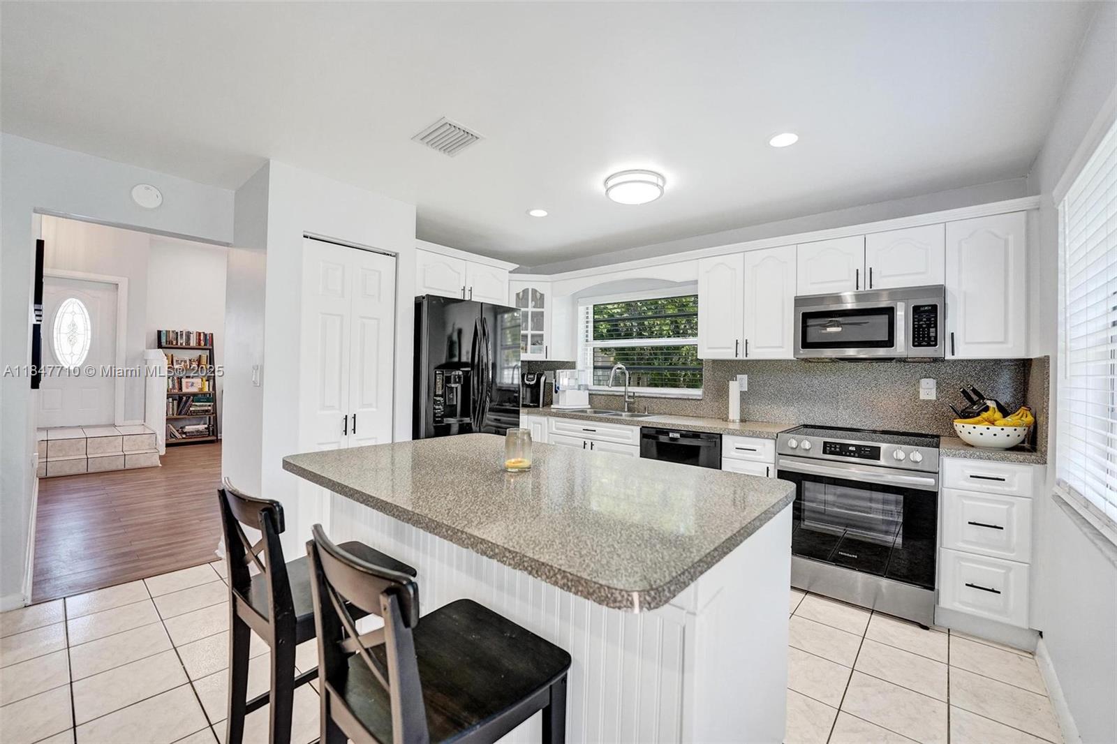 This beautiful and spacious home home sits in a peaceful cul-de-sac on a large lot, offering abundant natural light and vaulted ceilings. The main living areas feature tile and laminate flooring, while the newly updated bathrooms and smooth ceilings add a fresh touch. Enjoy extra storage or office space, and step outside to a fenced yard with your very own mango & banana fruit-bearing trees! Accordion shutters throughout provide extra peace of mind. Additional perks include fresh paint inside and out, ceiling fans, custom closet shelving & new electric panel. Located in beautiful Shenandoah, top-rated schools, easy access to highways, shopping, dining, the airport, and Sawgrass Mills Mall. Low HOA with access to community pool, parks, trails, tennis, and basketball courts. Check it out!