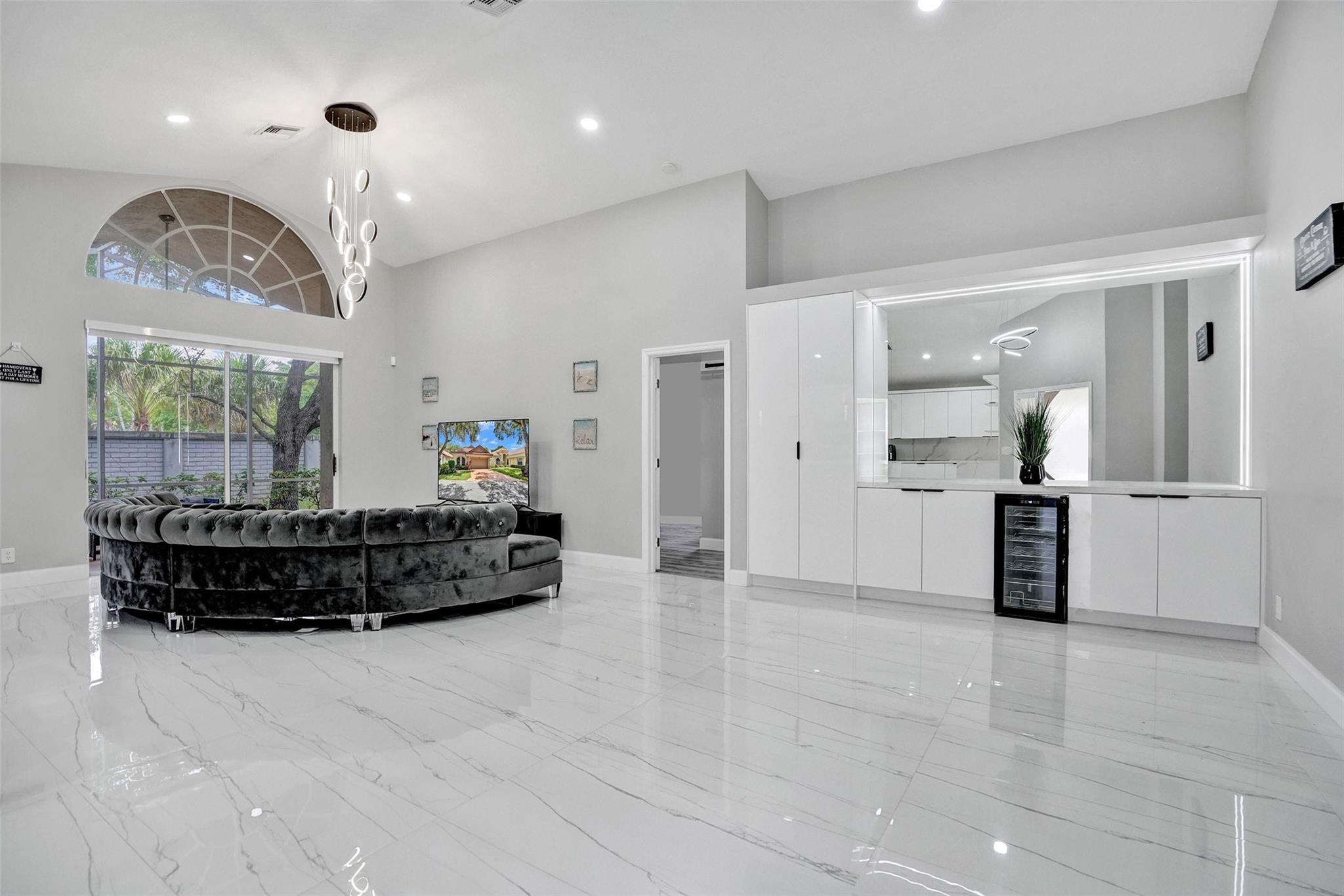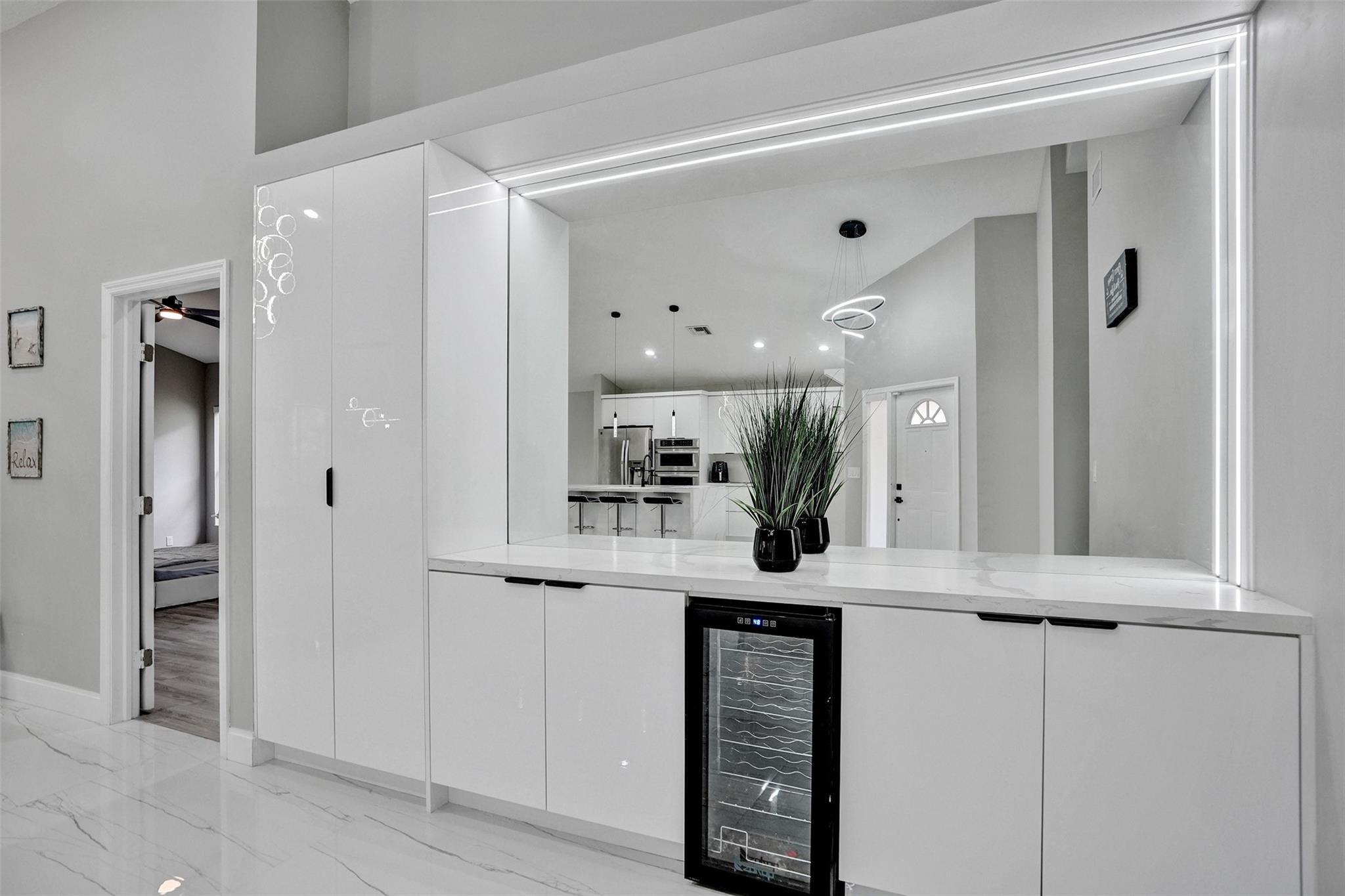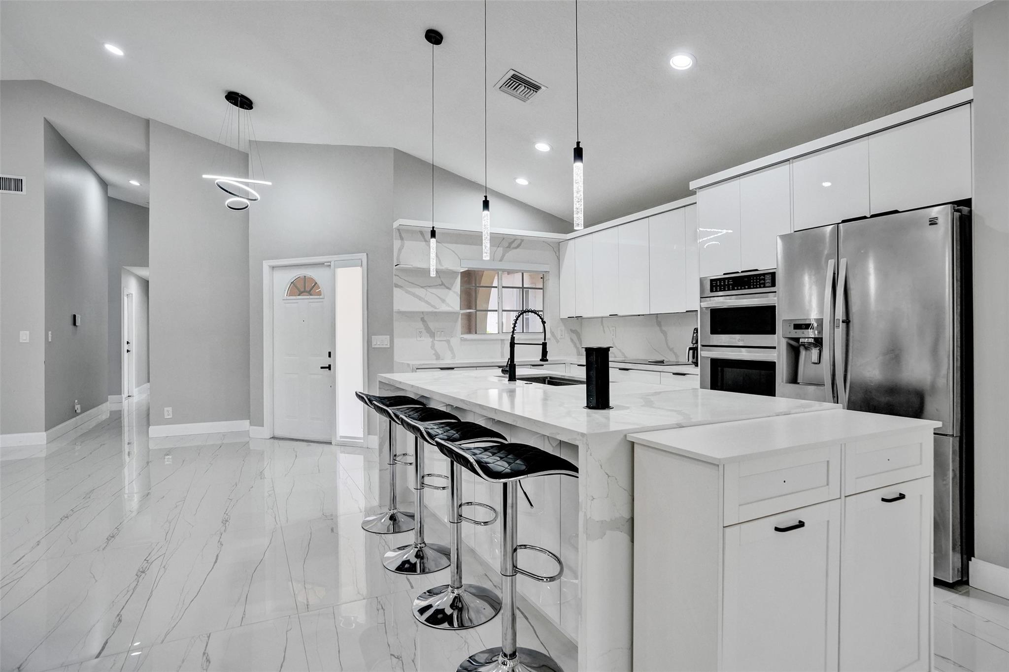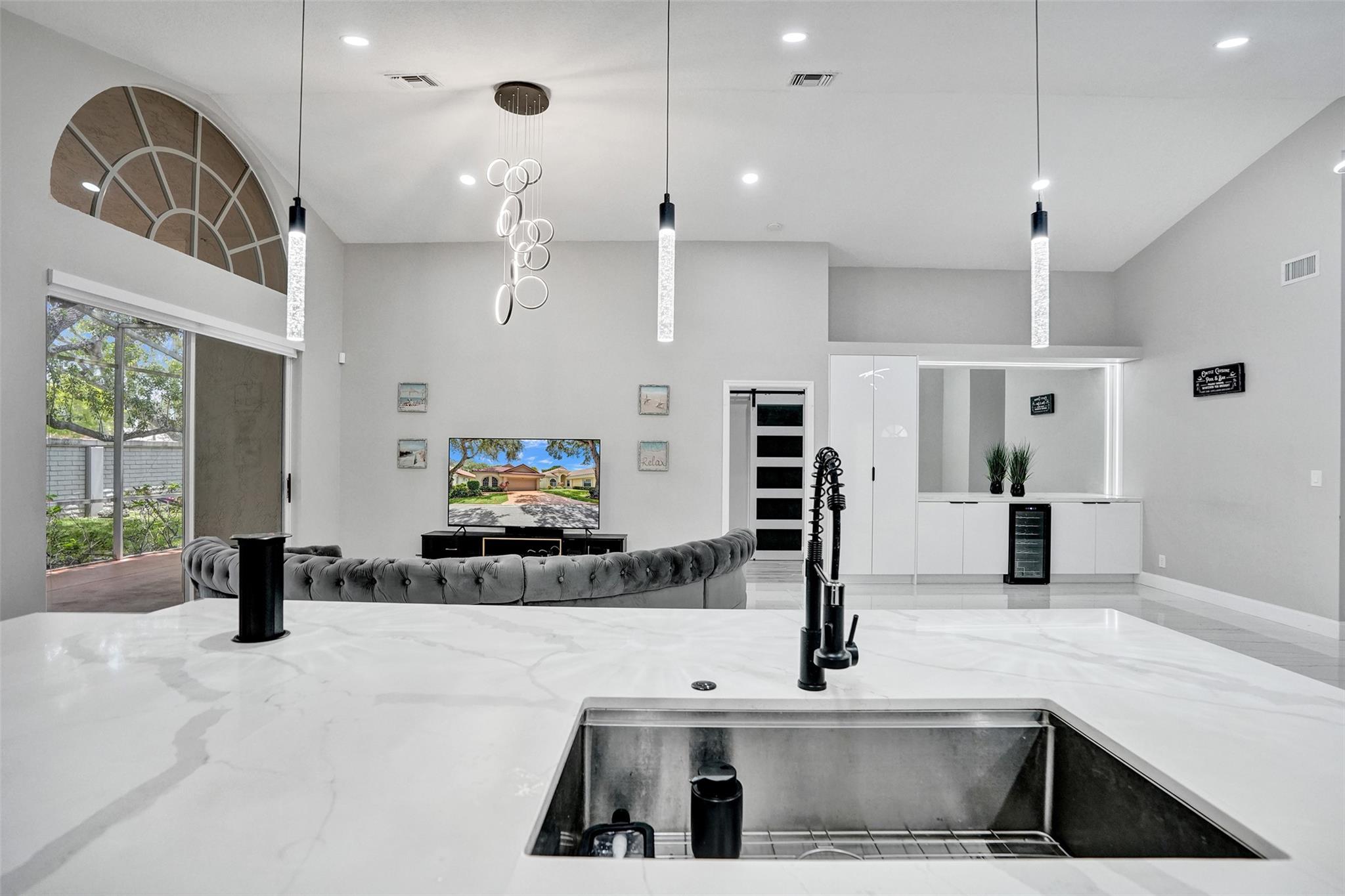 Step into this stylishly updated 4-bed, 2-bath home in sought-after North Springs. Located in an area known for A-rated schools, this property blends modern elegance with everyday comfort. Inside, you'll find an open-concept layout, vaulted ceilings, natural light, and a split floor plan. The kitchen stands out with glossy white cabinetry, bold black hardware, an island with seating and storage, and a built-in wine fridge in the bar area. The primary suite includes a spacious layout, custom closet, and a bathroom with dual sinks, soaking tub, and separate shower. Additional perks: recessed LED lights throughout, a separate laundry room with utility sink, and 2-car garage. Enjoy low HOA fees that cover lawn care and access to a community pool. A perfect mix of design, comfort, and location.