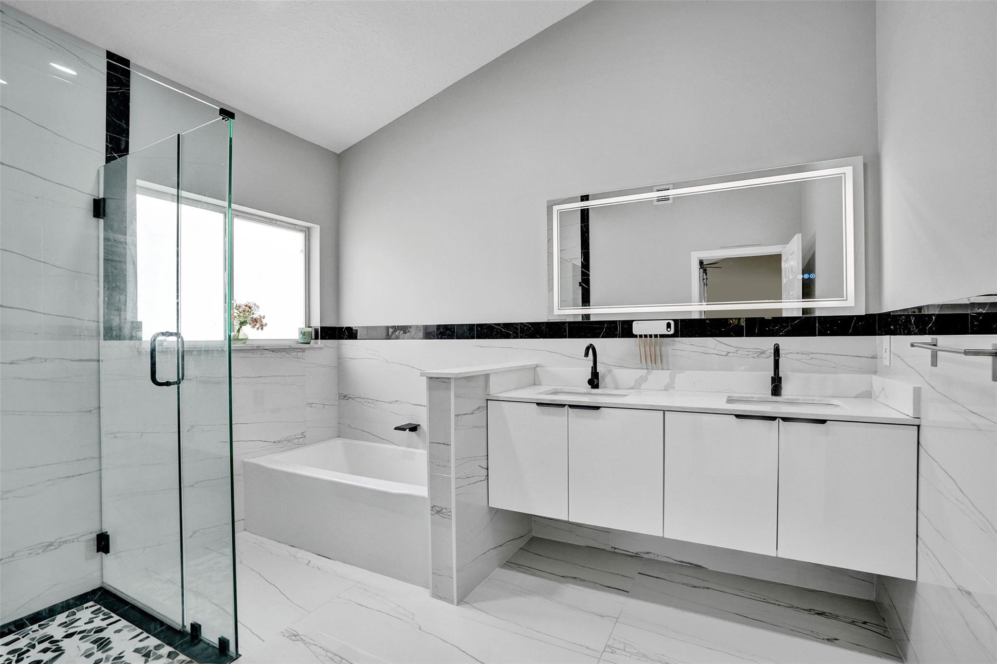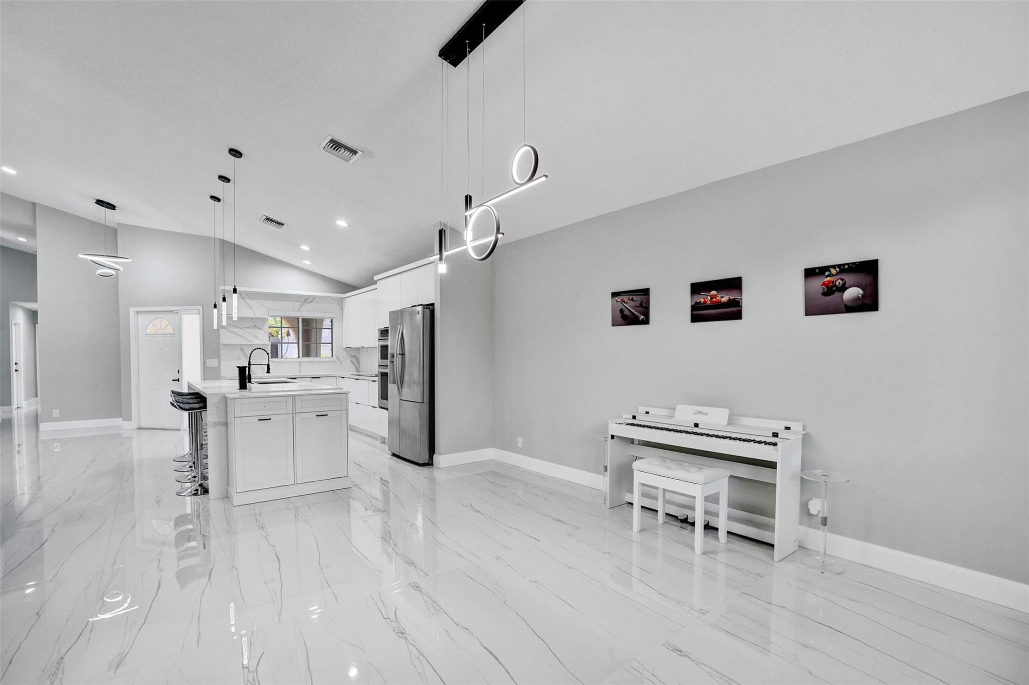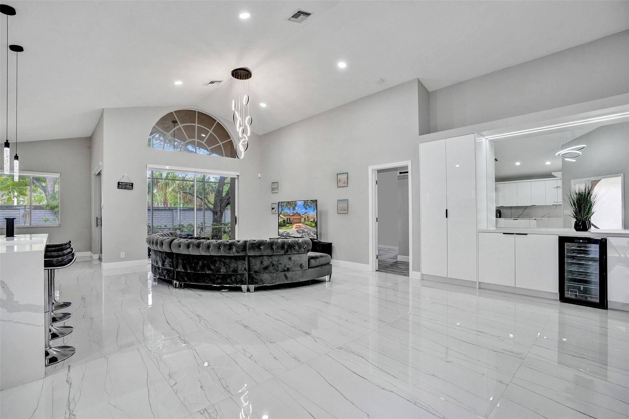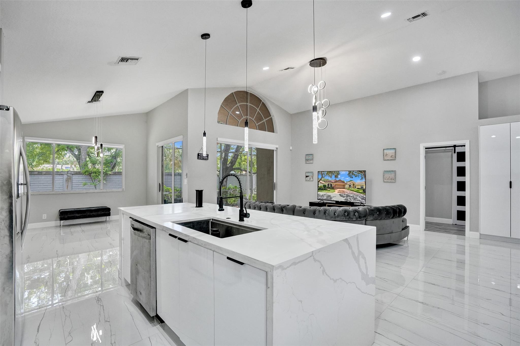 Step into this stylishly updated 4-bed, 2-bath home in sought-after North Springs. Located in an area known for A-rated schools, this property blends modern elegance with everyday comfort. Inside, you'll find an open-concept layout, vaulted ceilings, natural light, and a split floor plan. The kitchen stands out with glossy white cabinetry, bold black hardware, an island with seating and storage, and a built-in wine fridge in the bar area. The primary suite includes a spacious layout, custom closet, and a bathroom with dual sinks, soaking tub, and separate shower. Additional perks: recessed LED lights throughout, a separate laundry room with utility sink, and 2-car garage. Enjoy low HOA fees that cover lawn care and access to a community pool. A perfect mix of design, comfort, and location.