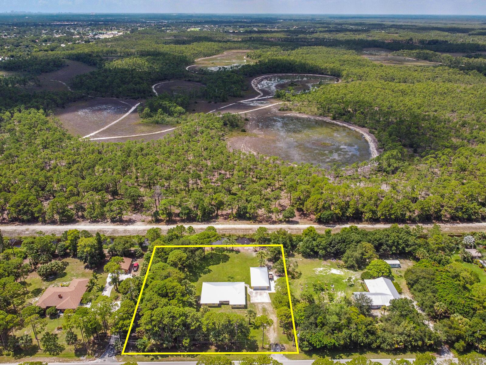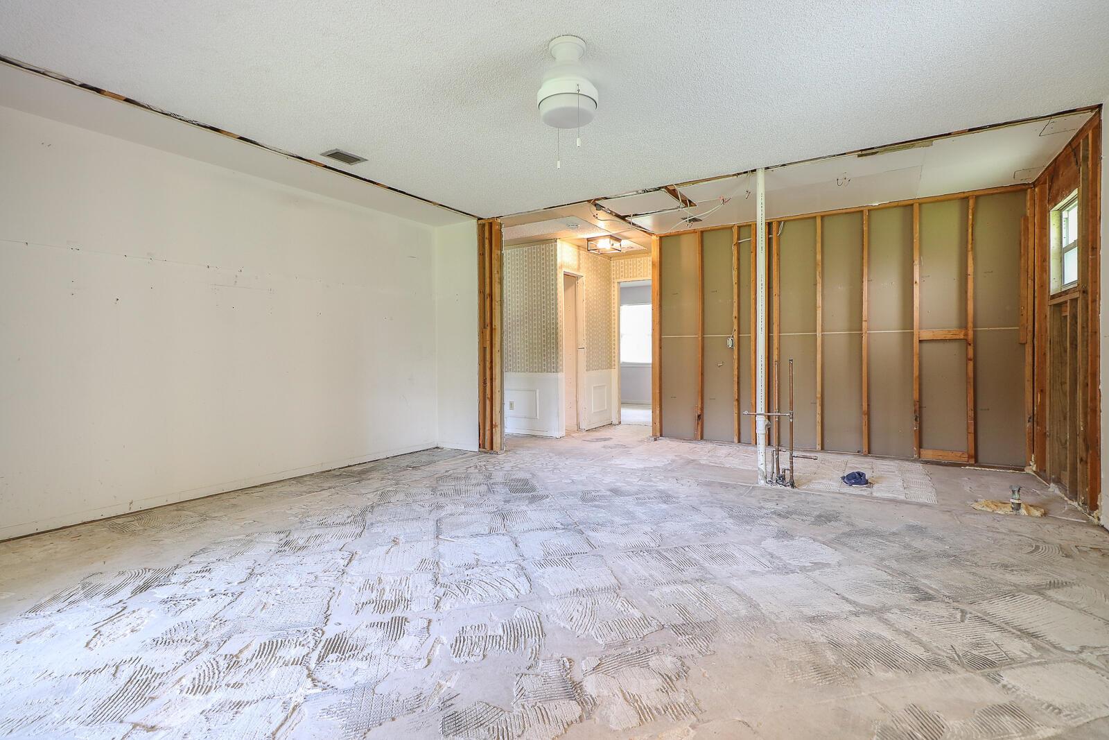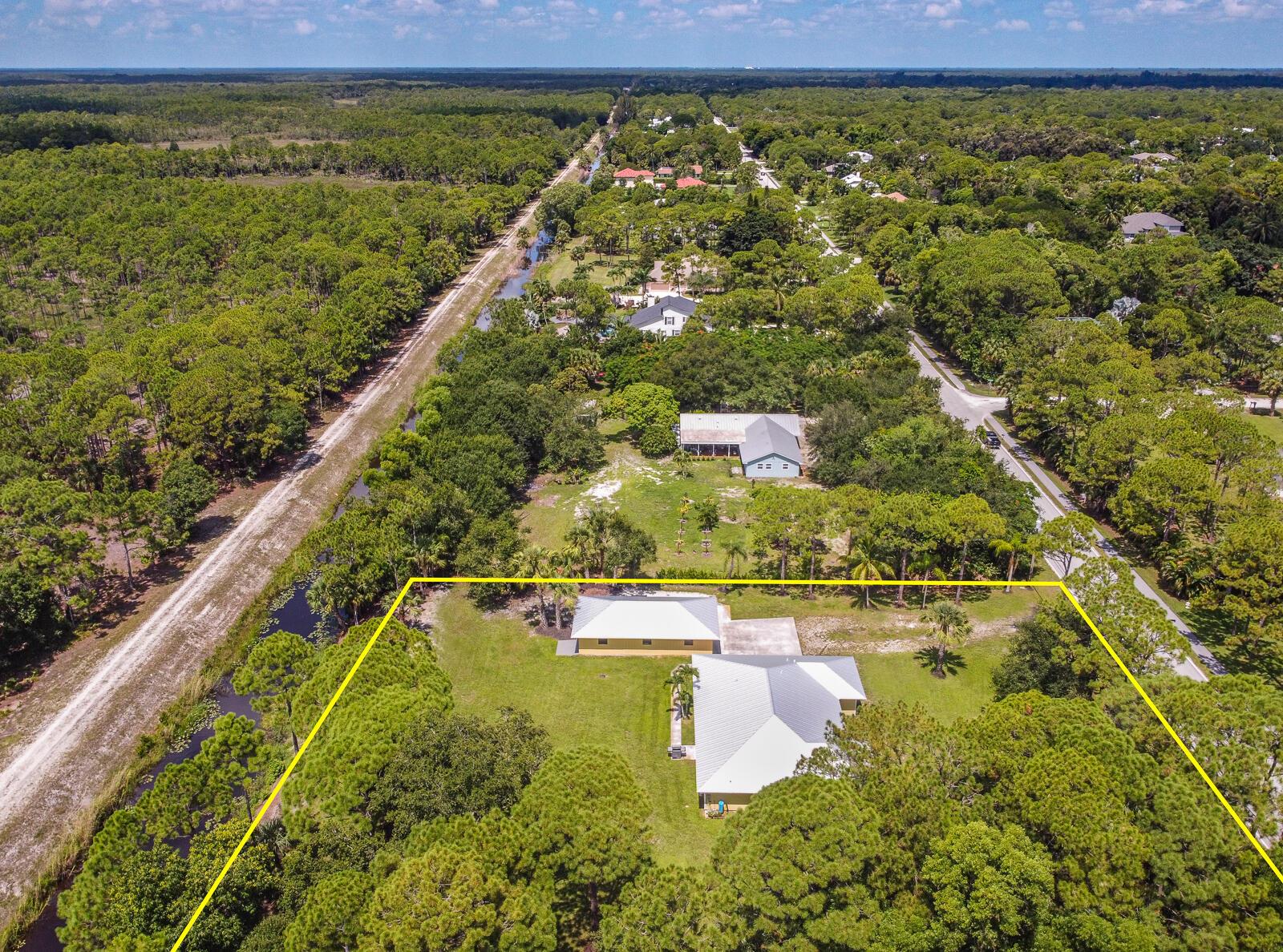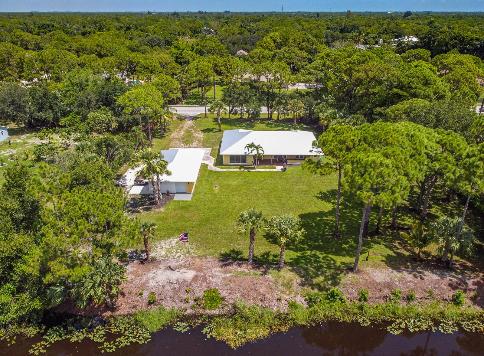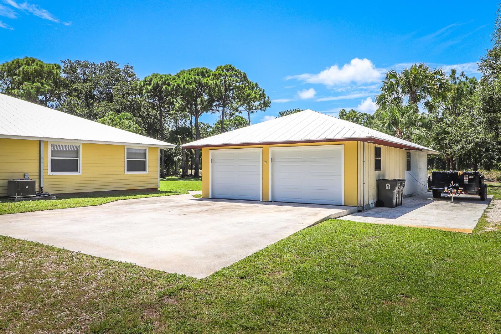 This 4BR/3BA home with a detached 24'x45' garage is the perfect project home - situated on one of the nicest properties in Palm Beach Country Estates: a RARE 1.34-acre lot on a paved road that backs up to a canal and 10,000-acre nature preserve. The interior has been partially gutted down to the studs - ready for new drywall, kitchen, electrical, flooring, etc. Many improvements already installed: NEW metal roof on both house and garage in 2023; NEW 26kW Generac whole-house generator with 1,000 gallon buried propane tank stubbed out for additional future hookups; NEW PGT hurricane impact sliders and cabana door. Two of the three bathrooms are newly-updated.